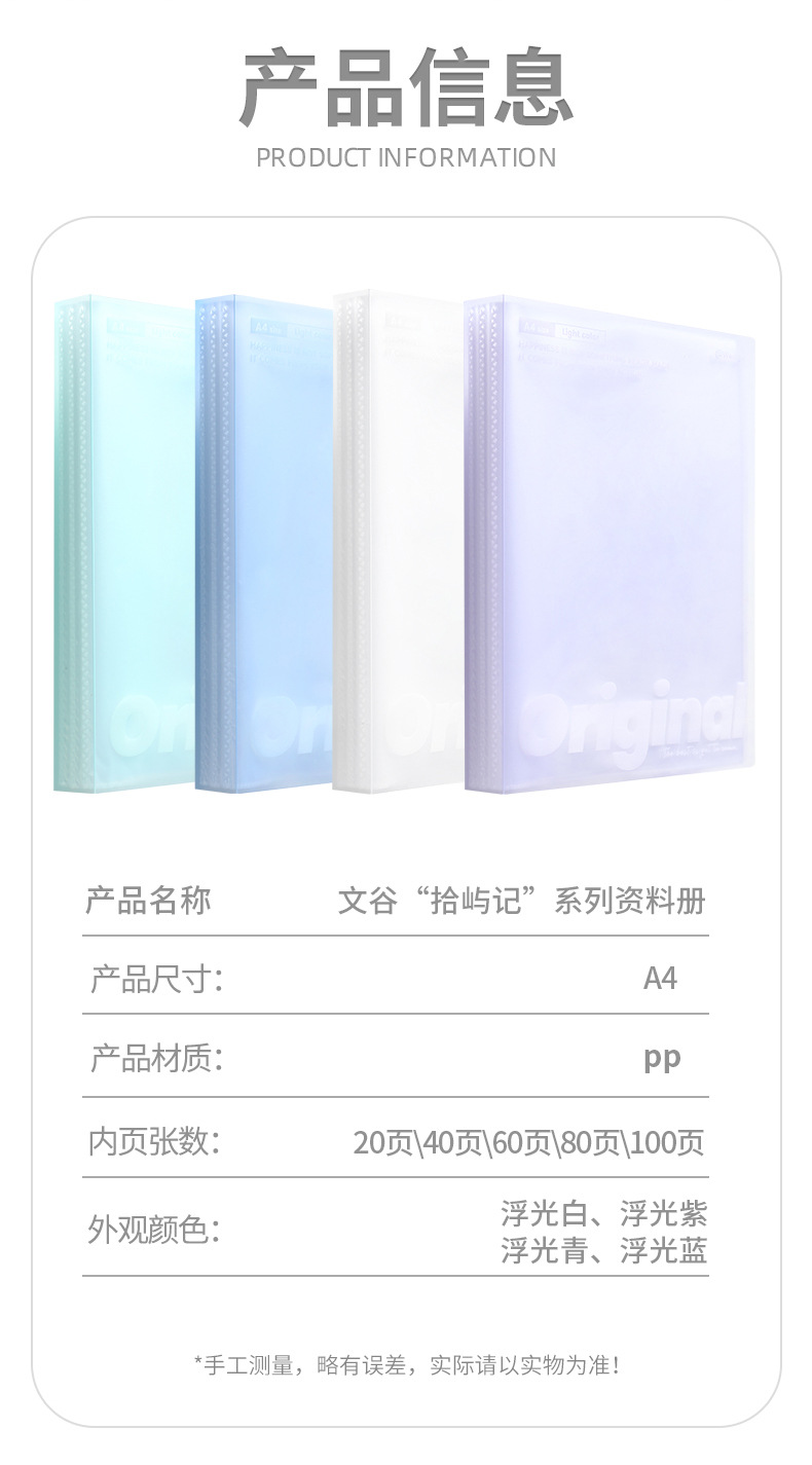 Wengu A4 정보 책 투명 내부 페이지 삽입 폴더 보관 책 삽입 폴더 시험지 보관 가방 사무실