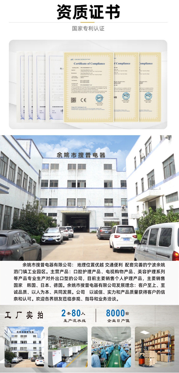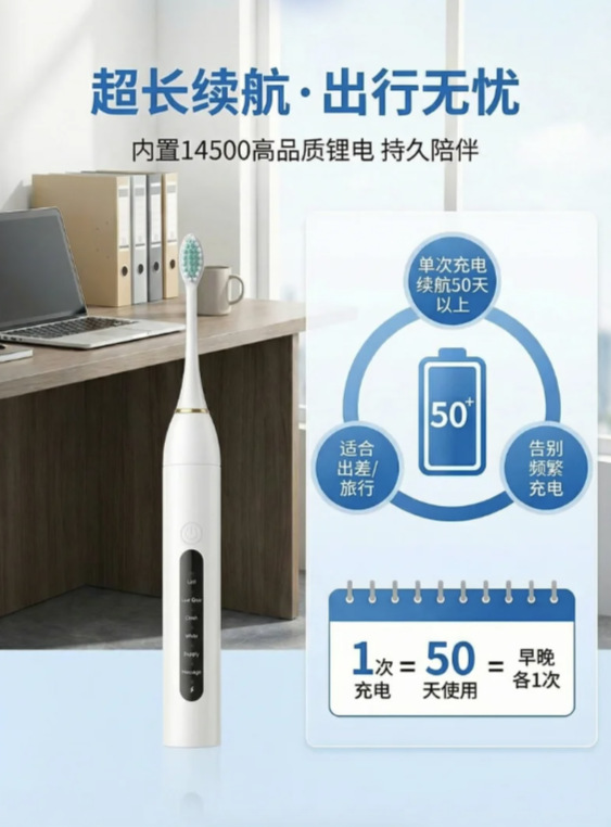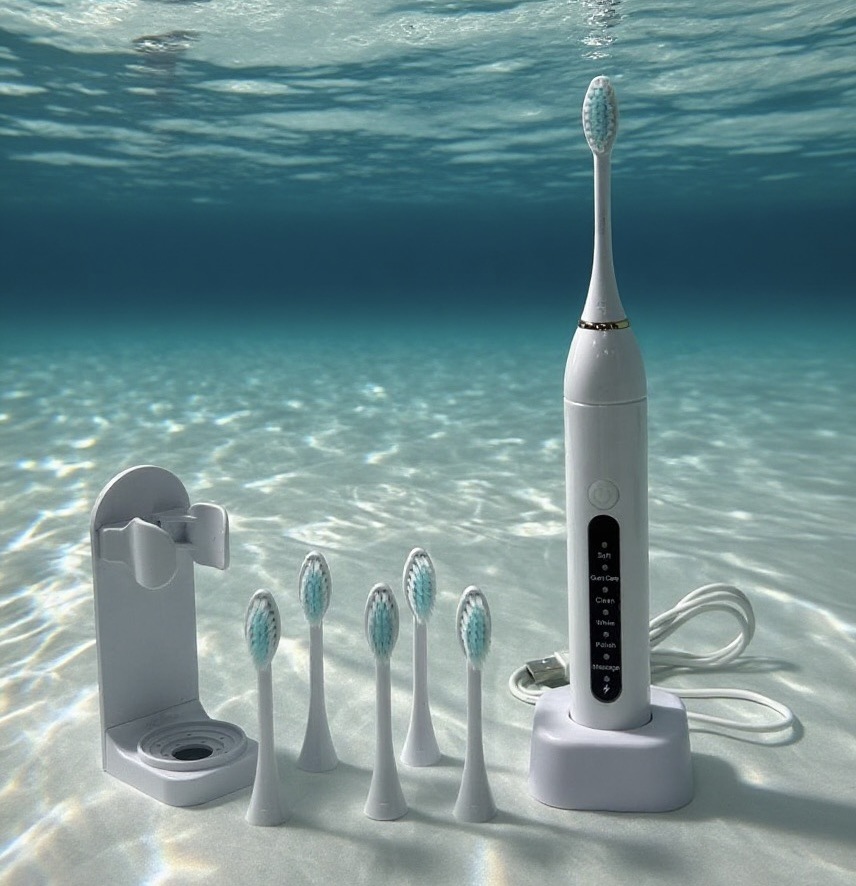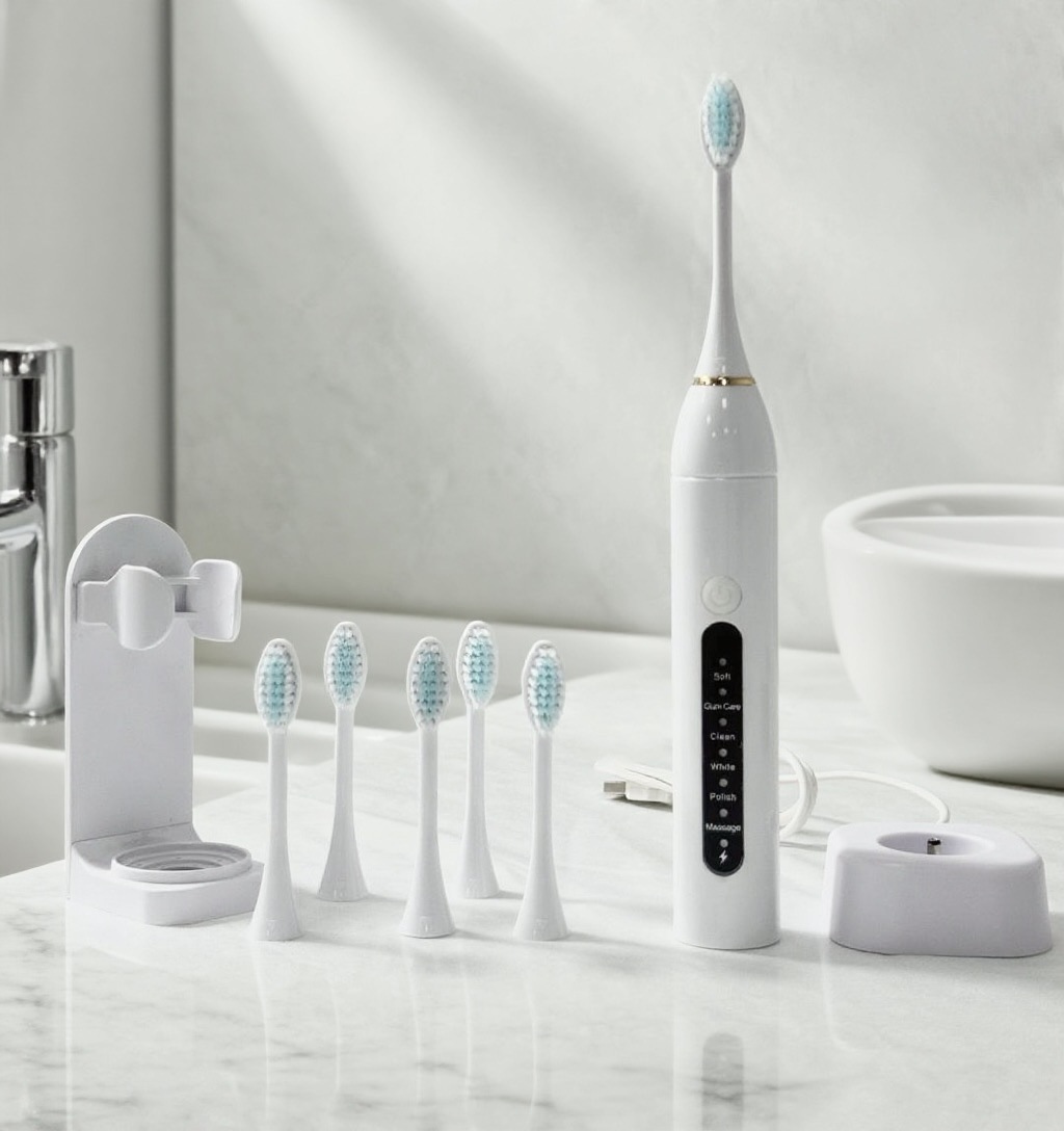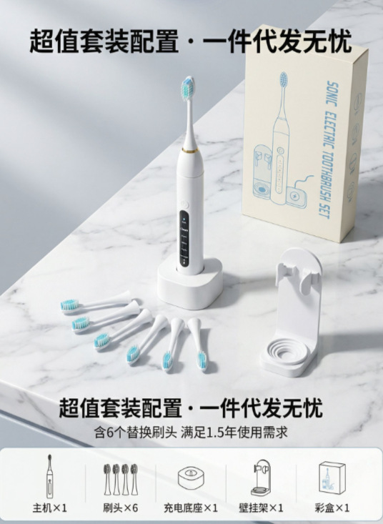 产品配置:6个杜邦刷头+1个主机+1个充电底座+1个支架(彩盒装)