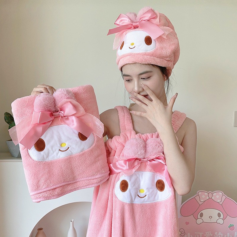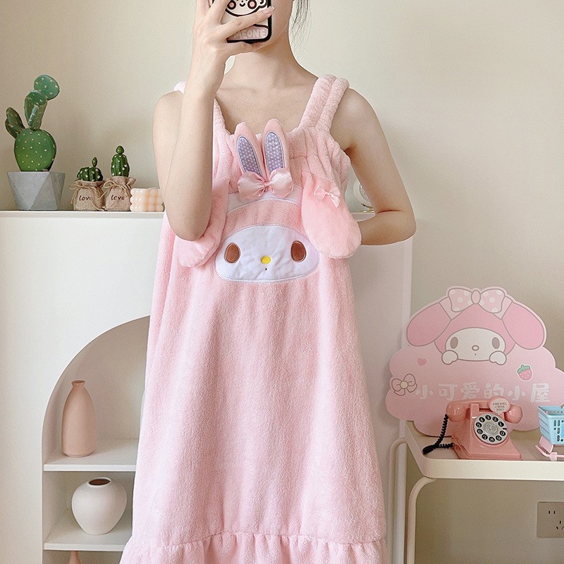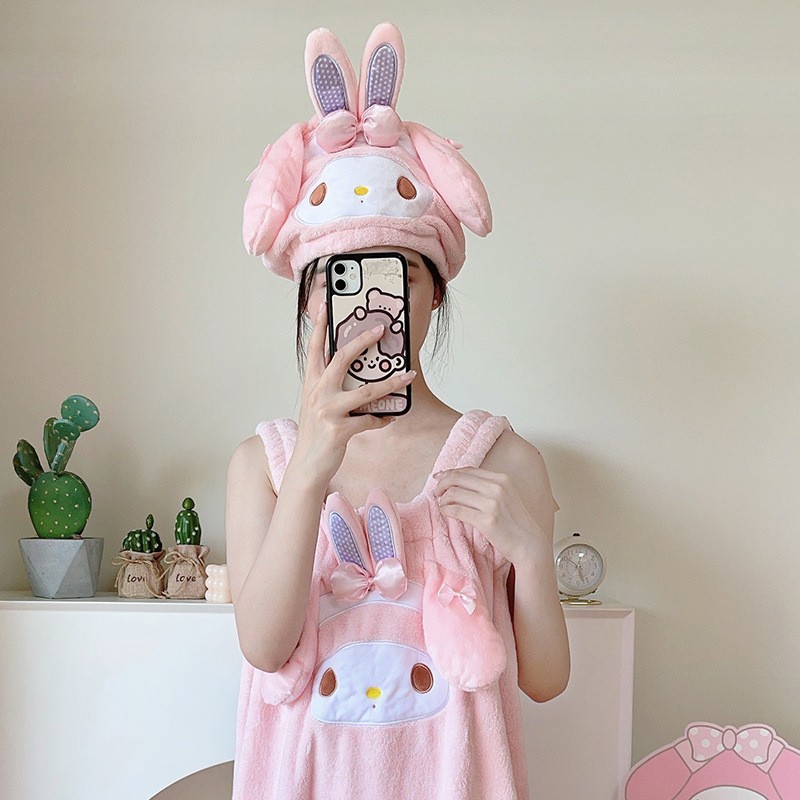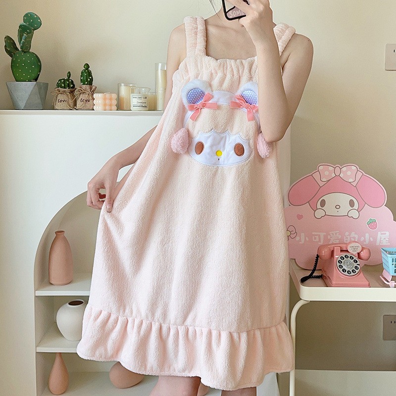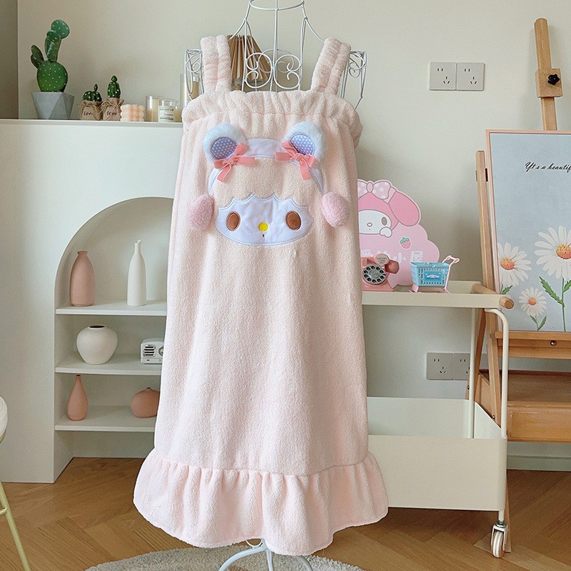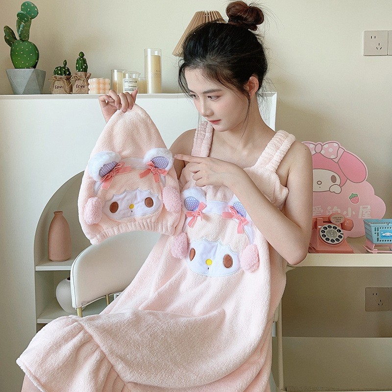 일본 만화 플러시 귀여운 소녀 하트 홈 목욕 가운 귀여운 대형 목욕 타월 작은 수건 드라이 헤어 캡 목욕 스커트