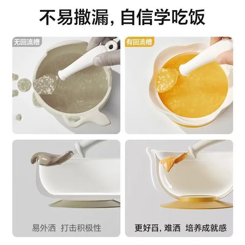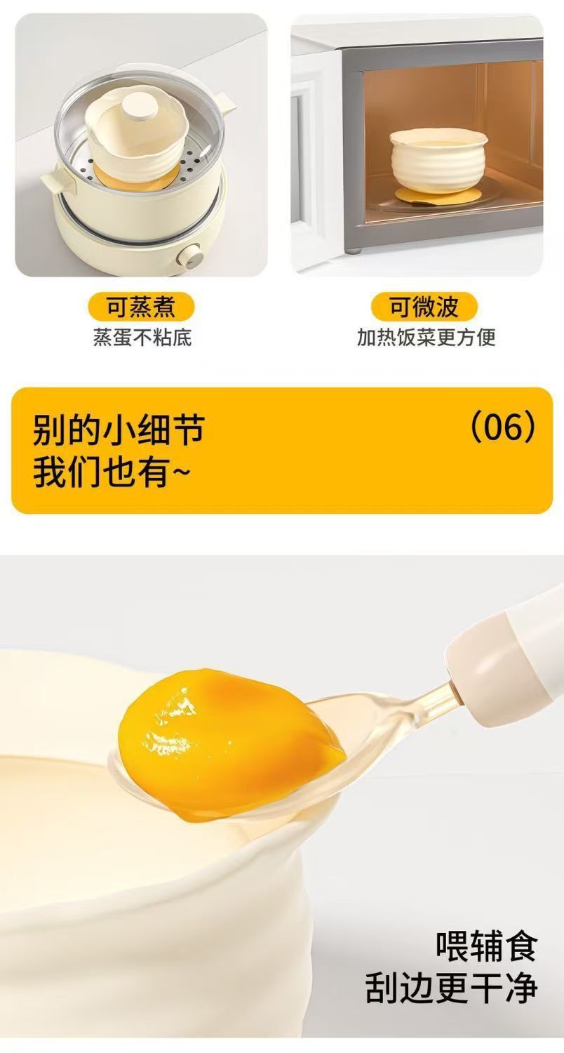 아기 계란 수프 보충 그릇 아기 훈련 먹는 법을 배우는 실리콘 빨판 일체형 낙하 방지 및 화상 방지 어린이 식기
