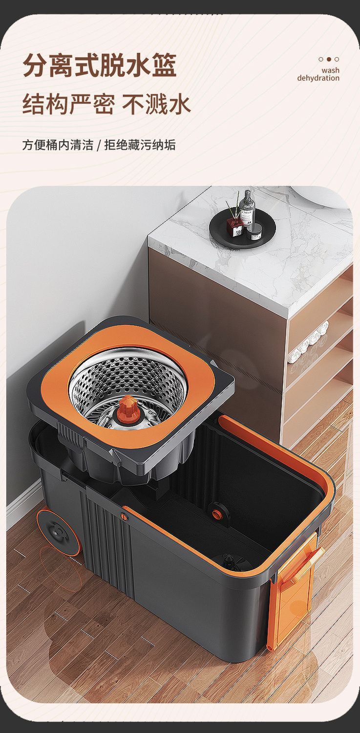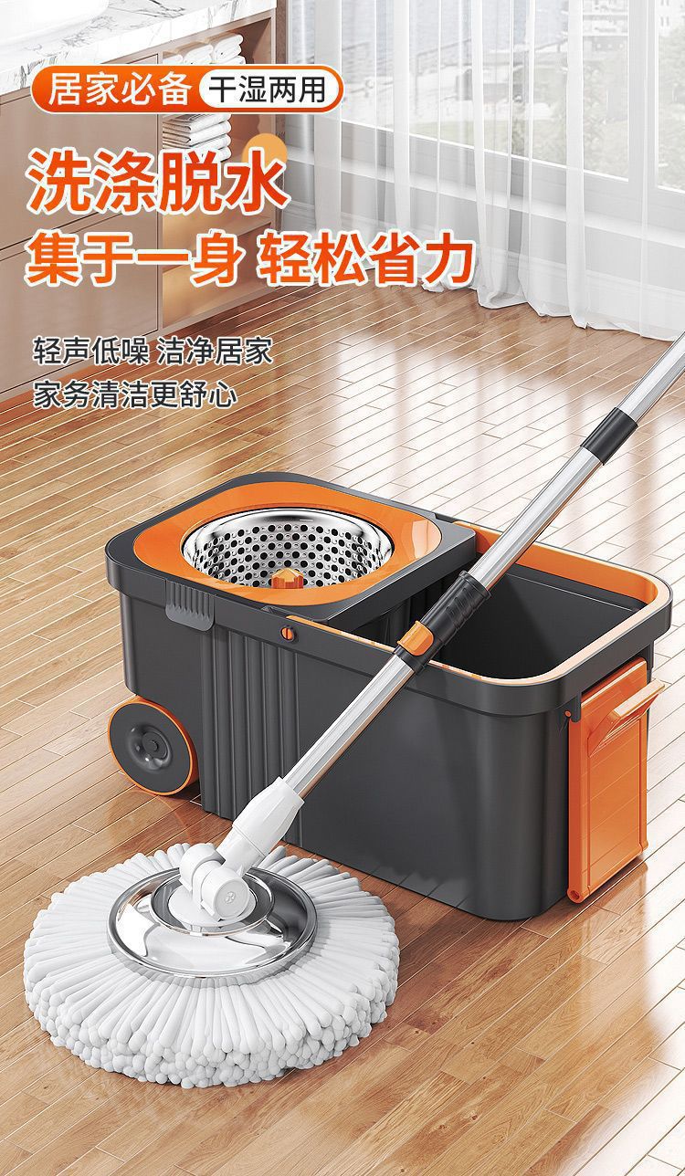 [새 모델] 걸레 1개 + 버킷 1개 + 걸레 6개 [회색 주황색] 탈부착 및 회전 가능