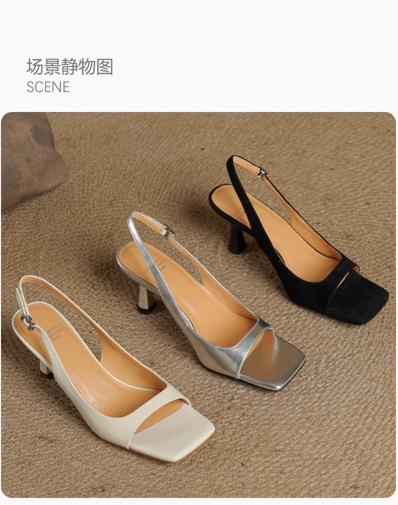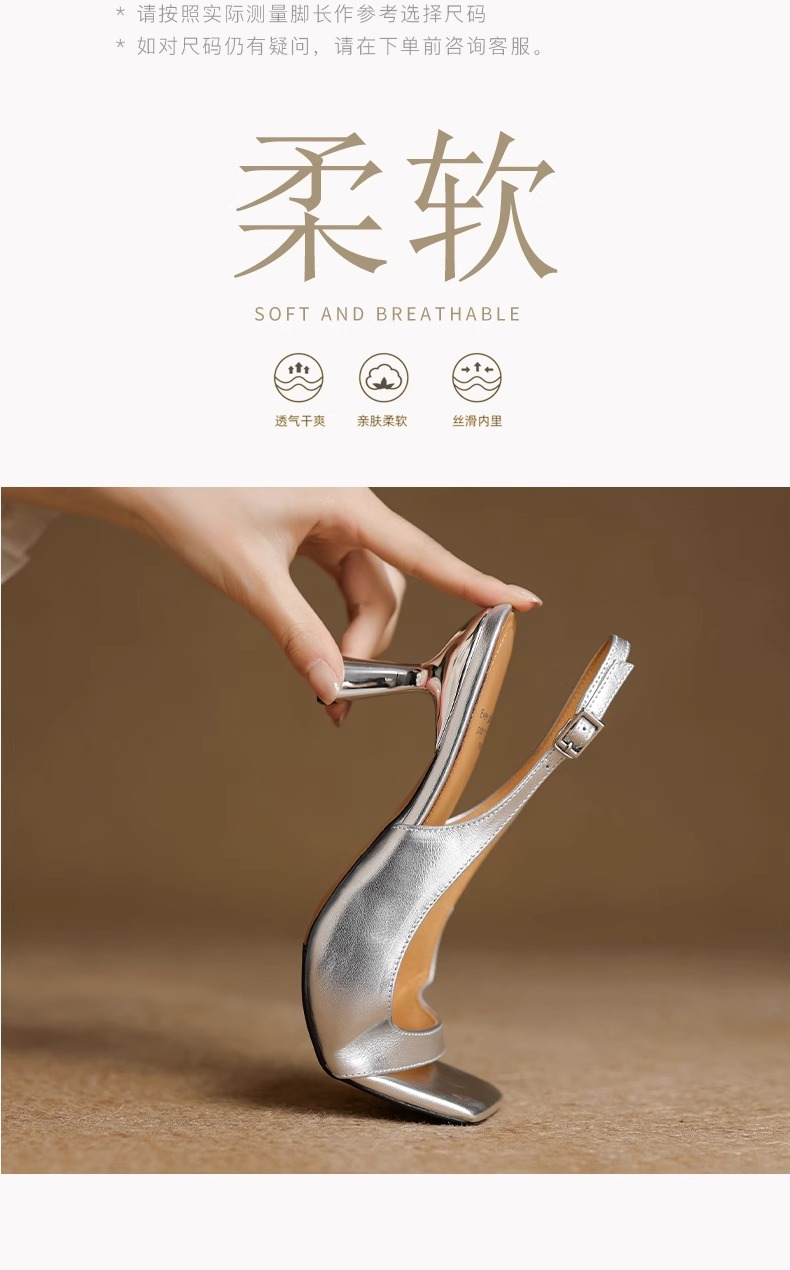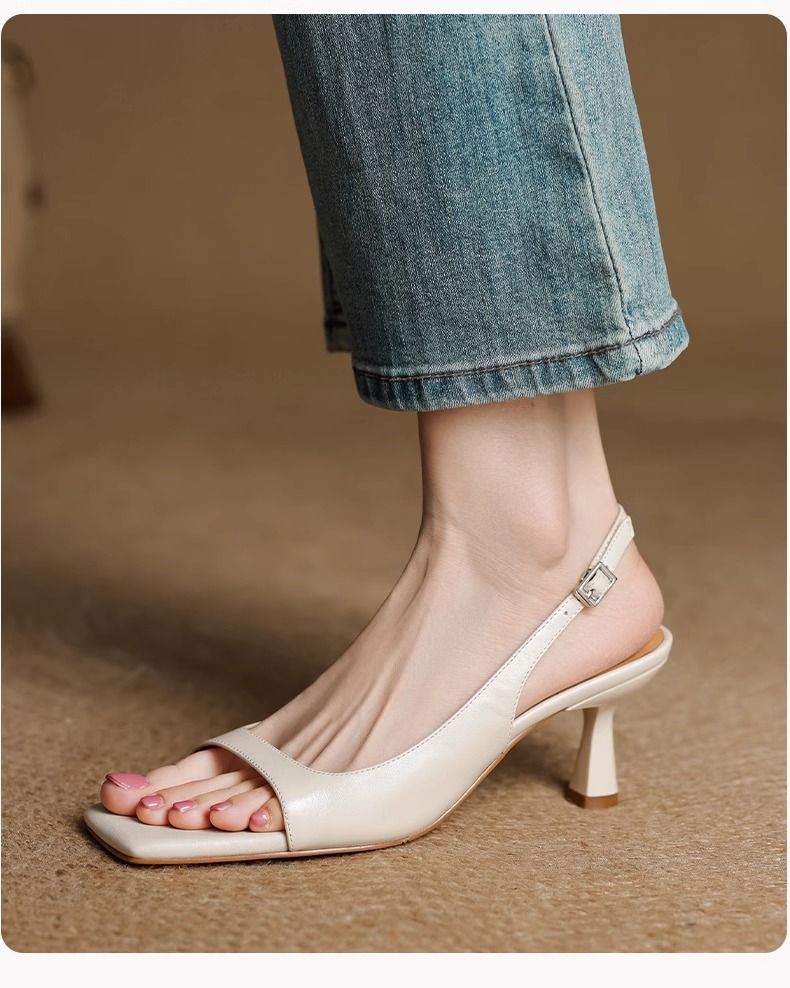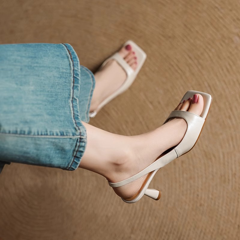 우아한 스커트, 여성용 천연 가죽 하이힐 피쉬 입 샌들, 2025 여름 신작 오픈 토 스틸레토 로마 신발