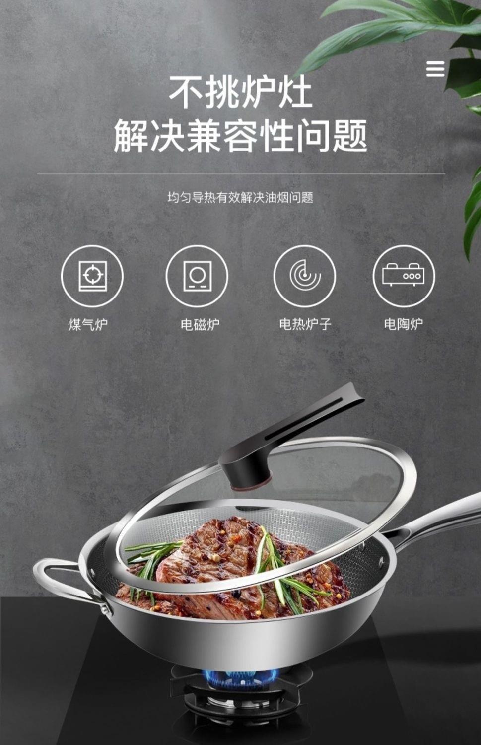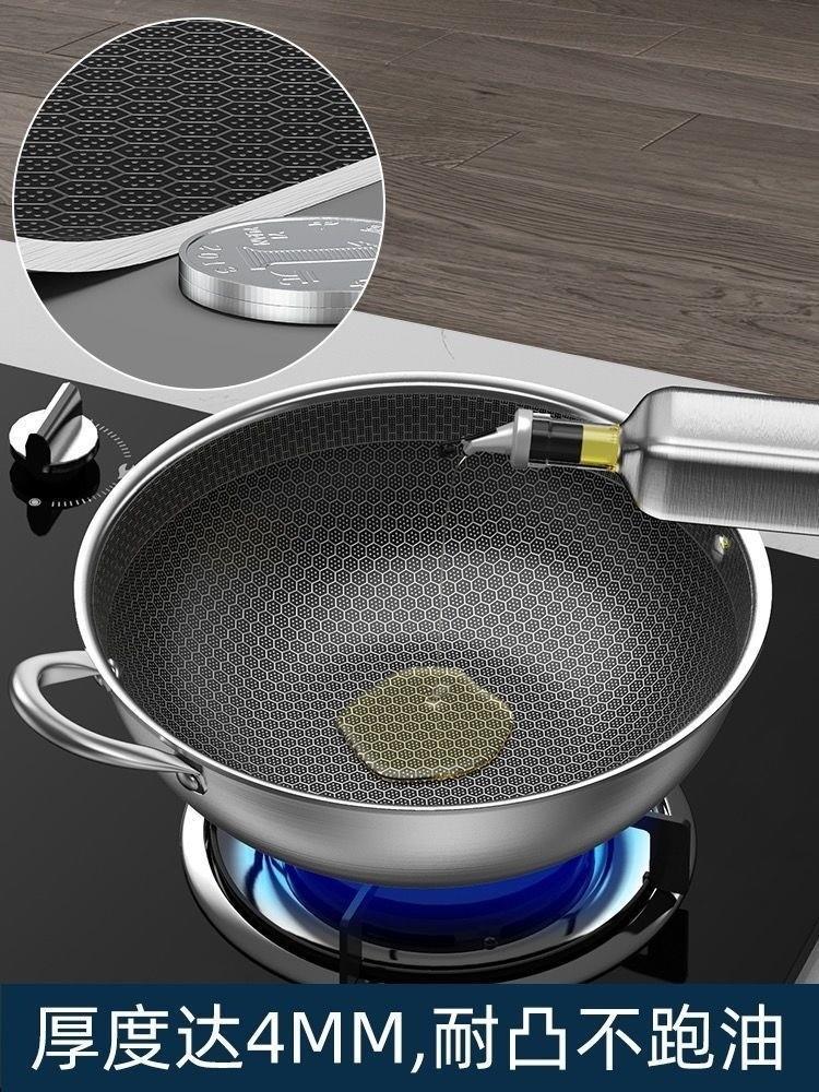 독일산 무연 논스틱 스테인레스 스틸 냄비 가정용 무코팅 냄비 인덕션 밥솥 평평한 바닥 둥근 바닥