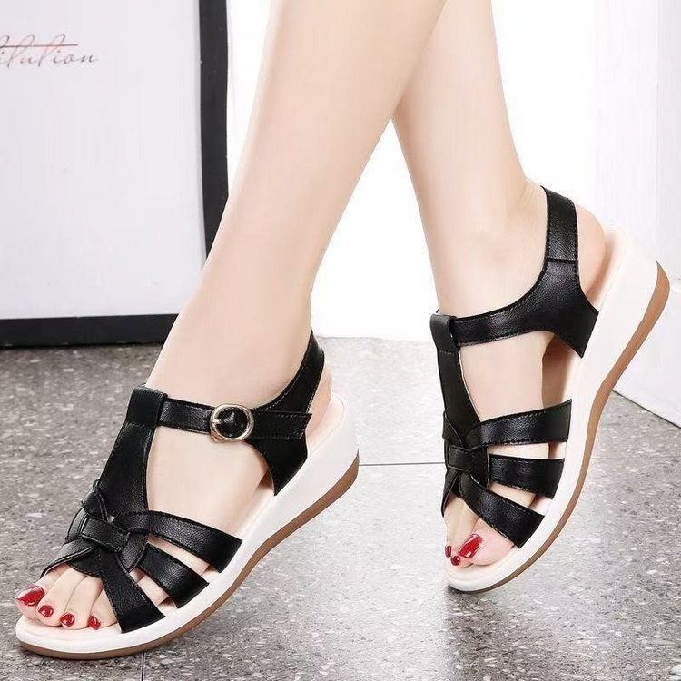 여성용 엄마 샌들 웨지 힐 2025 새로운 두꺼운 밑창 다용도 여름 여성 신발 플랫폼 밑창 플랫 피쉬 입 로마 신발