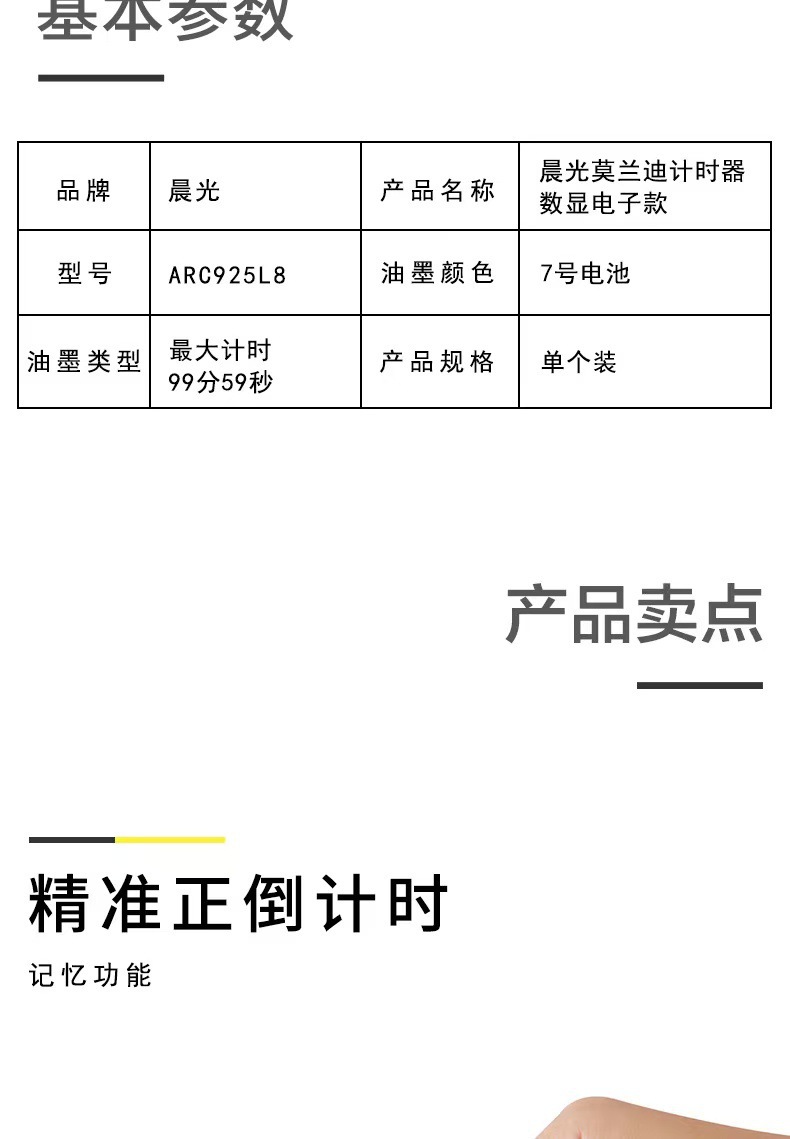 Chenguang ARC925L8 타이머 카운트다운 디지털 디스플레이 전자 타이머 학생 숙제 자기 훈련 타이머