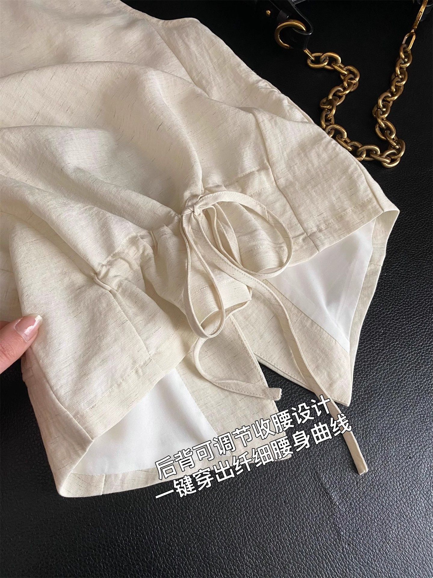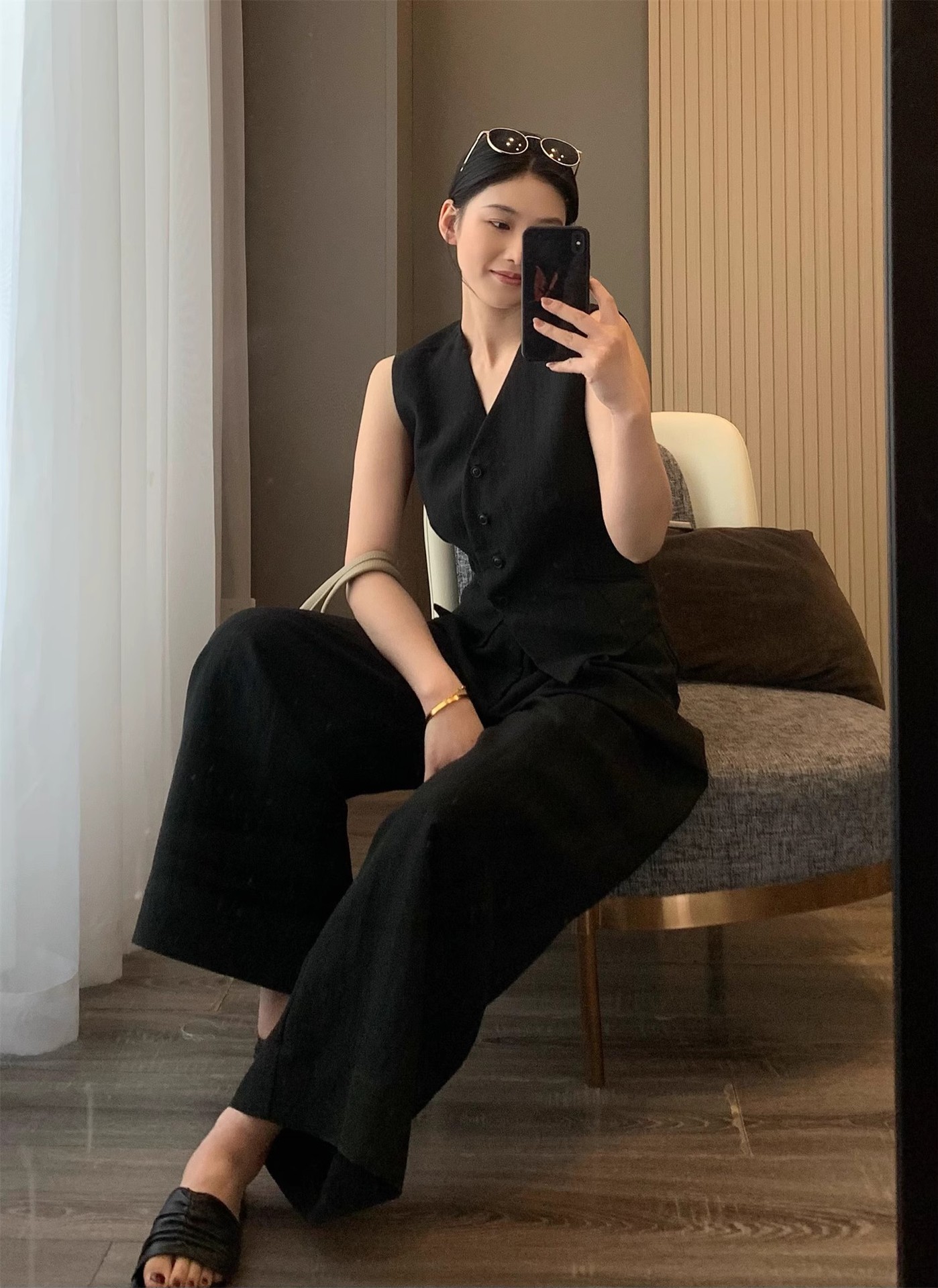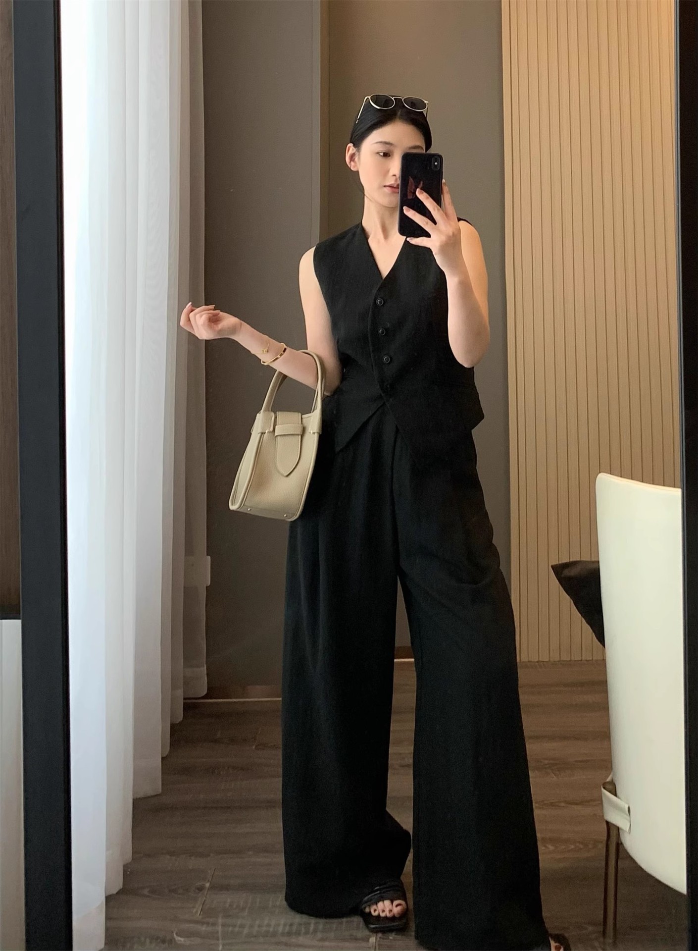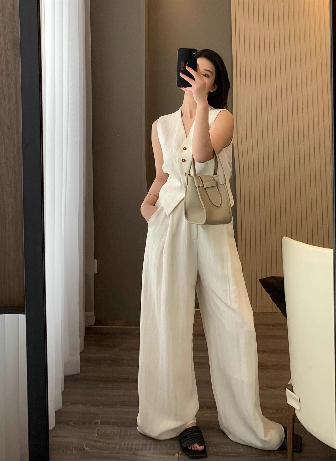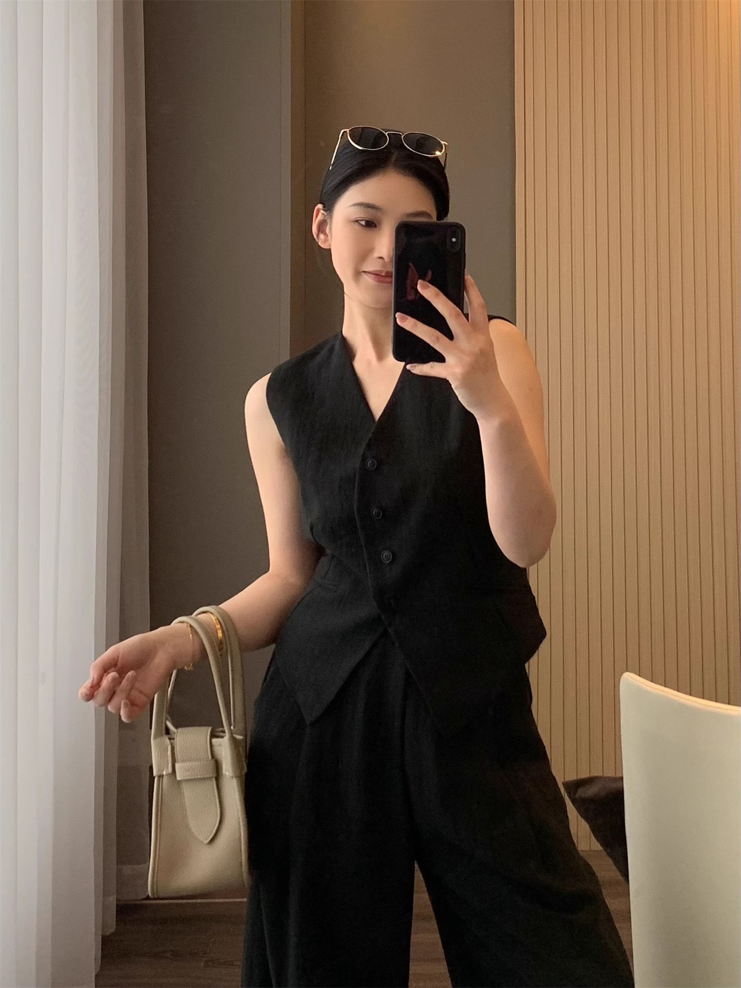 텐셀 린넨 세트 민소매 고급스러운 2026 여름 신상품 레트로 패션 조끼 와이드 팬츠 투피스 여성용