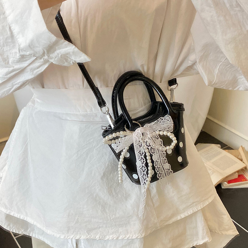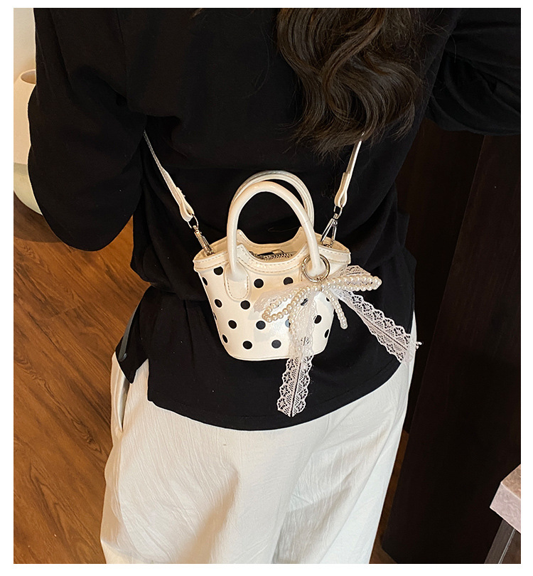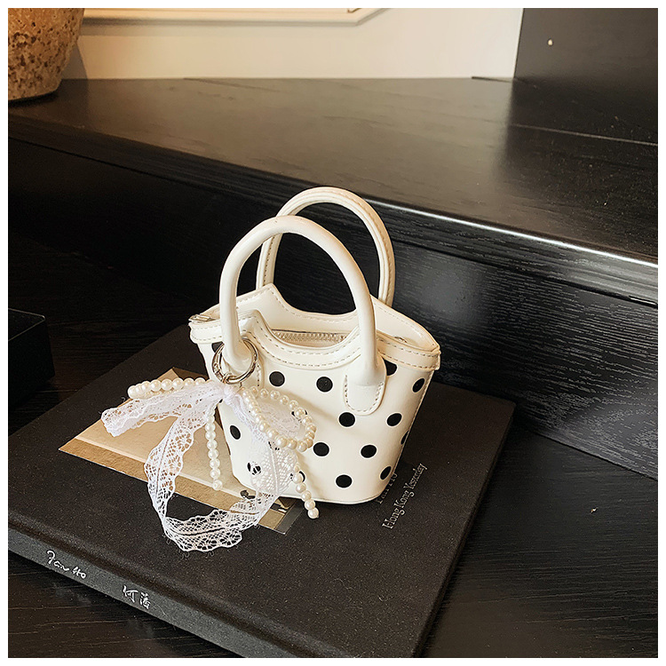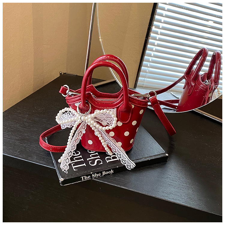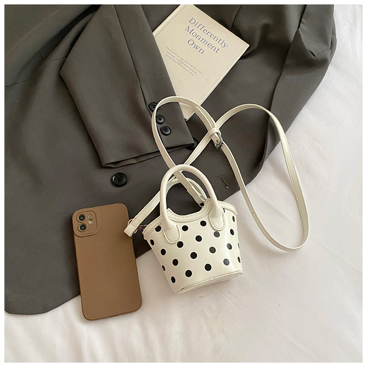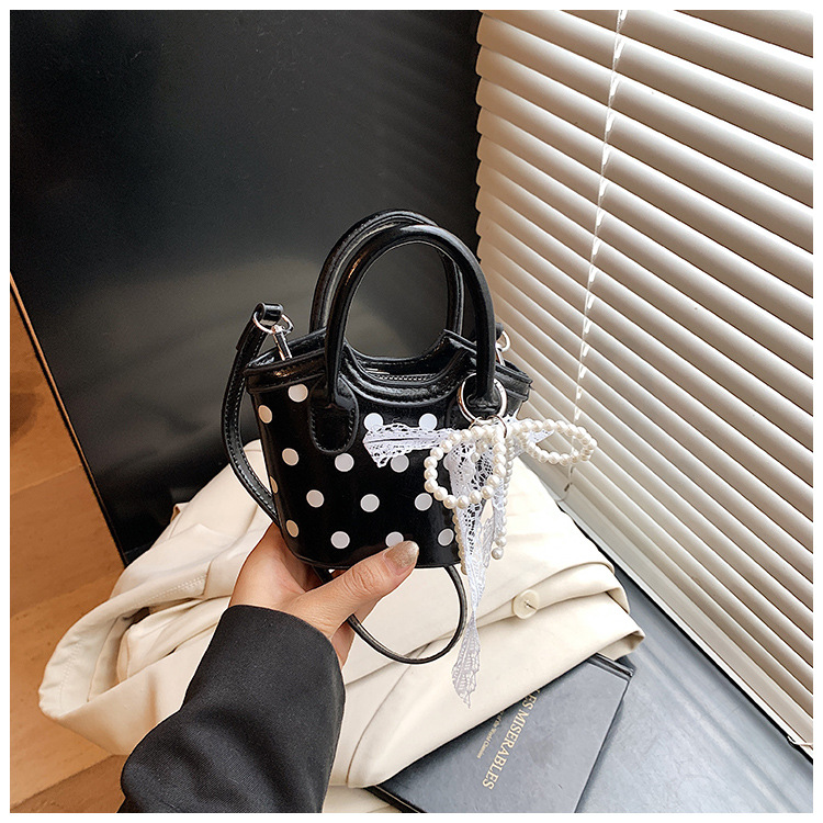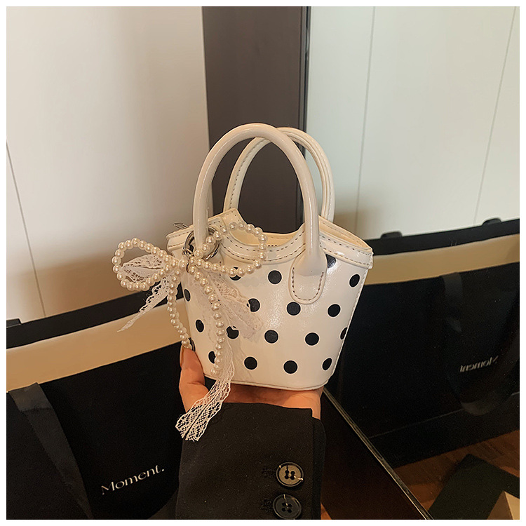 2025 새로운 여름 스타일 유럽과 미국의 복고풍 오일 가죽 폴카 도트 핸드백, 세련된 소녀의 고급 크로스 바디 백 동전 지갑