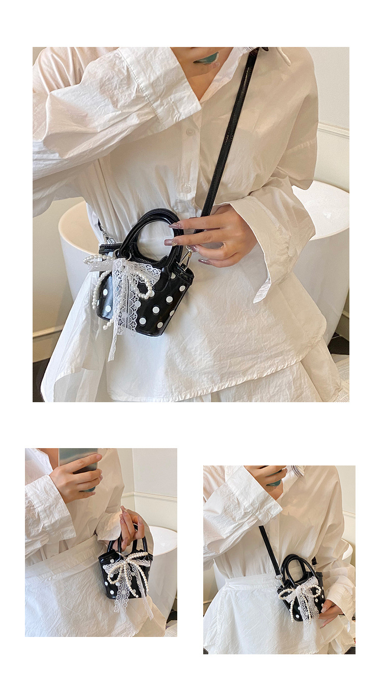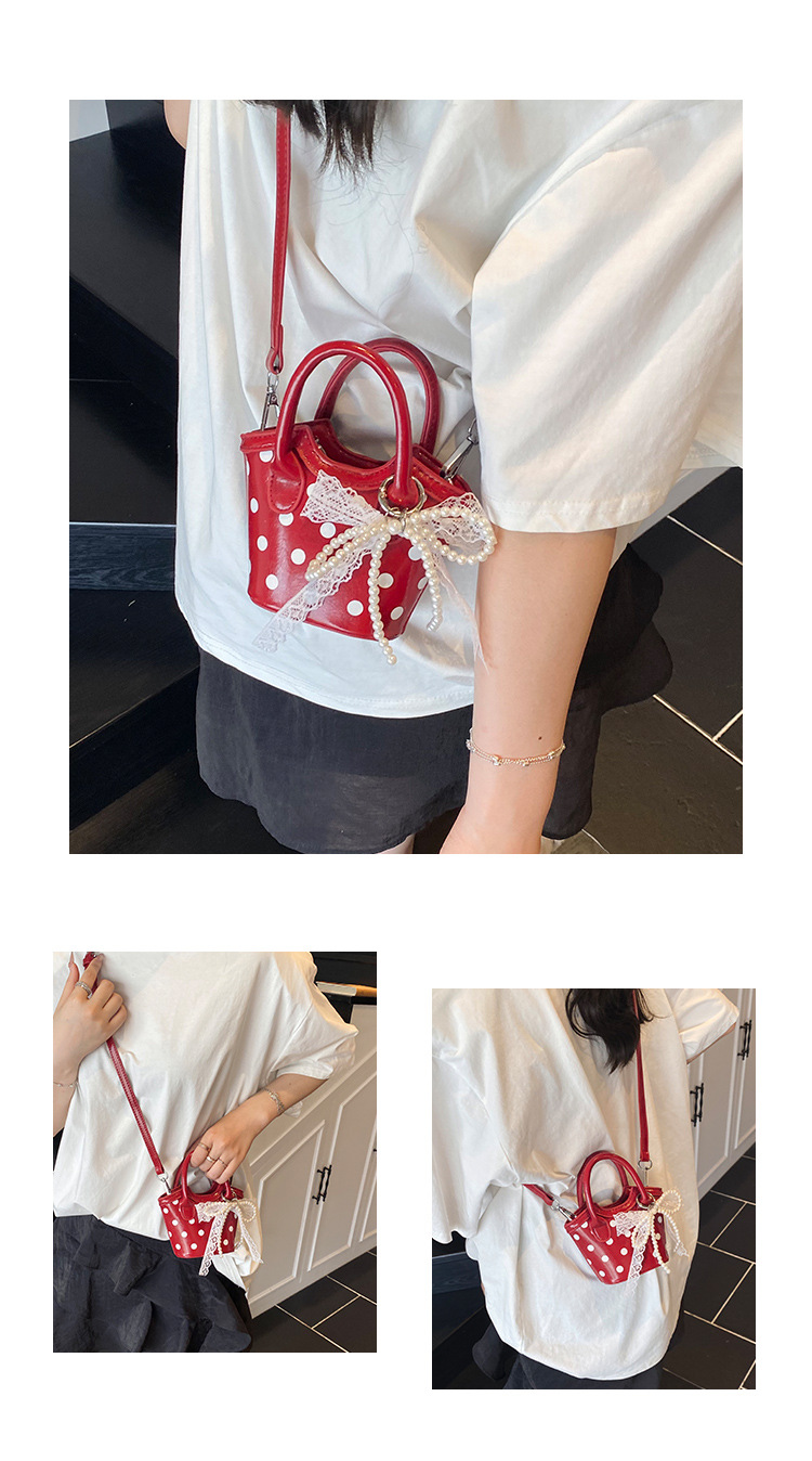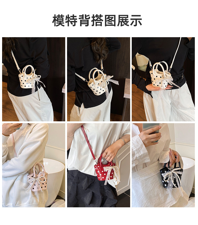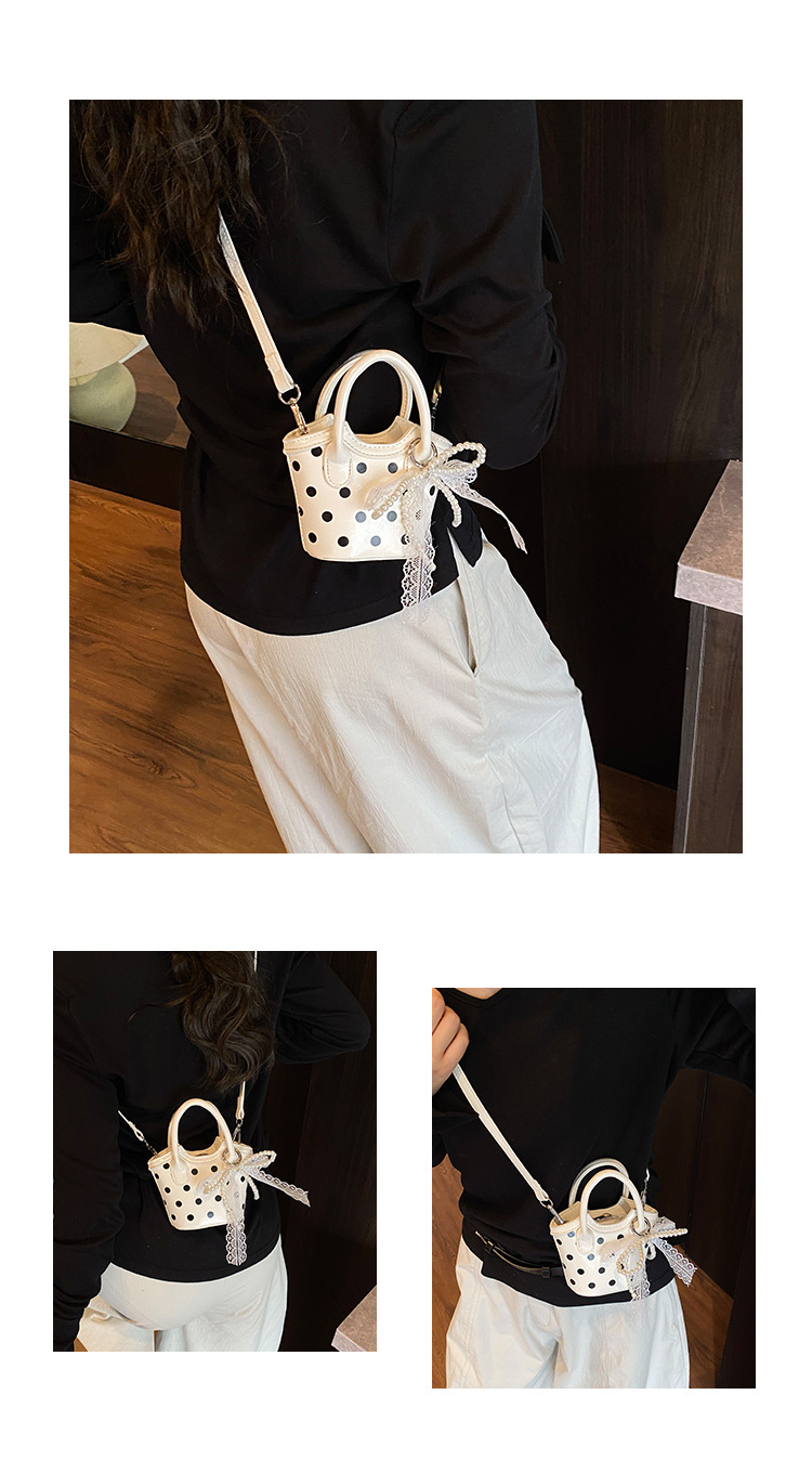 2025 새로운 여름 스타일 유럽과 미국의 복고풍 오일 가죽 폴카 도트 핸드백, 세련된 소녀의 고급 크로스 바디 백 동전 지갑