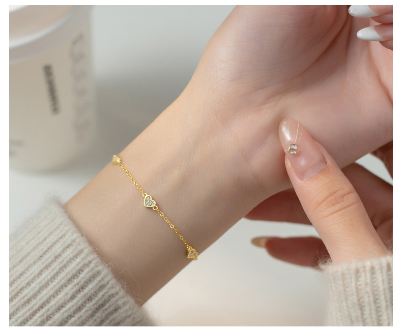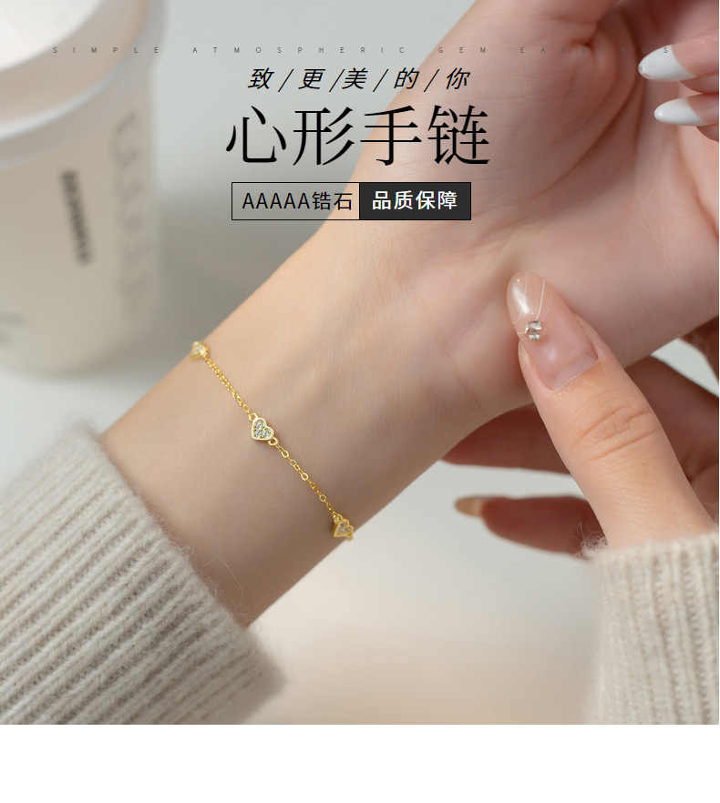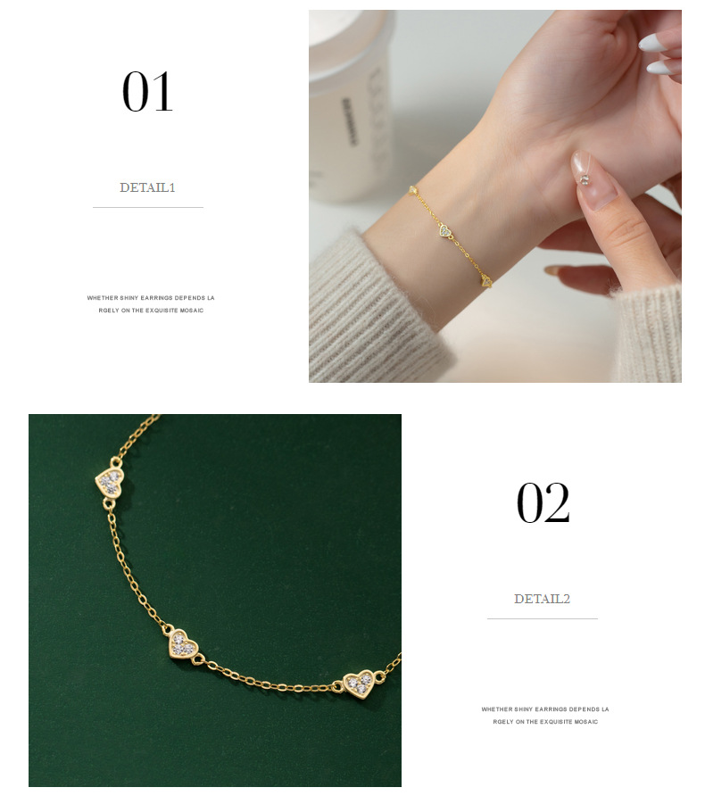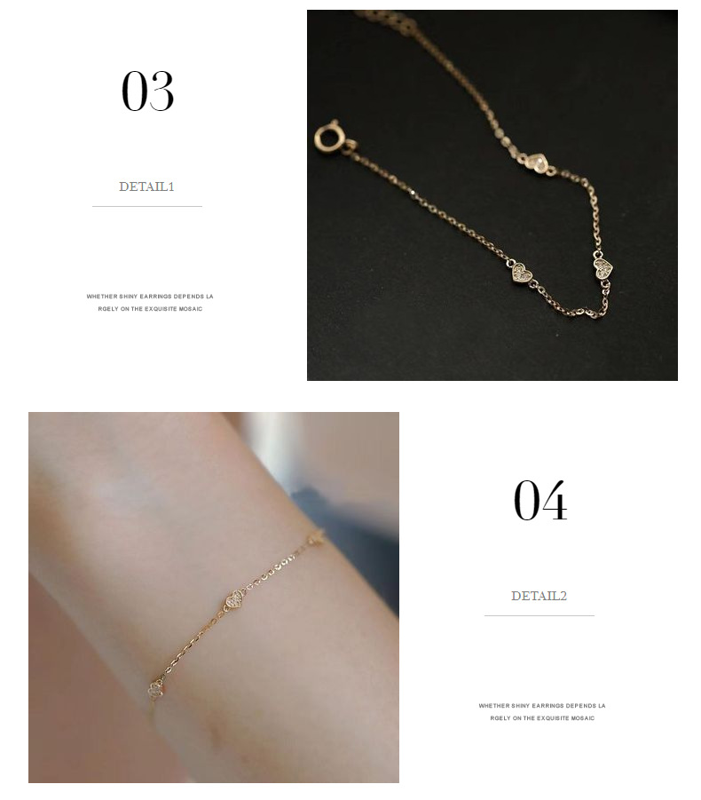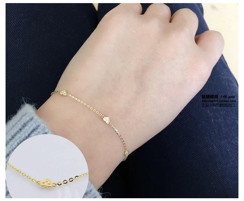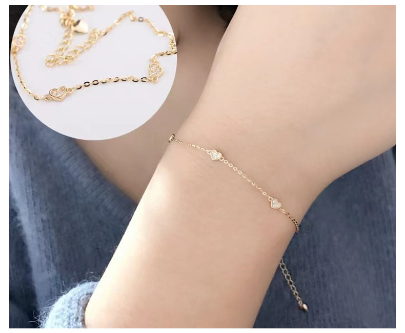 하트 모양 팔찌 (골드 컬러) 리얼 골드로 전기도금하여 색상 보존 및 환경 친화적