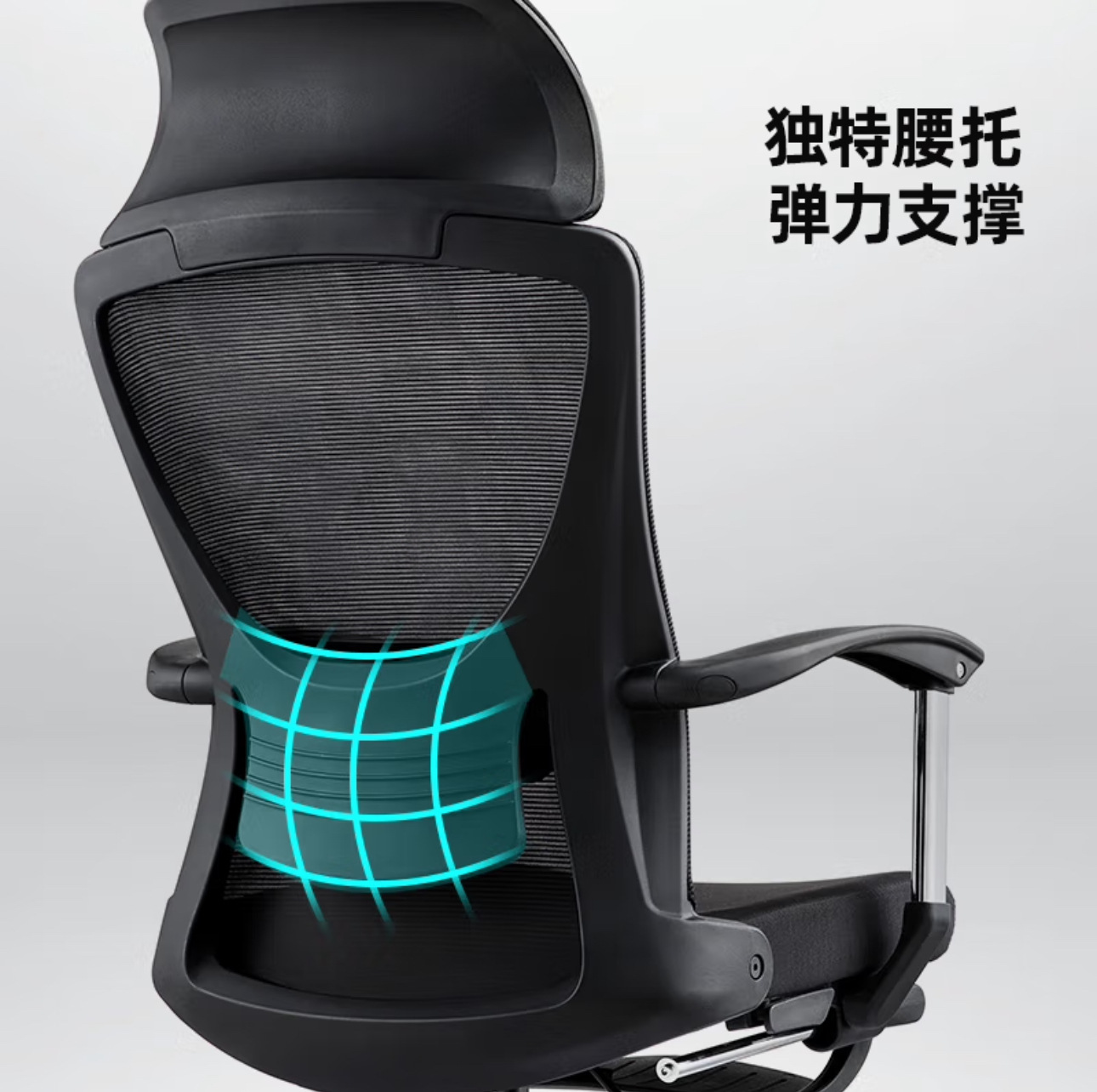 블랙 프레임 및 블랙 메쉬 [전기도금 다리] [발판 및 리클라이닝 포함]