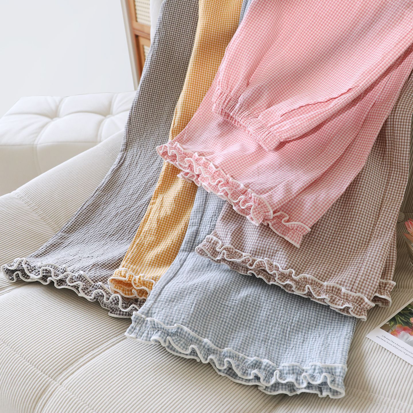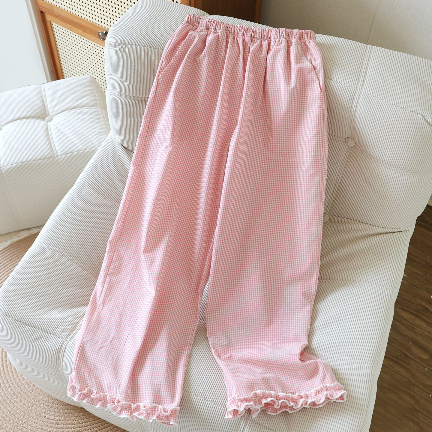 여성용 순면 잠옷, 여름 얇은 일본식 산책용 워시 코튼 홈팬츠, 야외에서 착용 가능