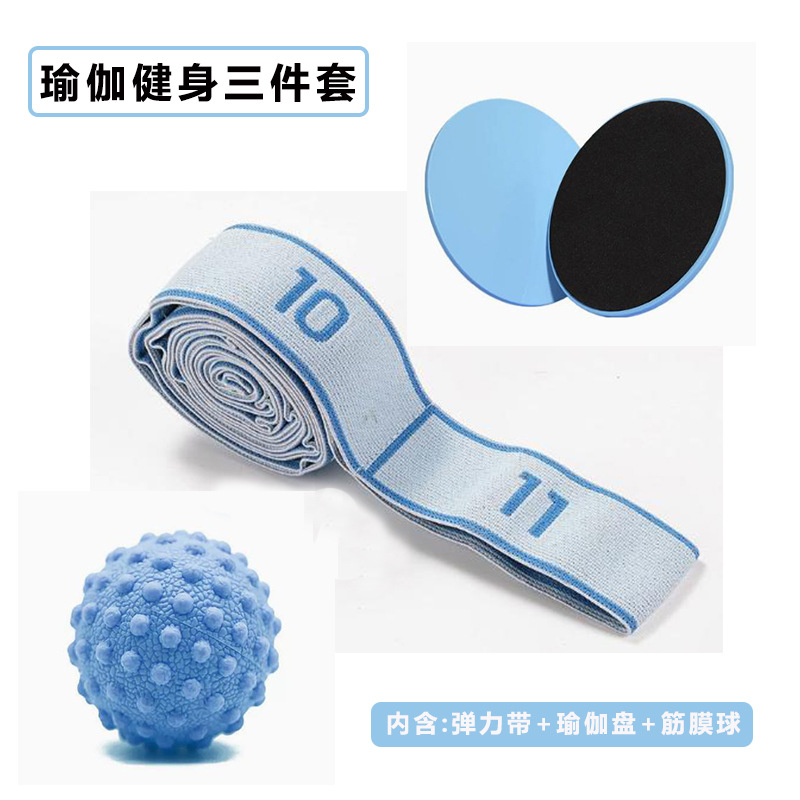 필라테스 요가 피트니스 도구 가방 3피스 탄성 밴드 근막 볼 글라이딩 디스크 스포츠 훈련 보조 장비