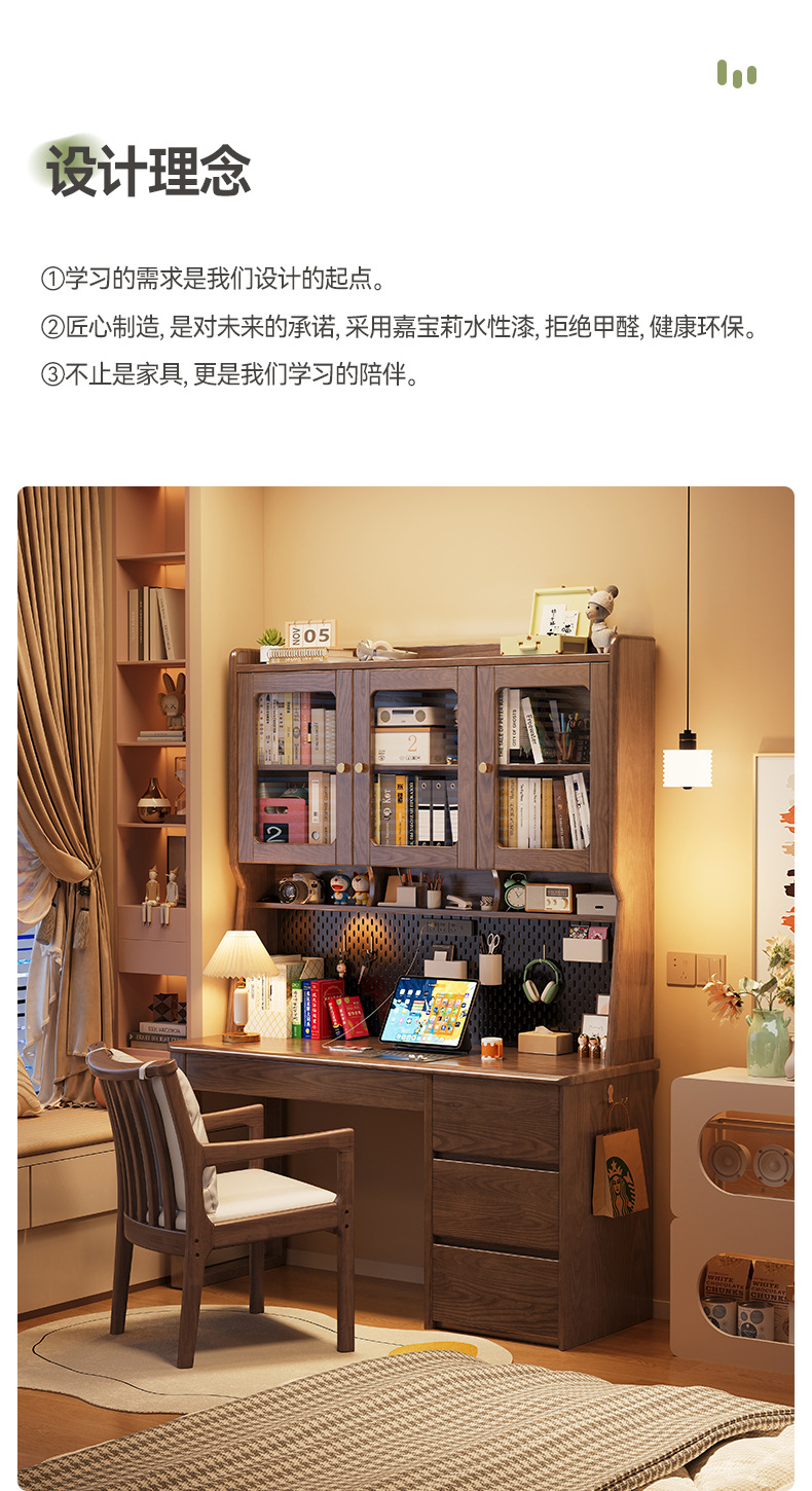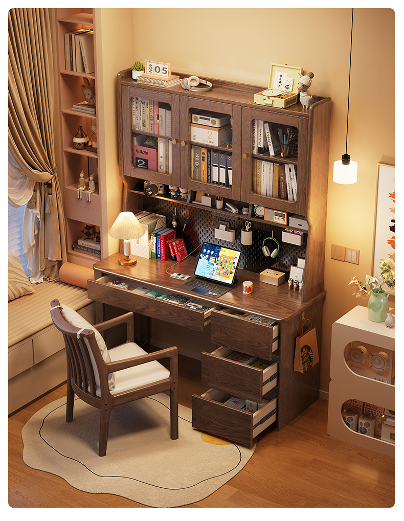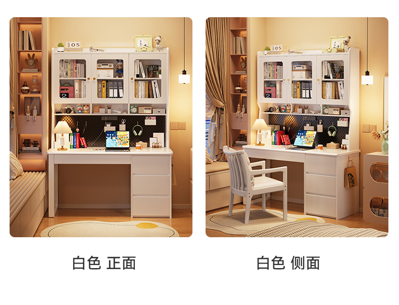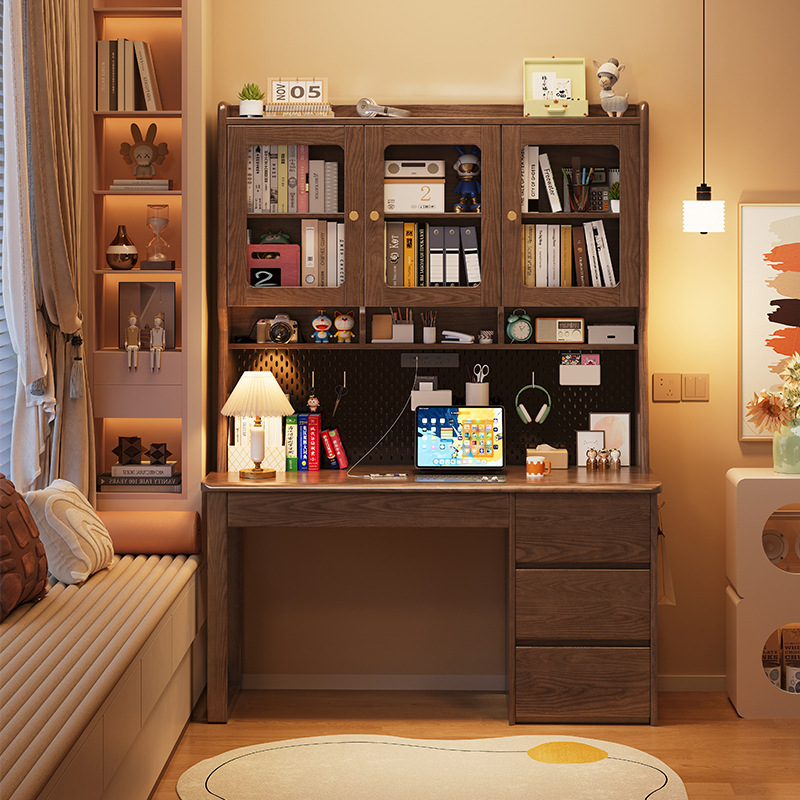 단단한 나무 책상과 책장이 통합된 어린이 학습 테이블 책장이 있는 가정용 책상 간단한 컴퓨터 책상 학생 책상