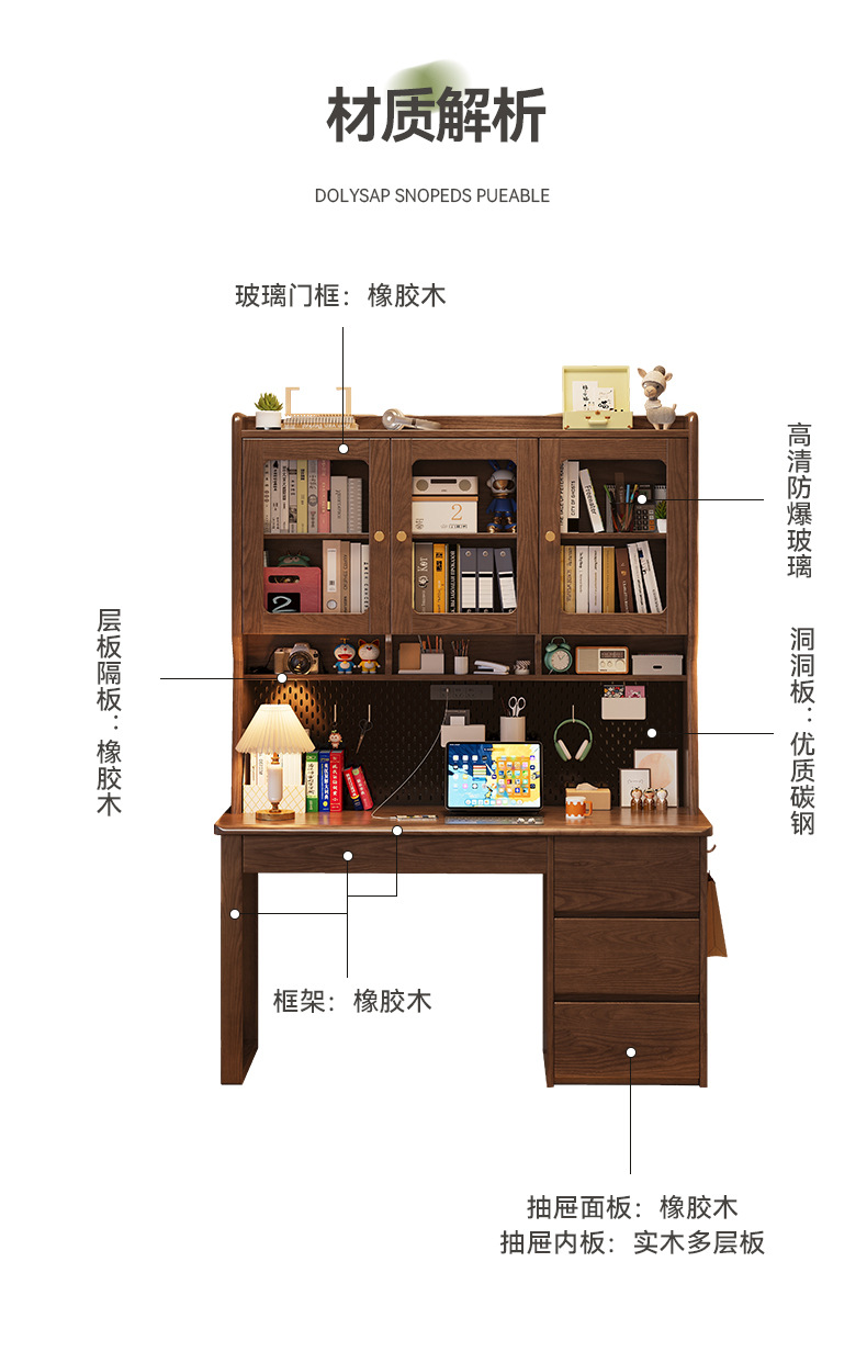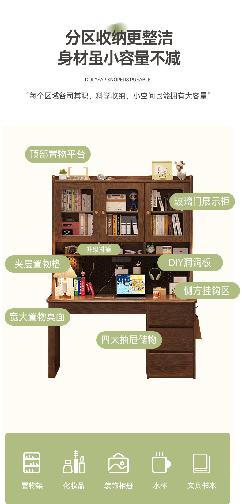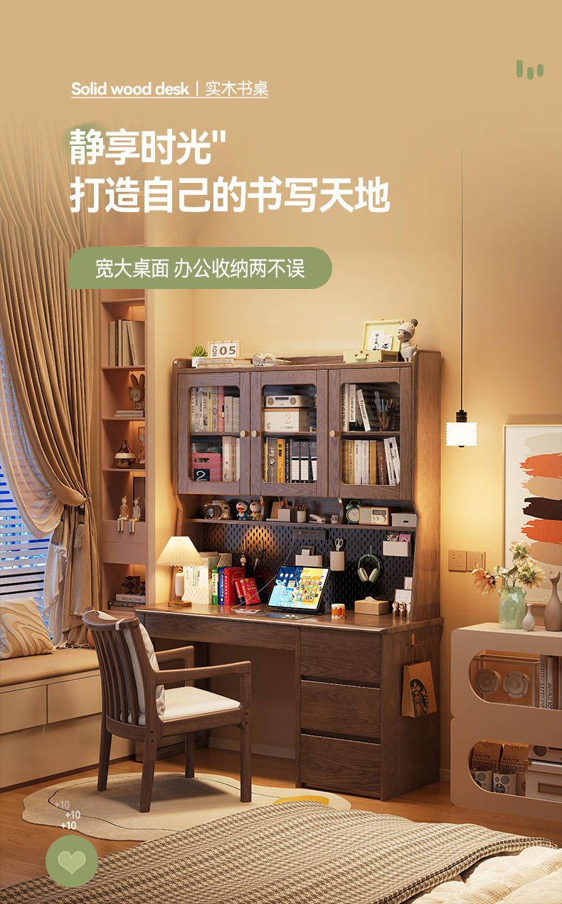 단단한 나무 책상과 책장이 통합된 어린이 학습 테이블 책장이 있는 가정용 책상 간단한 컴퓨터 책상 학생 책상