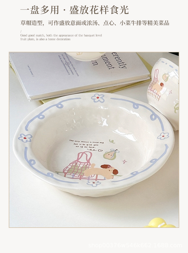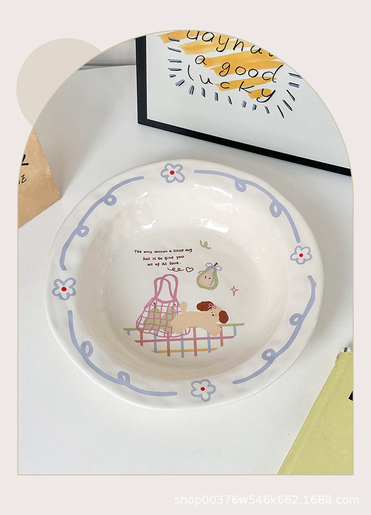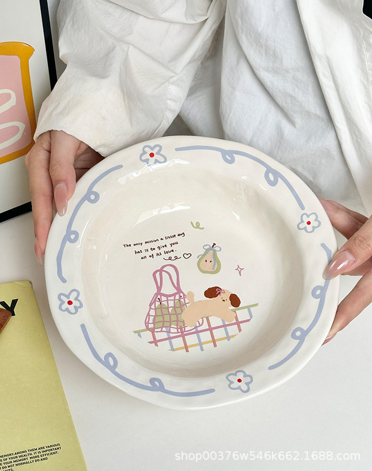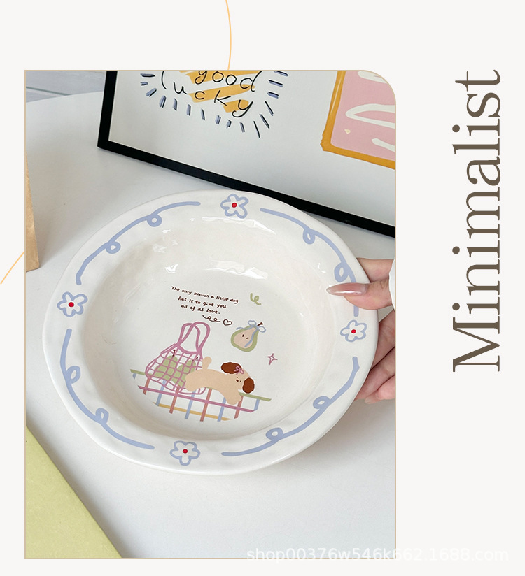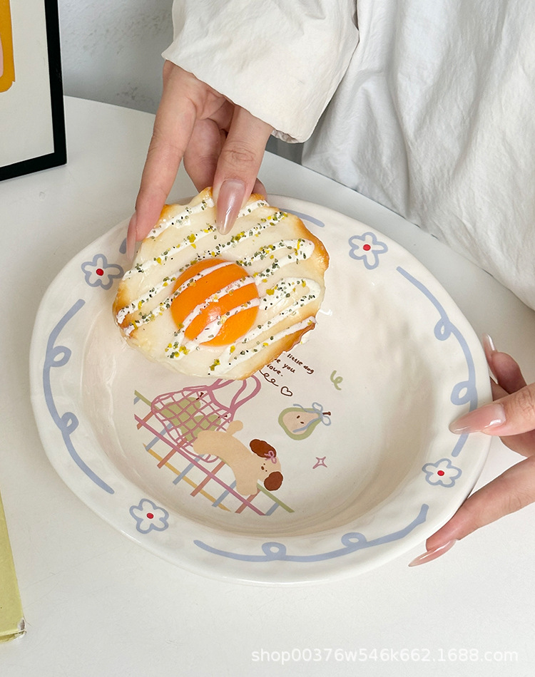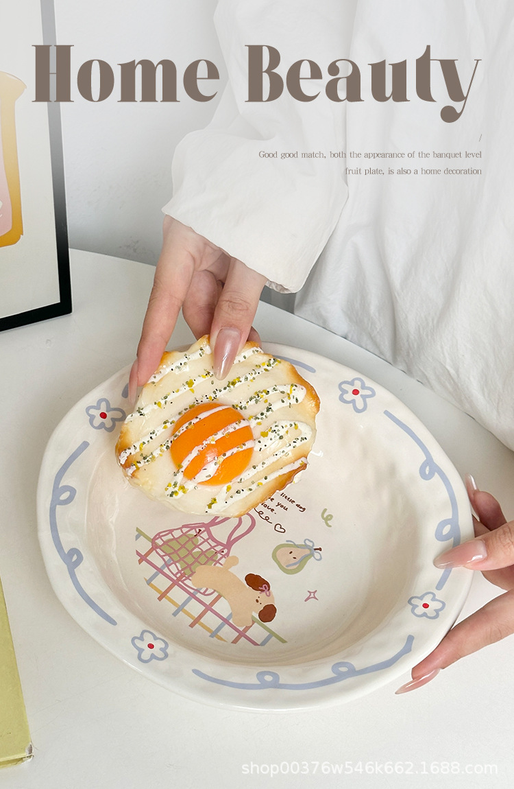 손으로 그린 세라믹 디너 플레이트, 멋진 인터넷 연예인 식기, 가정용 귀여운 과일 플레이트, 샐러드 플레이트, 아침 식사 플레이트, 디저트 플레이트