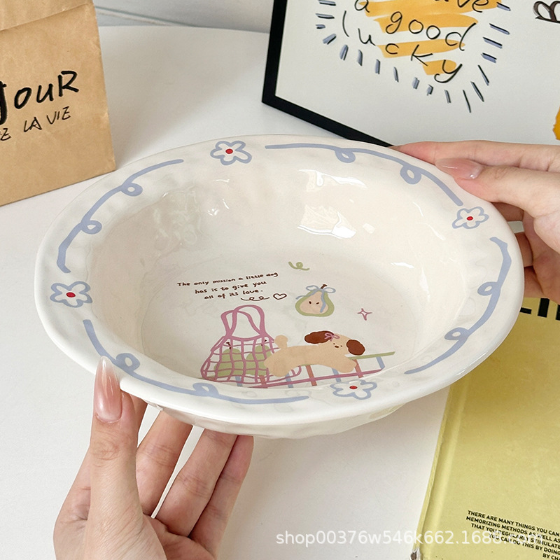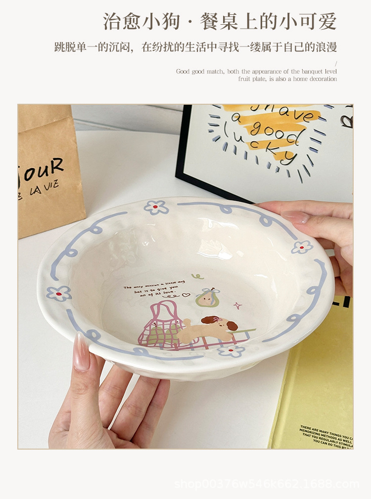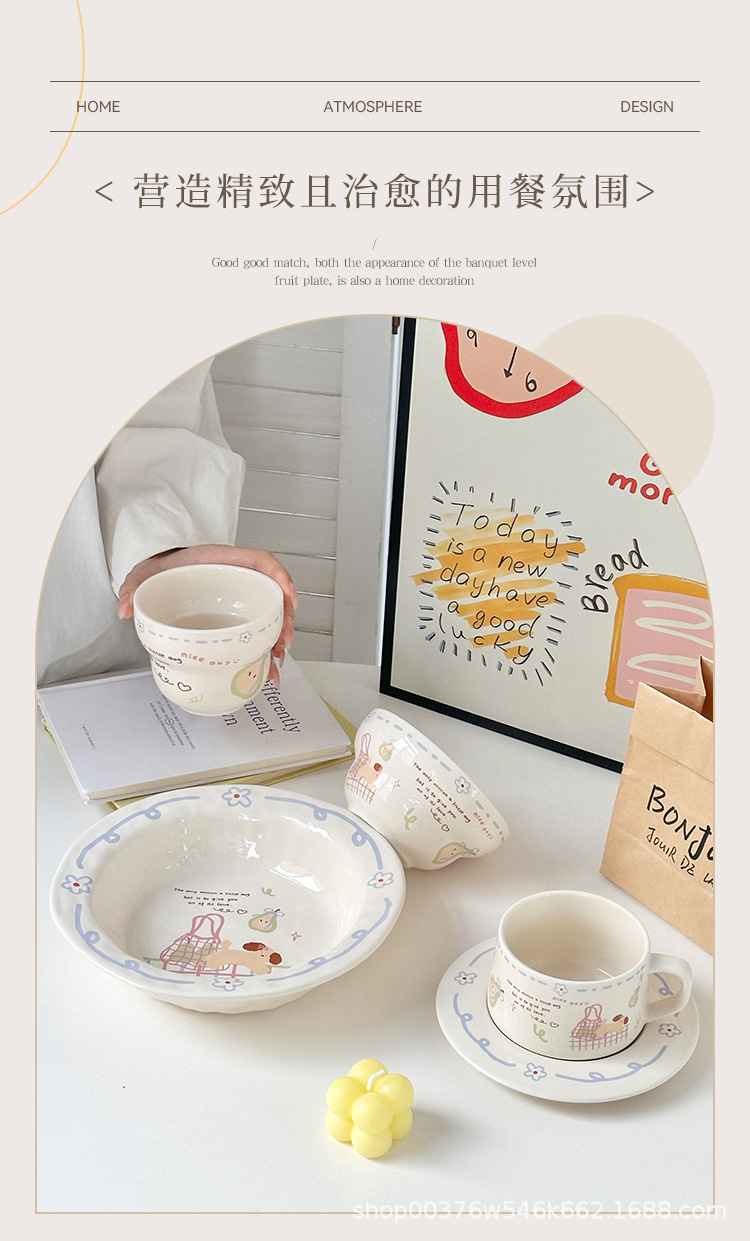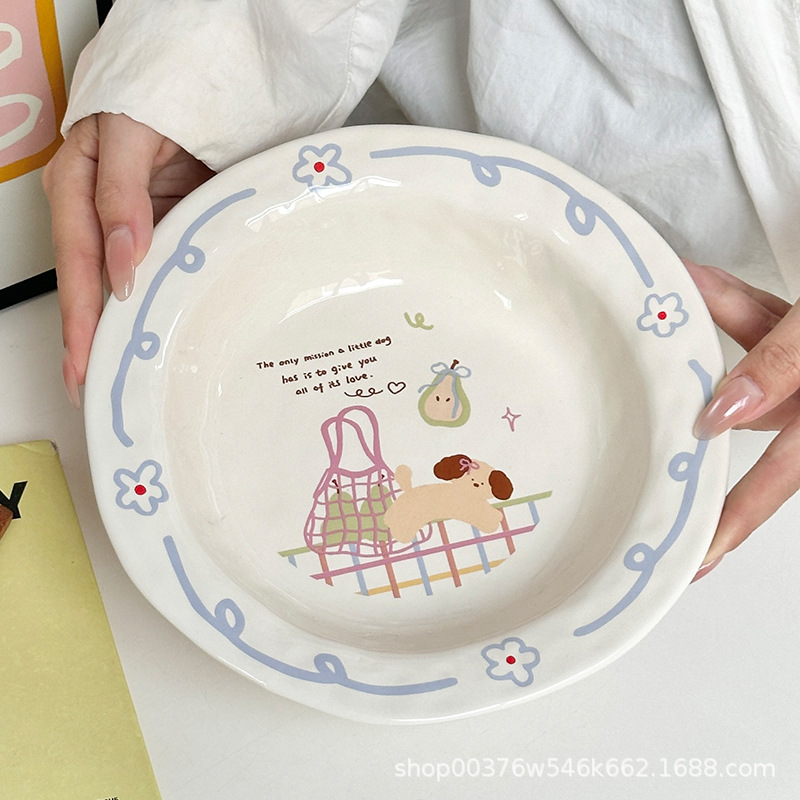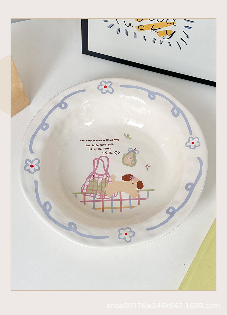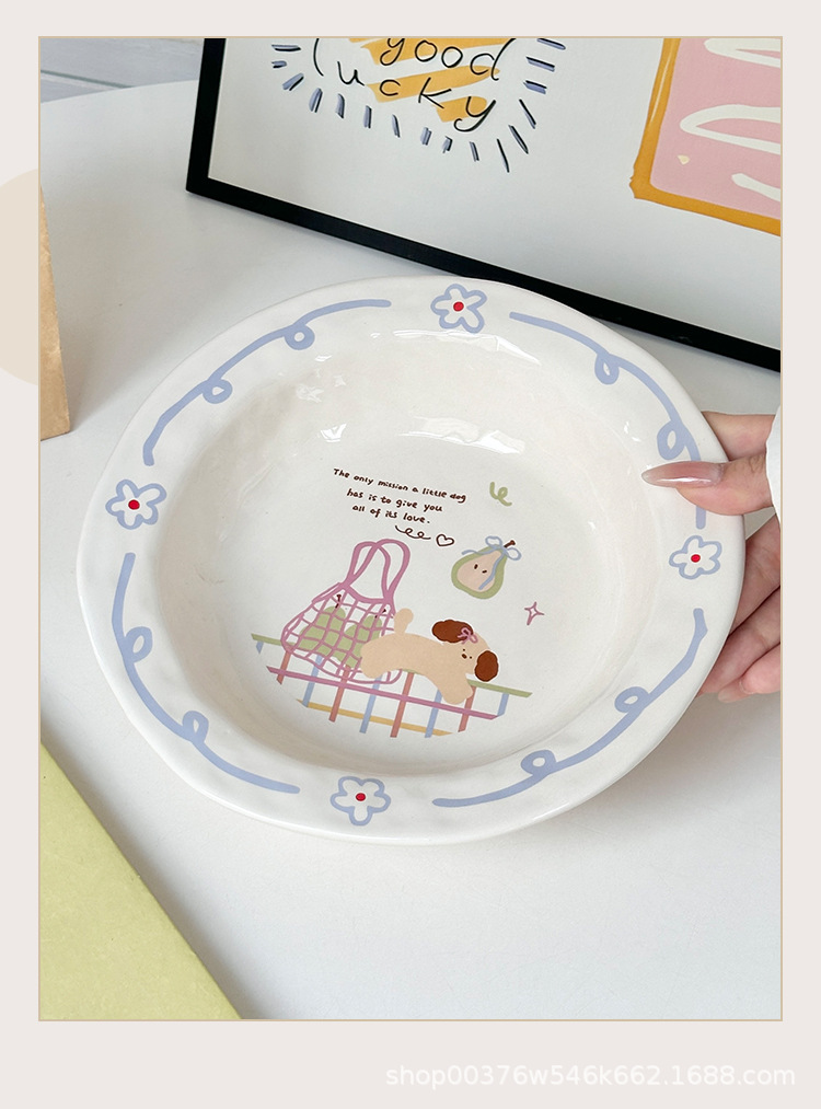 손으로 그린 세라믹 디너 플레이트, 멋진 인터넷 연예인 식기, 가정용 귀여운 과일 플레이트, 샐러드 플레이트, 아침 식사 플레이트, 디저트 플레이트