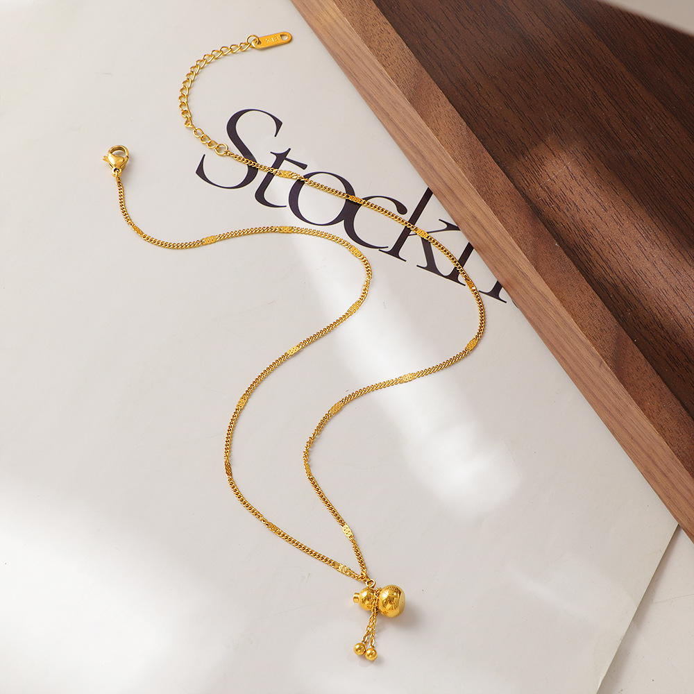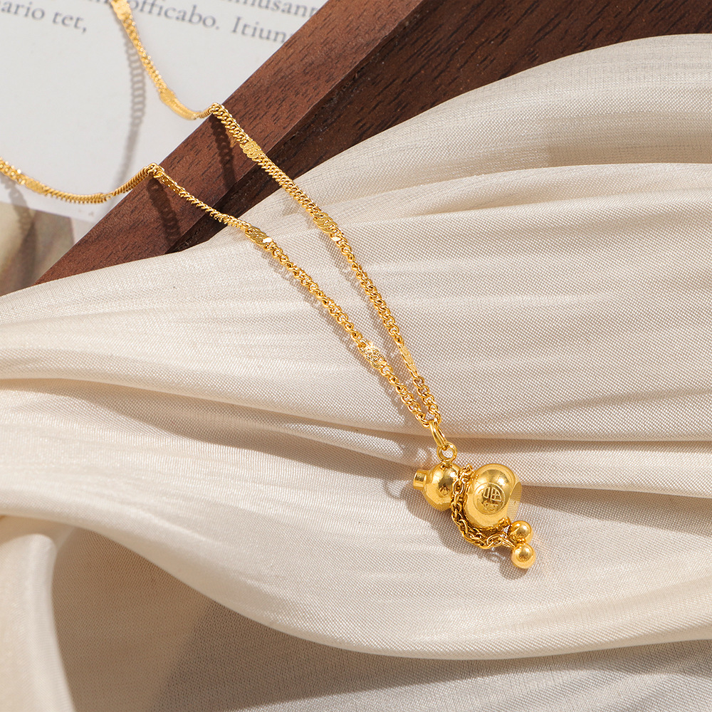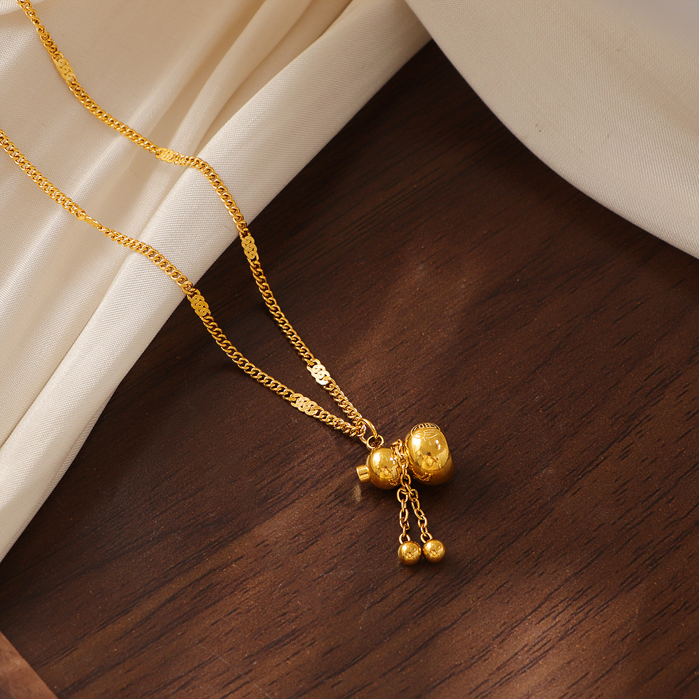 여성을 위한 새로운 중국 스타일 조롱박 태슬 목걸이, 티타늄 스틸, 변색되지 않는 가벼운 럭셔리, 고급 쇄골 체인, 18K 금도금 펜던트 목걸이