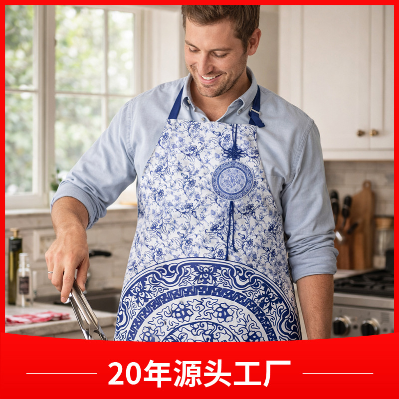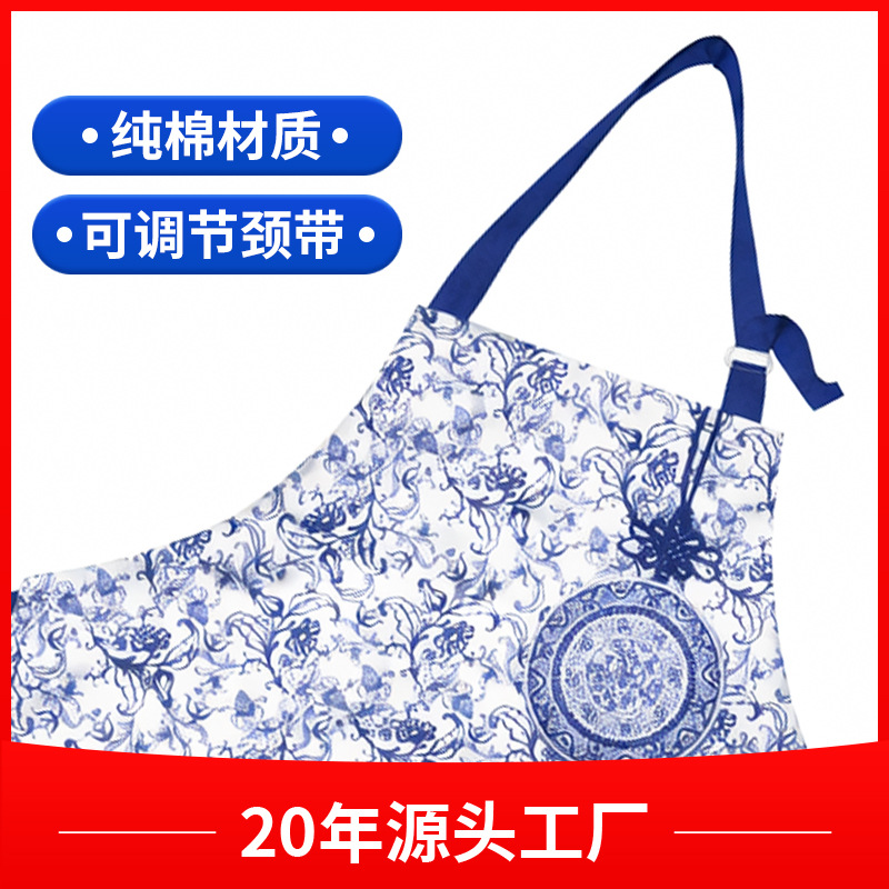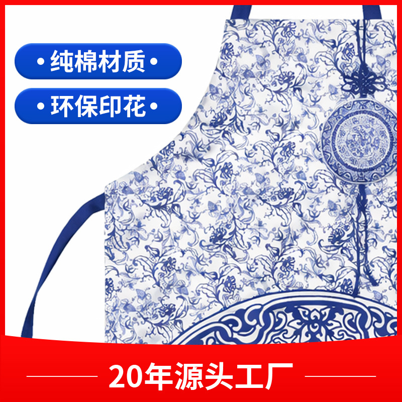 순수 코튼 성인 앞치마 가정용 방수 맞춤형 인쇄 패턴 주방 앞치마 청소 앞치마 남성과 여성을위한