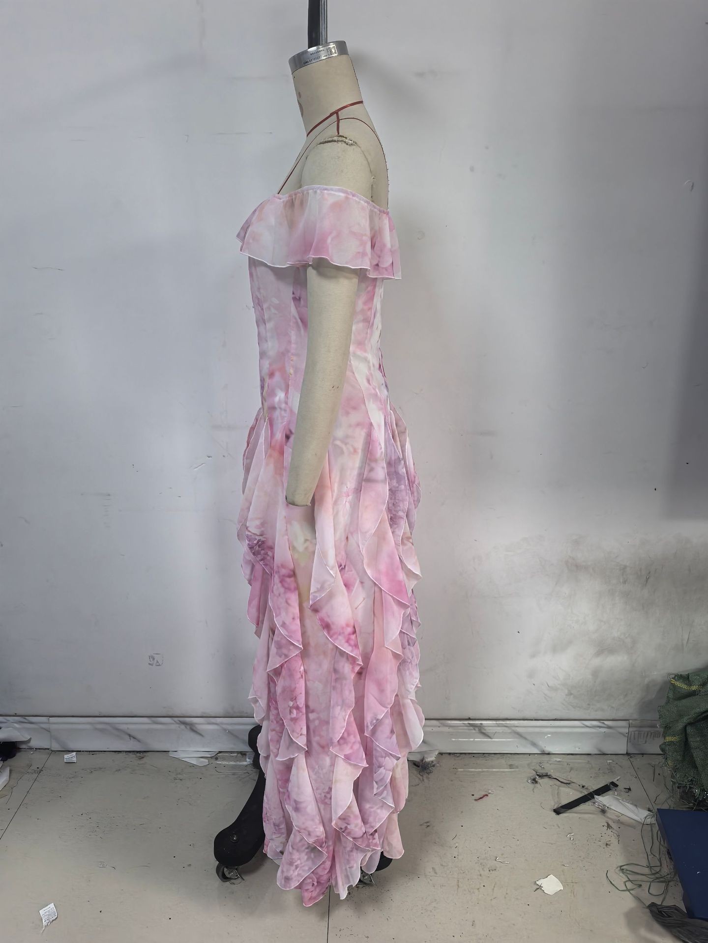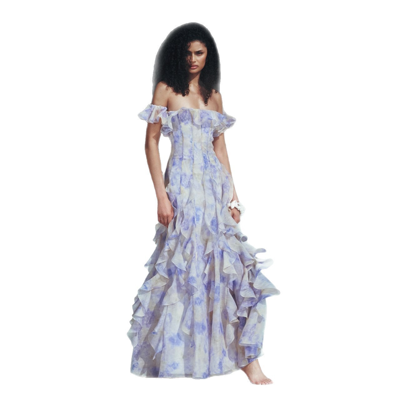 해변 리조트 스타일 서스펜더 스커트, 프렌치 러플 비치 드레스, 분위기 있는 롱 스커트, 우아한 요정 스타일