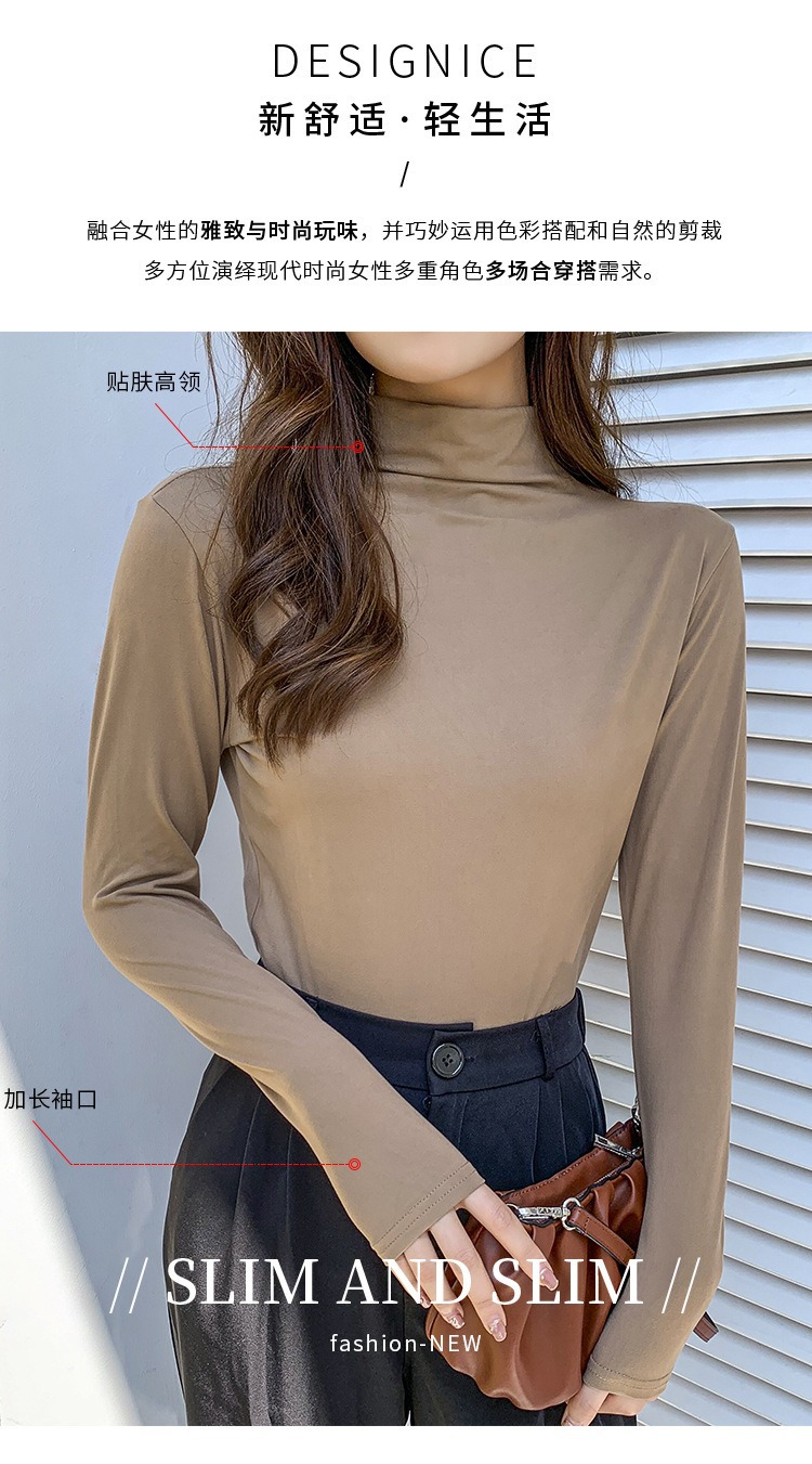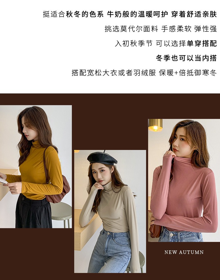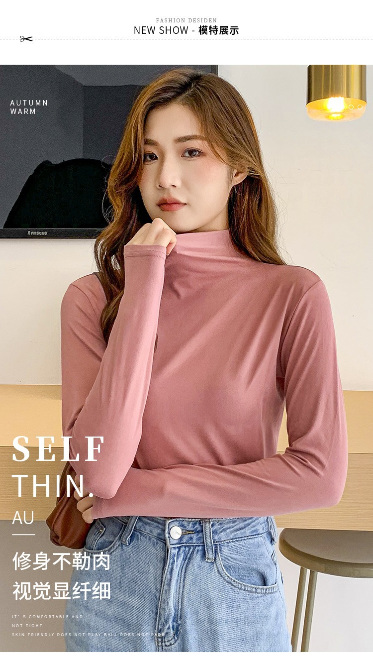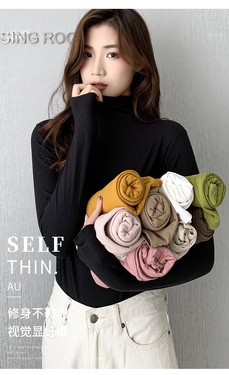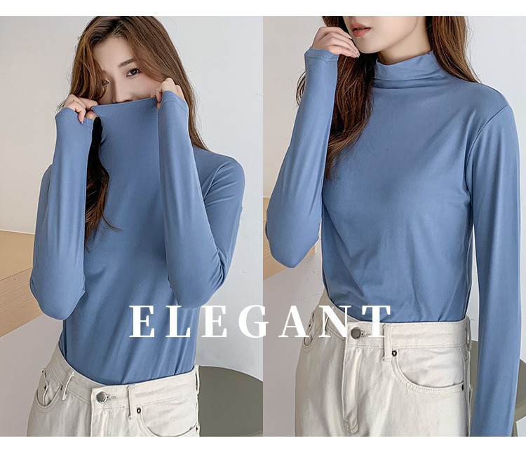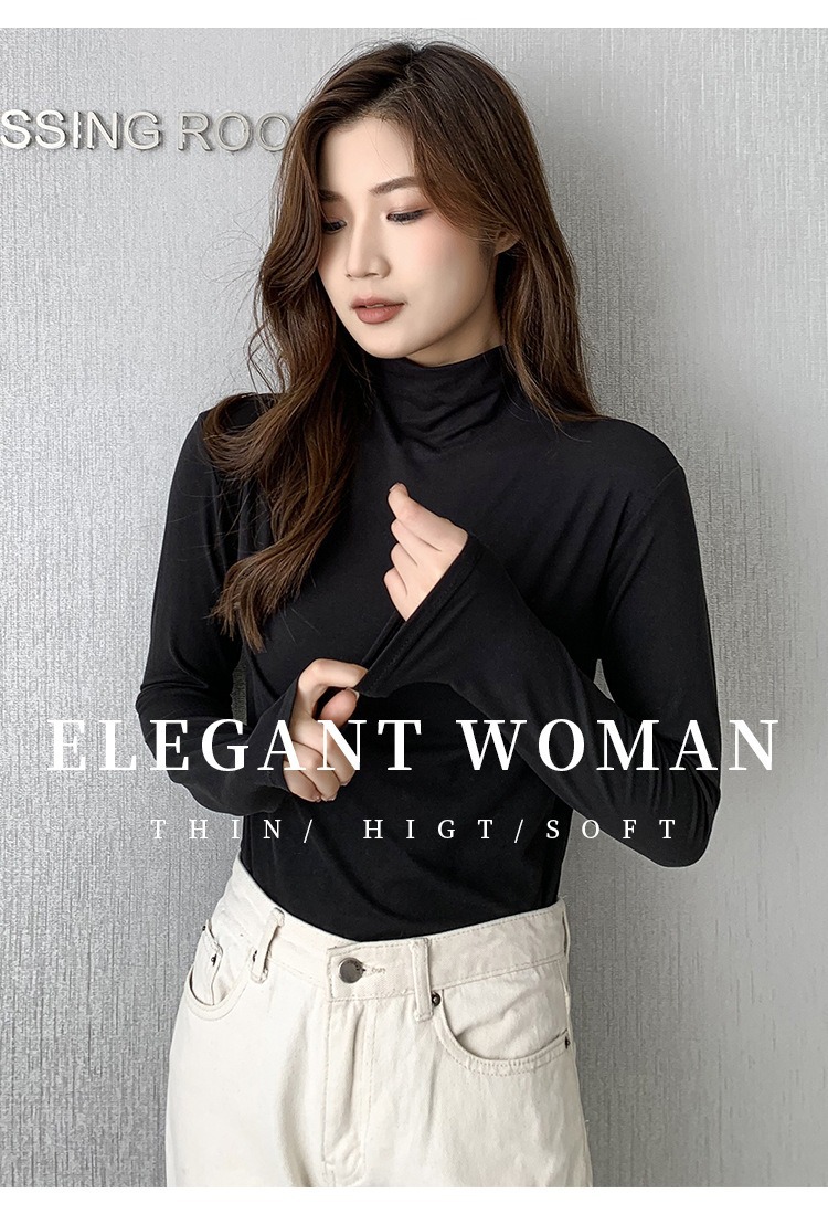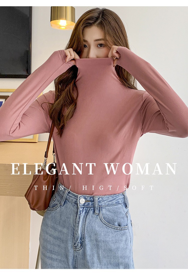 여성용 모달 고탄성 하프 하이 칼라 밑단 셔츠, 봄, 가을, 겨울, 슬림 마스크 긴팔 티셔츠, 얇은 상의