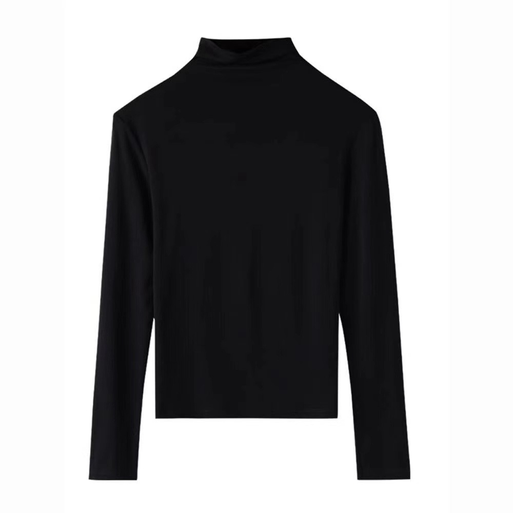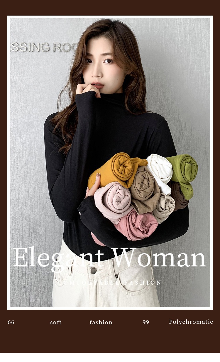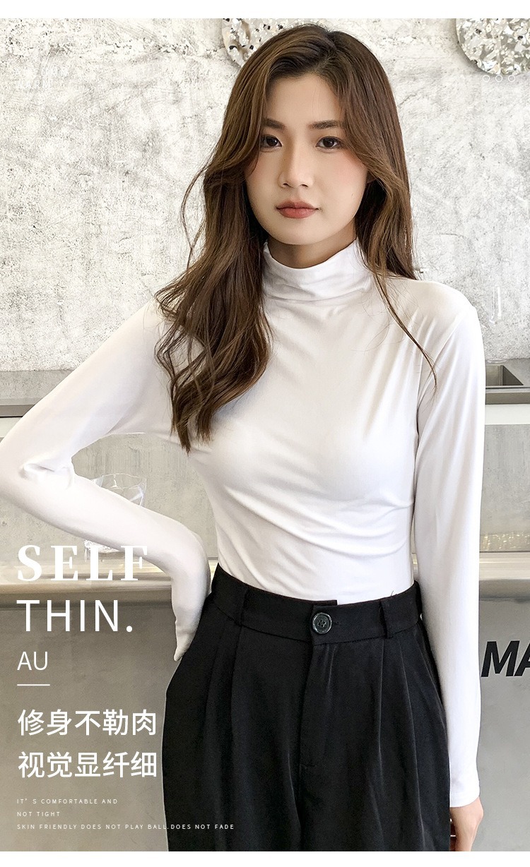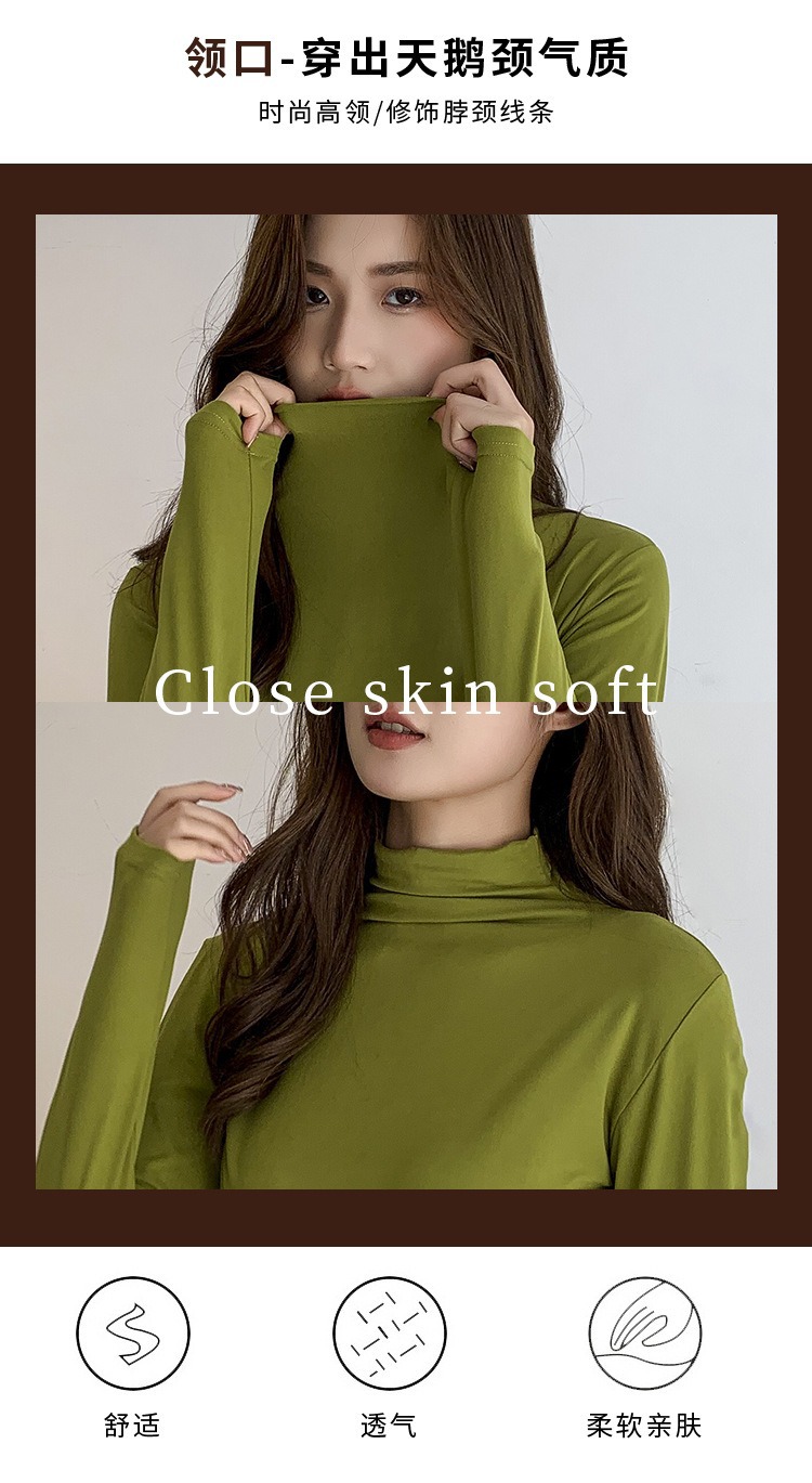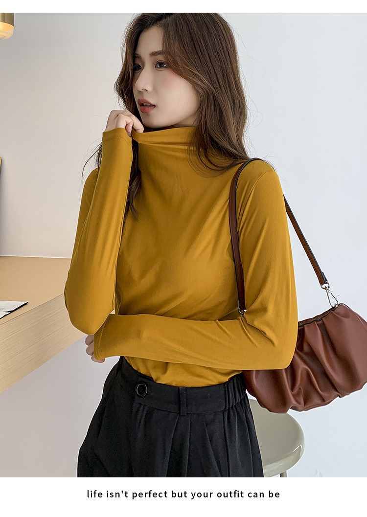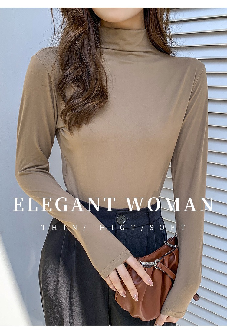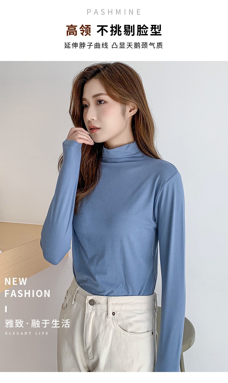 여성용 모달 고탄성 하프 하이 칼라 밑단 셔츠, 봄, 가을, 겨울, 슬림 마스크 긴팔 티셔츠, 얇은 상의