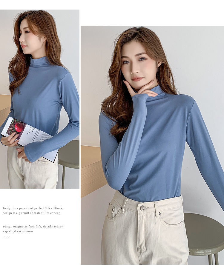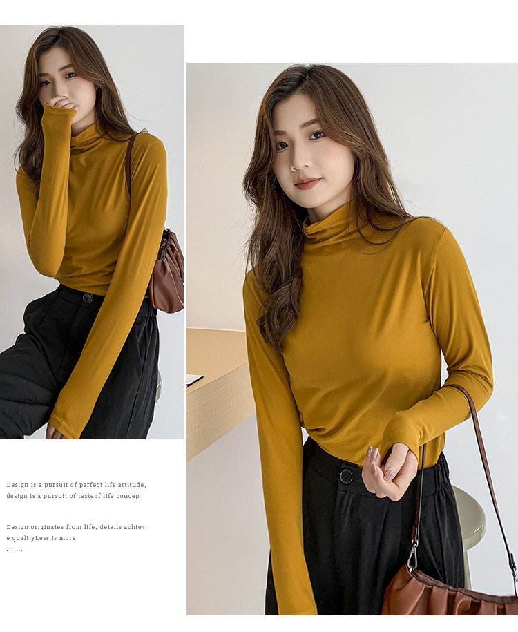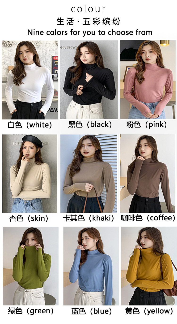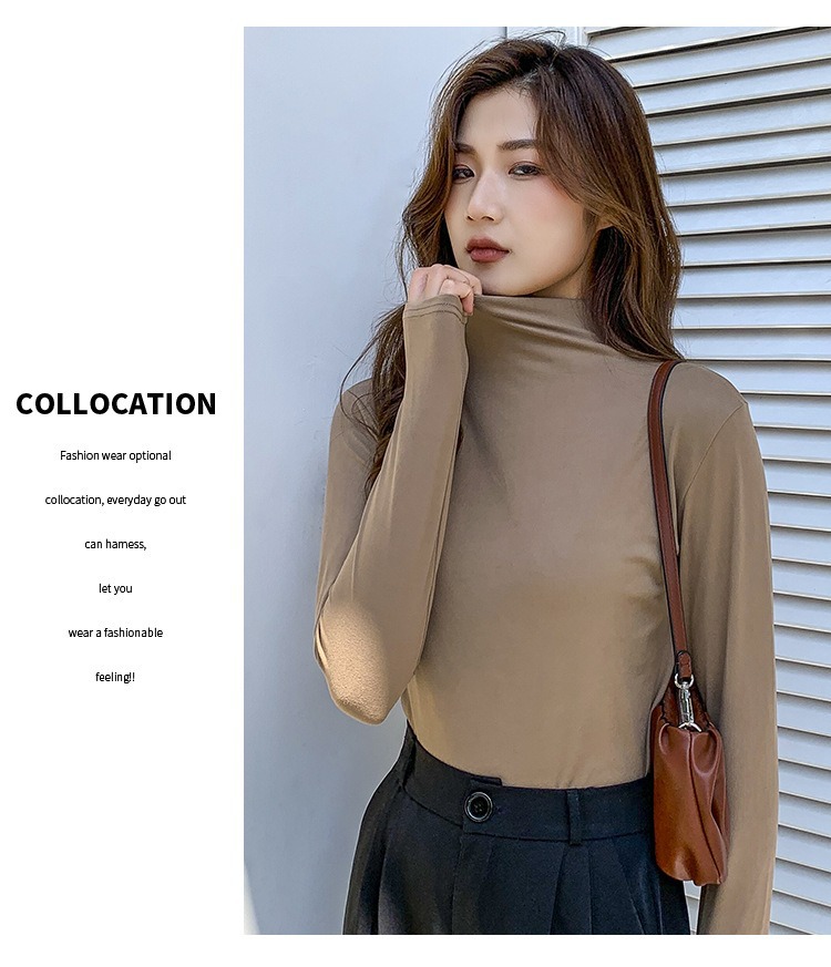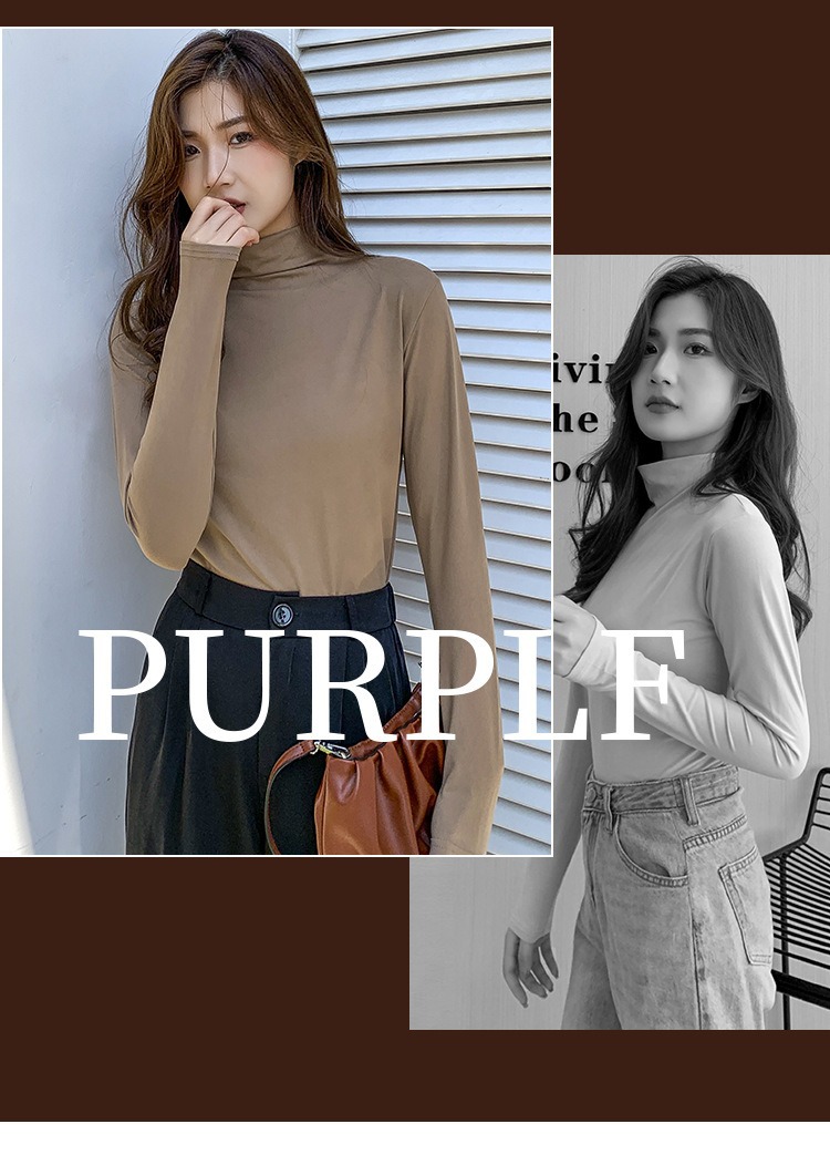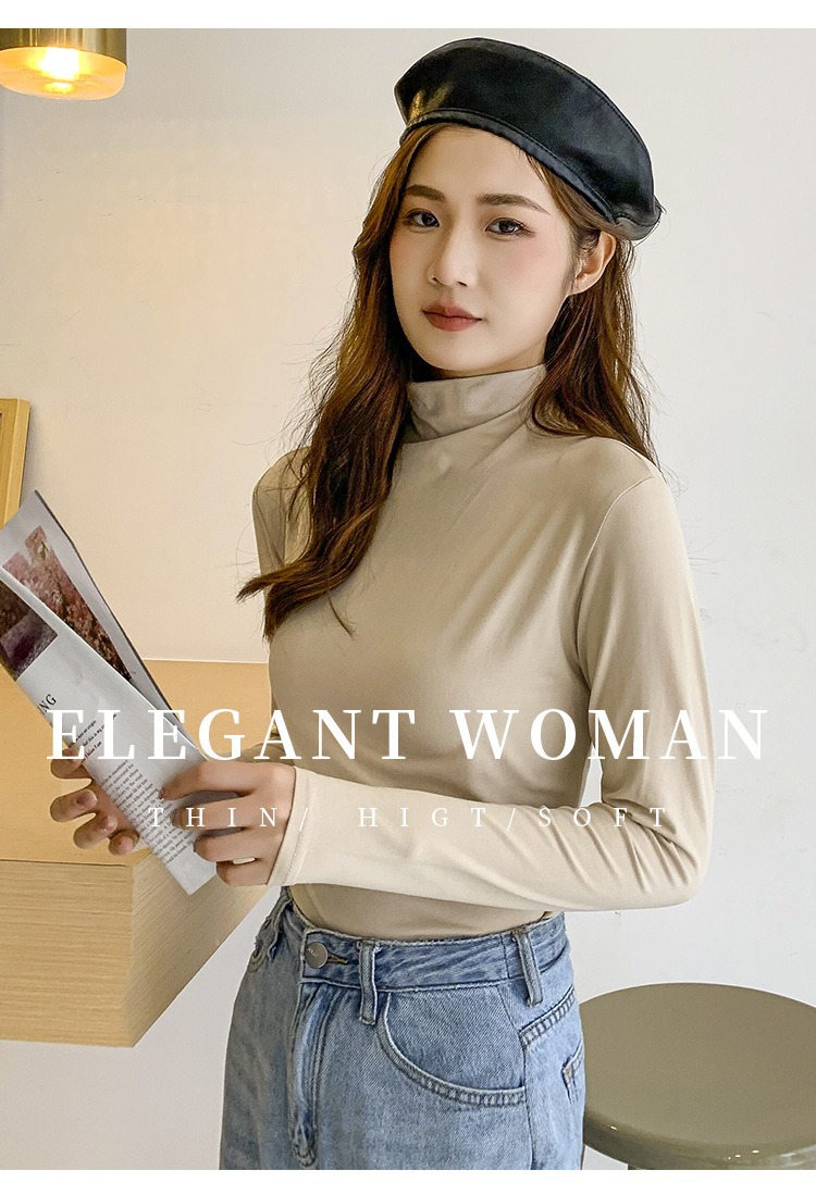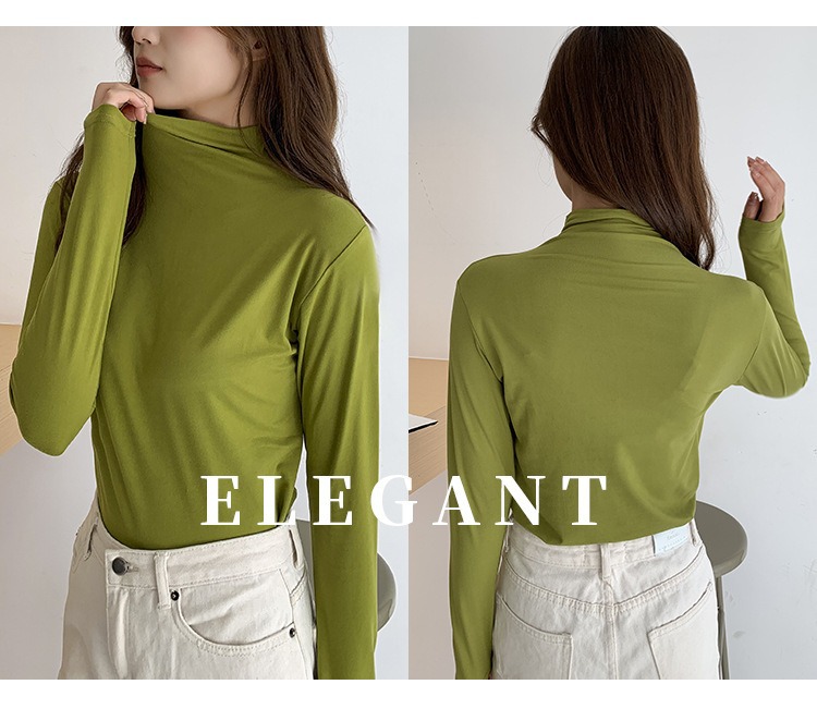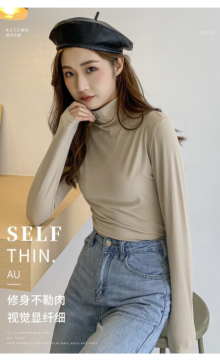 여성용 모달 고탄성 하프 하이 칼라 밑단 셔츠, 봄, 가을, 겨울, 슬림 마스크 긴팔 티셔츠, 얇은 상의