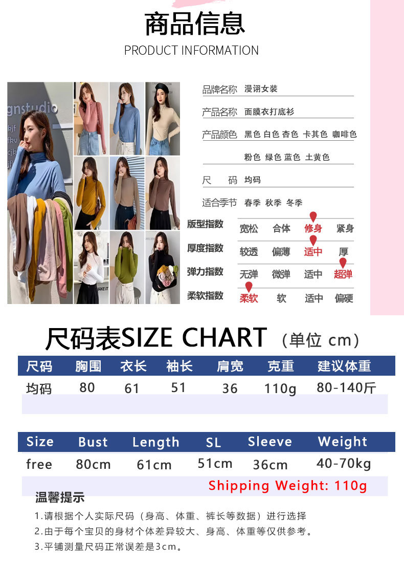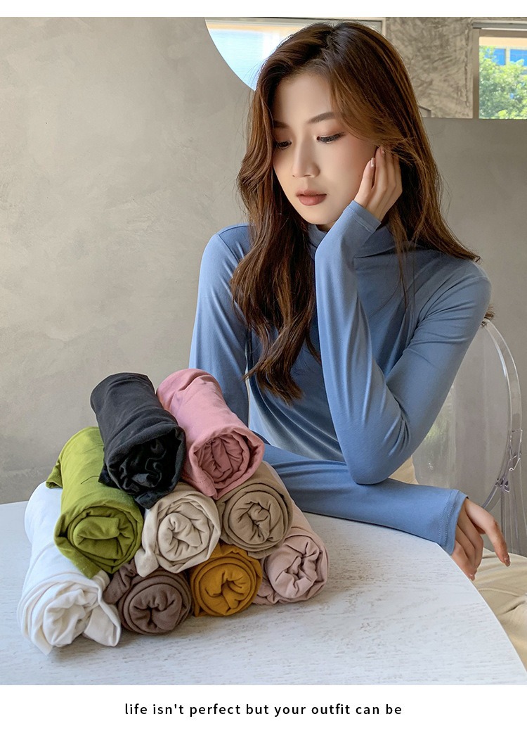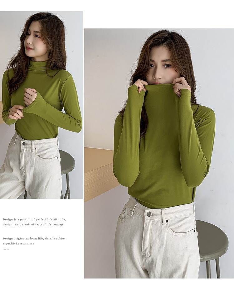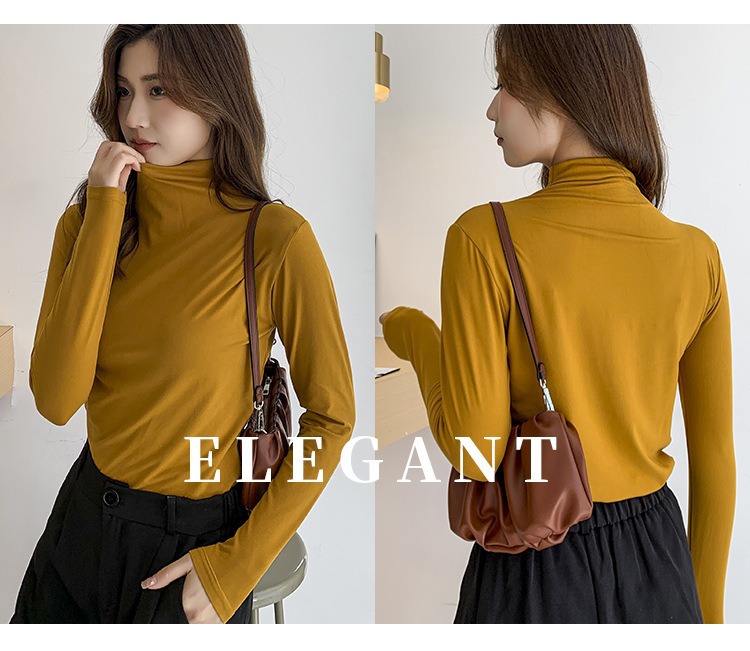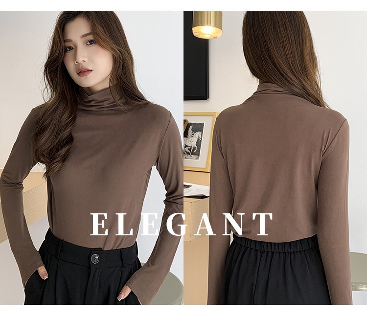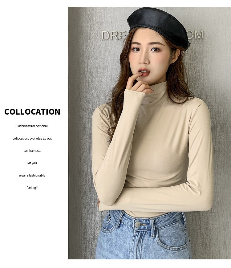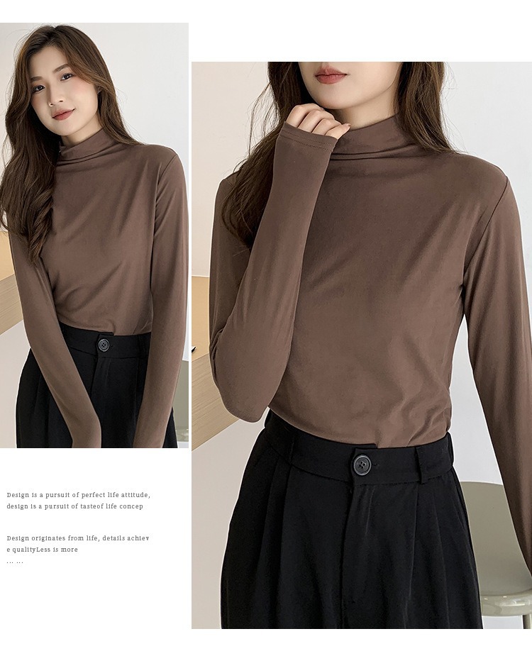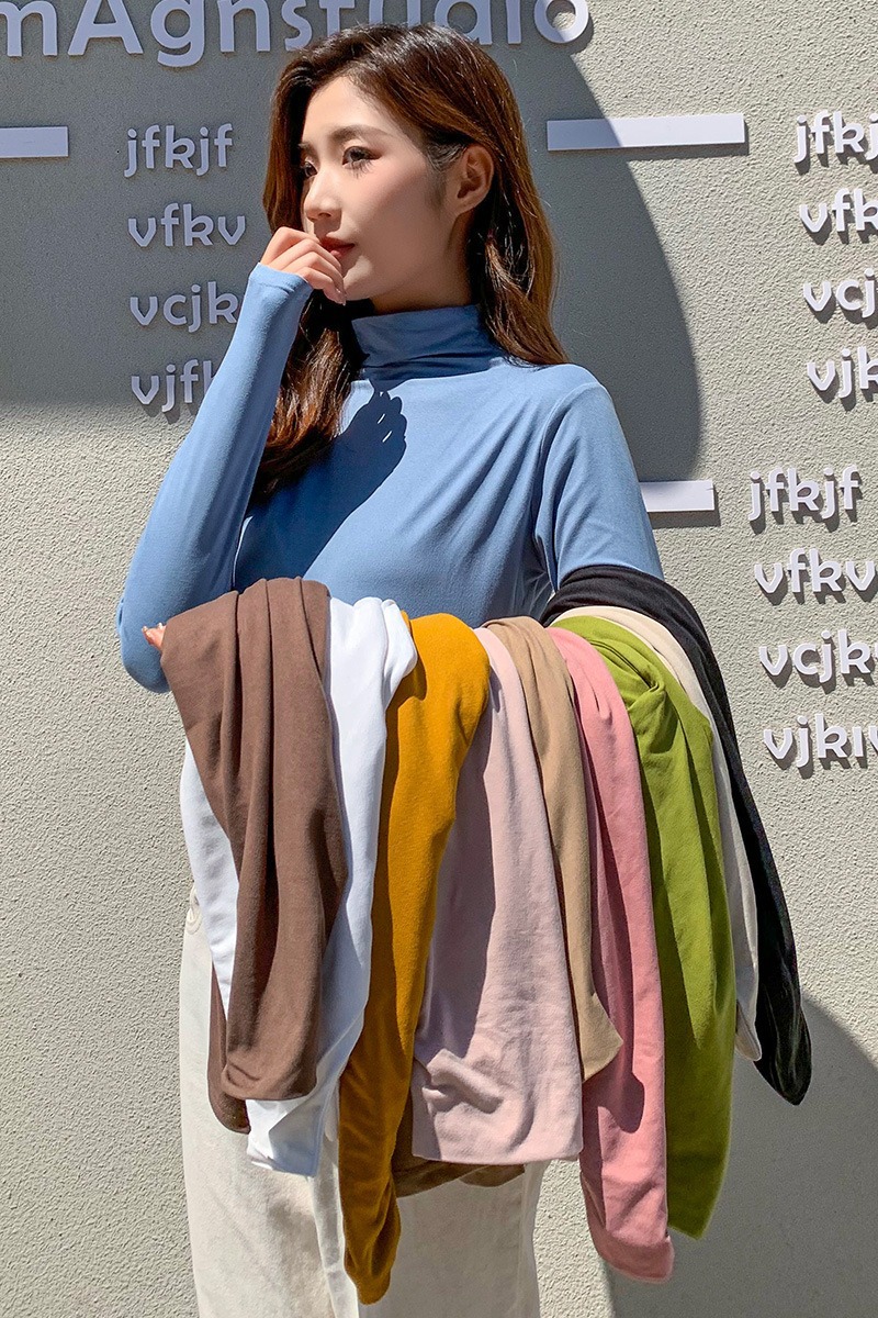 여성용 모달 고탄성 하프 하이 칼라 밑단 셔츠, 봄, 가을, 겨울, 슬림 마스크 긴팔 티셔츠, 얇은 상의