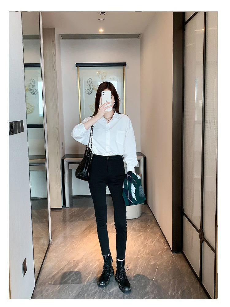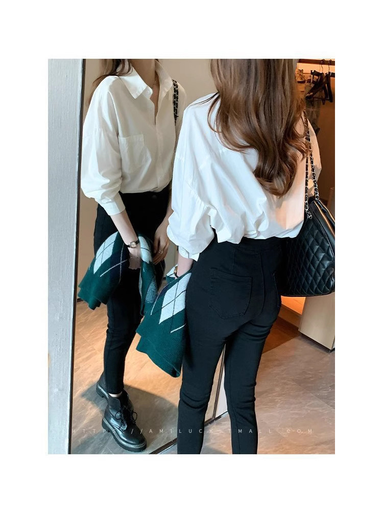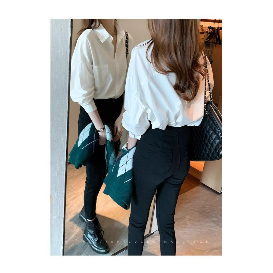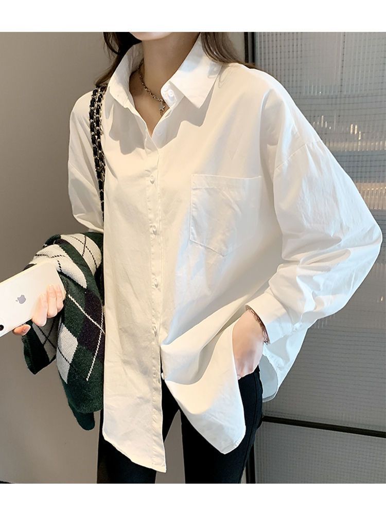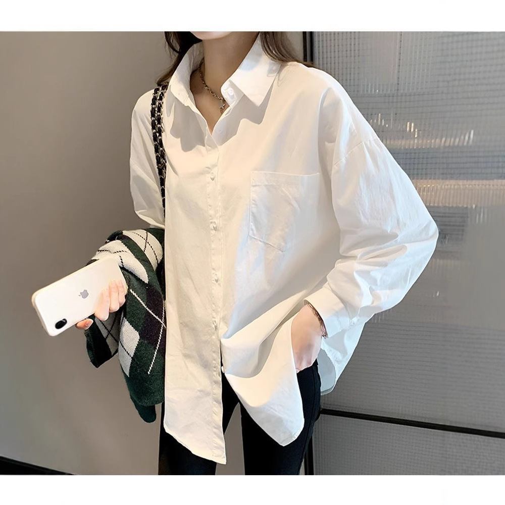 여성용 흰색 셔츠 봄, 가을, 여름 새로운 스타일 하이 엔드 jk 유니폼 라펠 다용도 탑 전문 긴팔 셔츠 배치