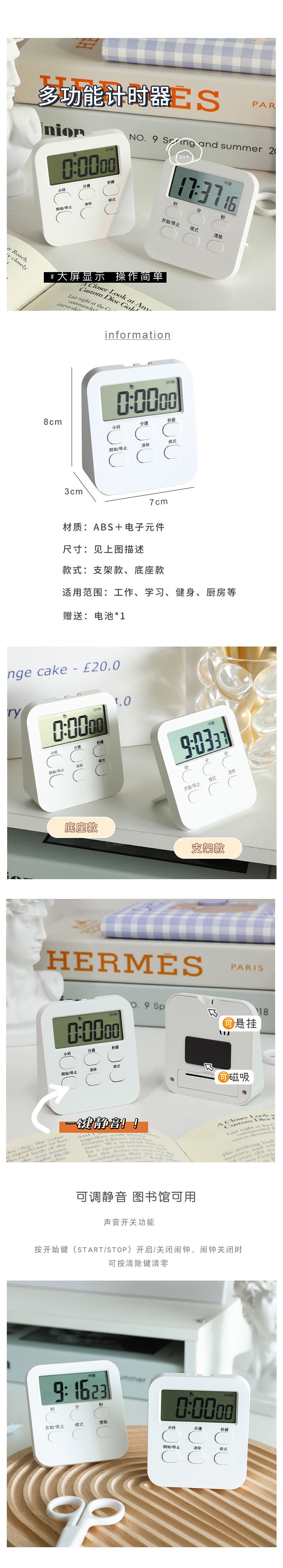 스톱워치 기능 약간의 타이머 학생 학습 자기 훈련 타이머 데스크탑 숙제 시간 관리 알림