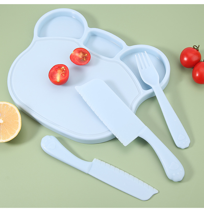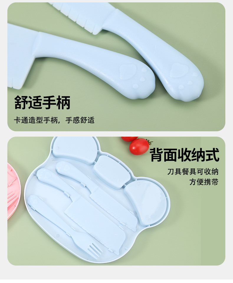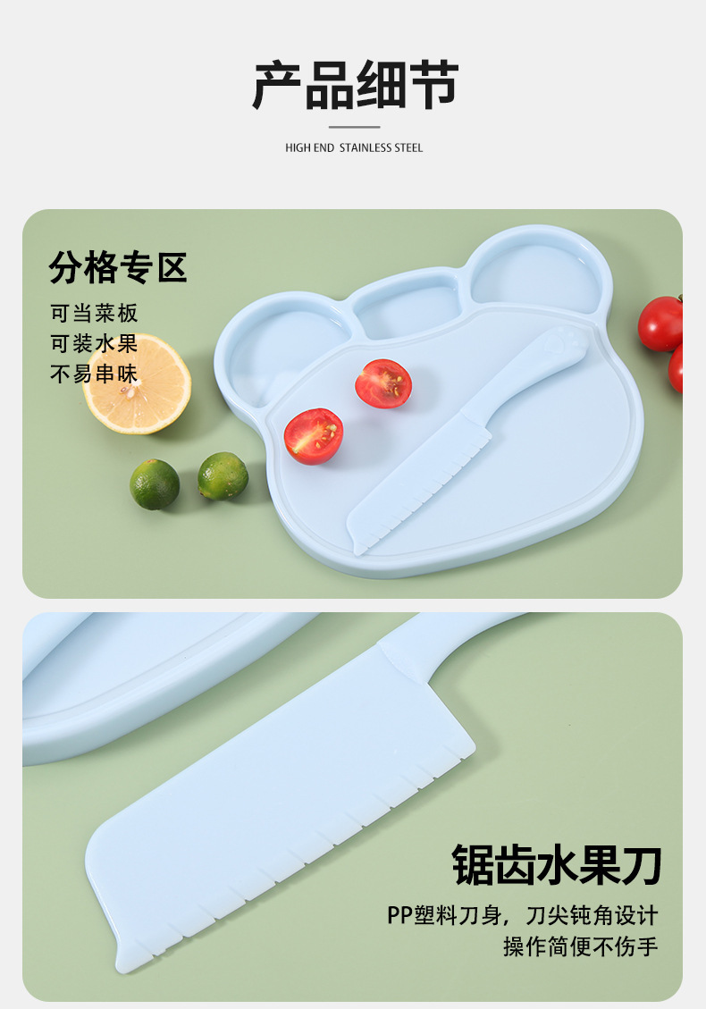 어린이 과일칼, 플라스틱 부엌칼, 손이 쉽게 다치지 않는 유치원 조기 교육 수납형 안전칼 도마 세트