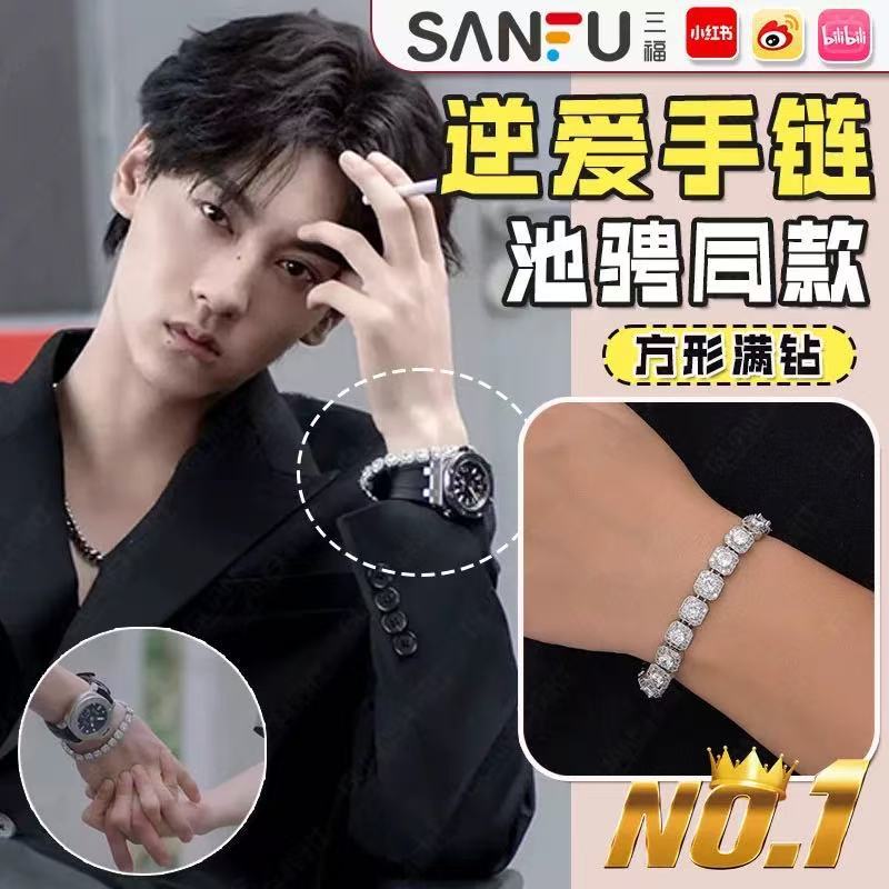 리버스 러브 팔찌, 치청과 같은 스타일의 쿠바 팔찌, 흑설탕 체인, 지르콘 테니스 팔찌, 플립 남성 트렌디 팔찌