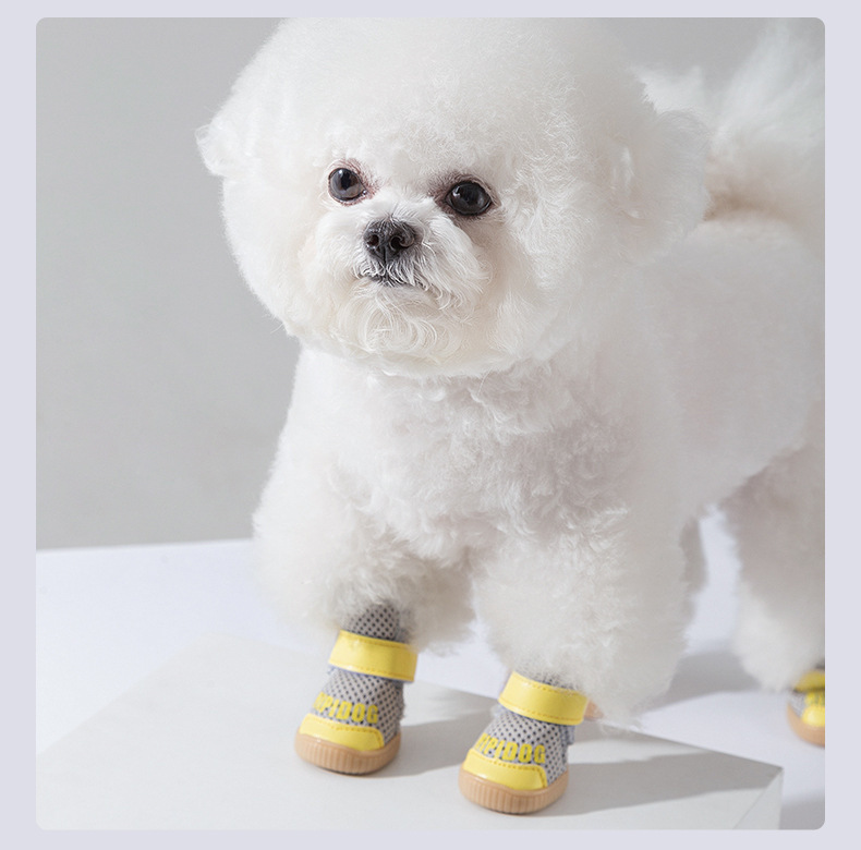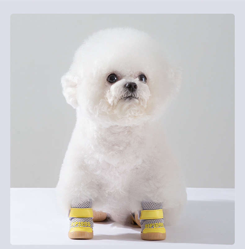 사계절용 강아지 신발, 패셔너블하고 통기성이 뛰어난 메쉬 애완동물 신발, 미끄럼 방지 힘줄 밑창, 내마모성 및 발 보호용 테디 비숑 신발