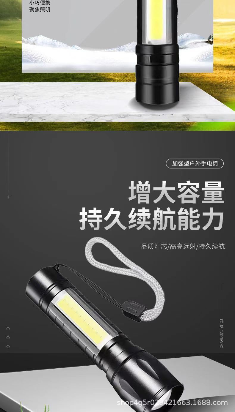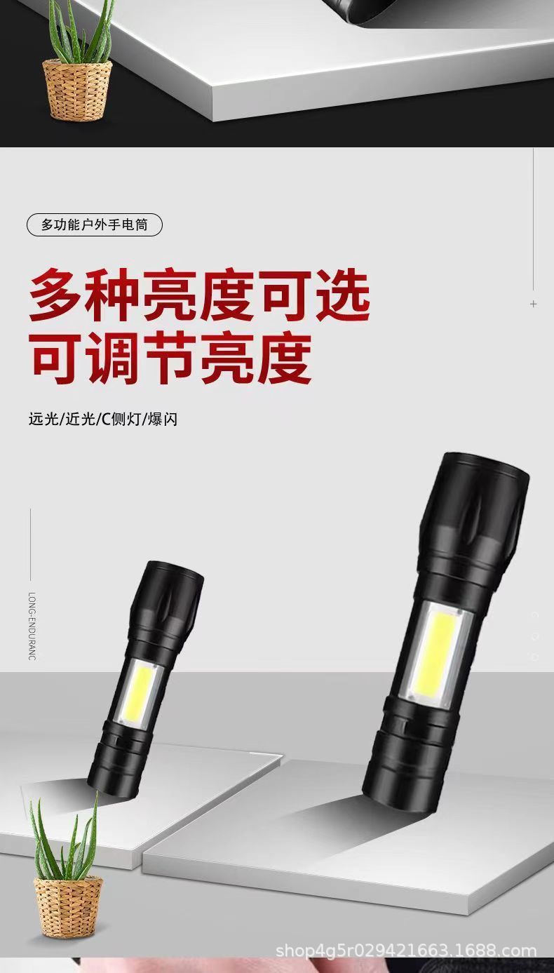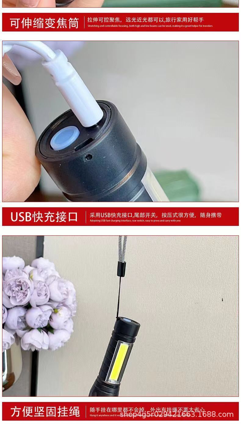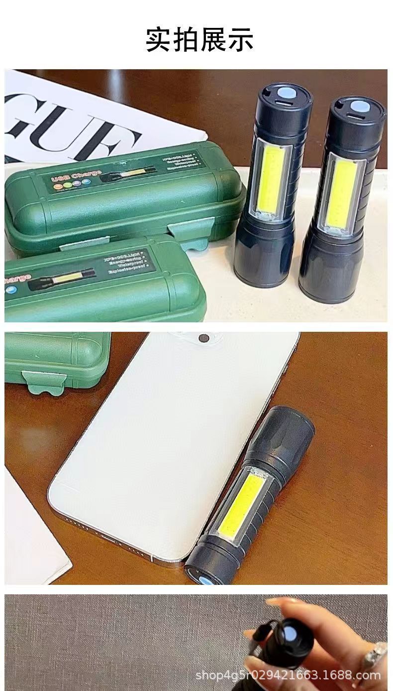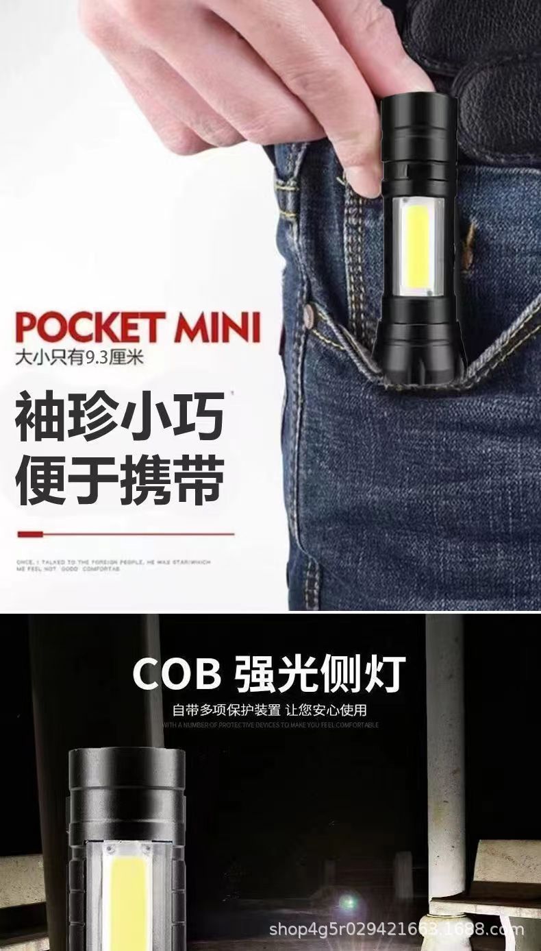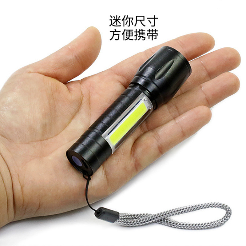 강한 빛 미니 손전등 cob 측면 조명 가정용 휴대용 텔레스코픽 줌 작은 손전등 야외 충전식 led 손전등