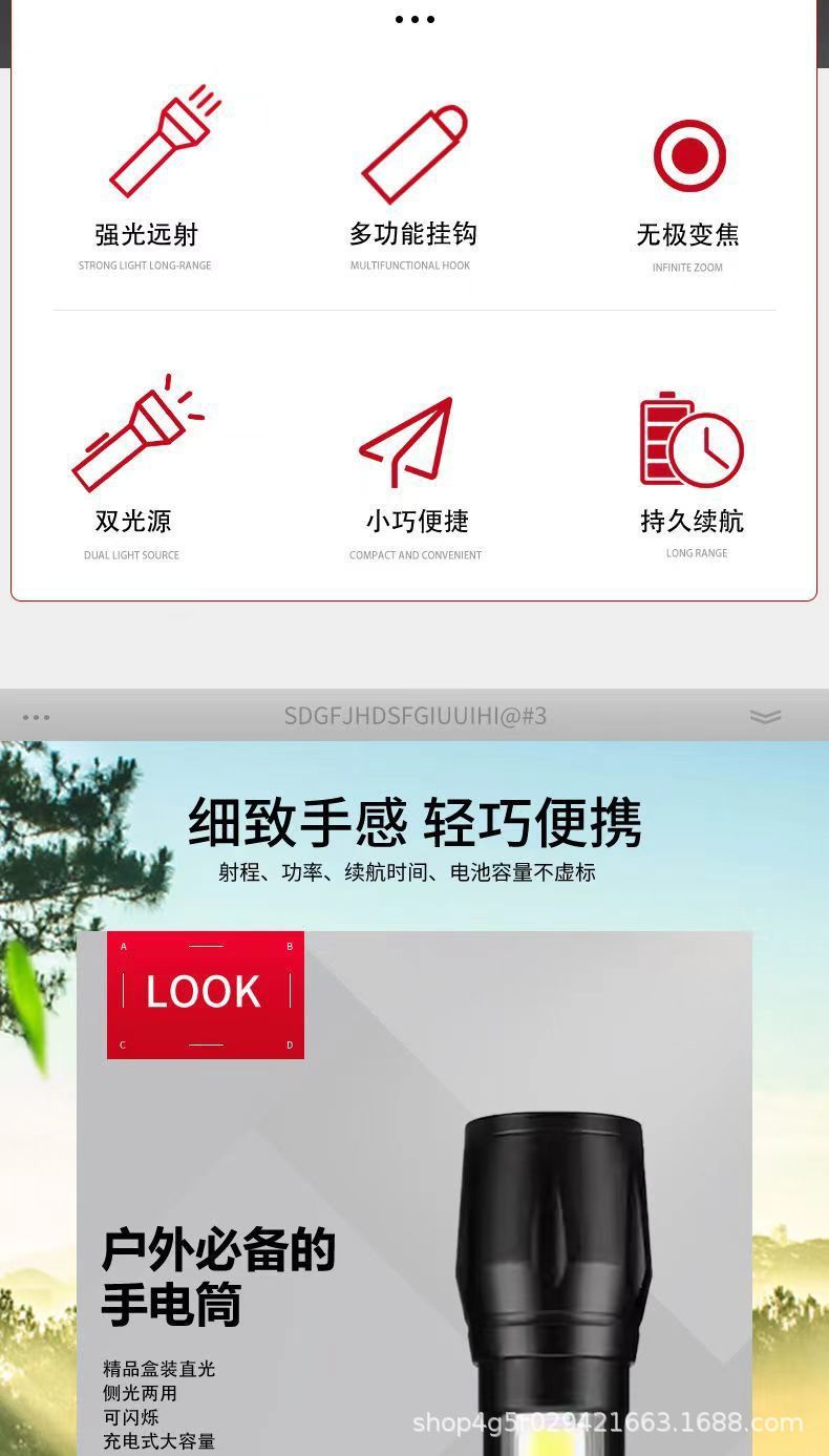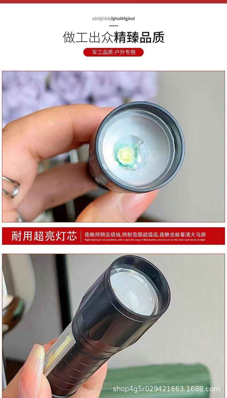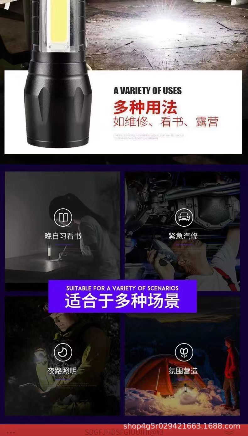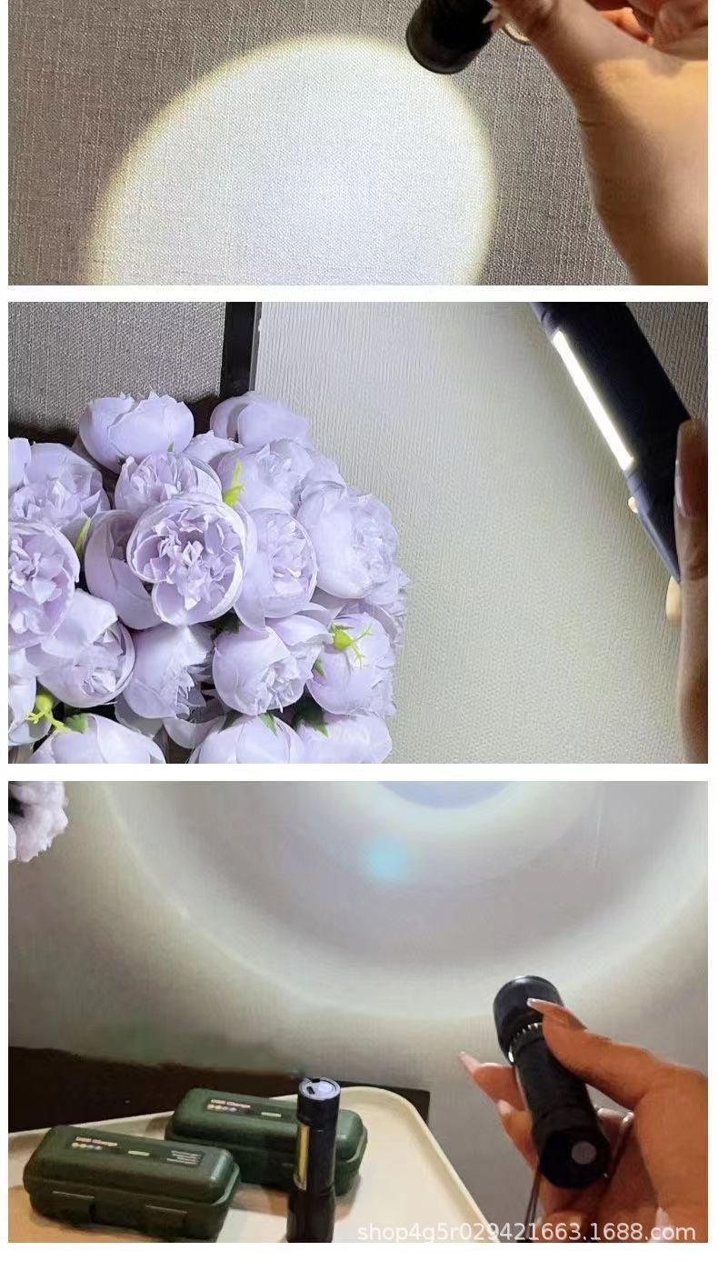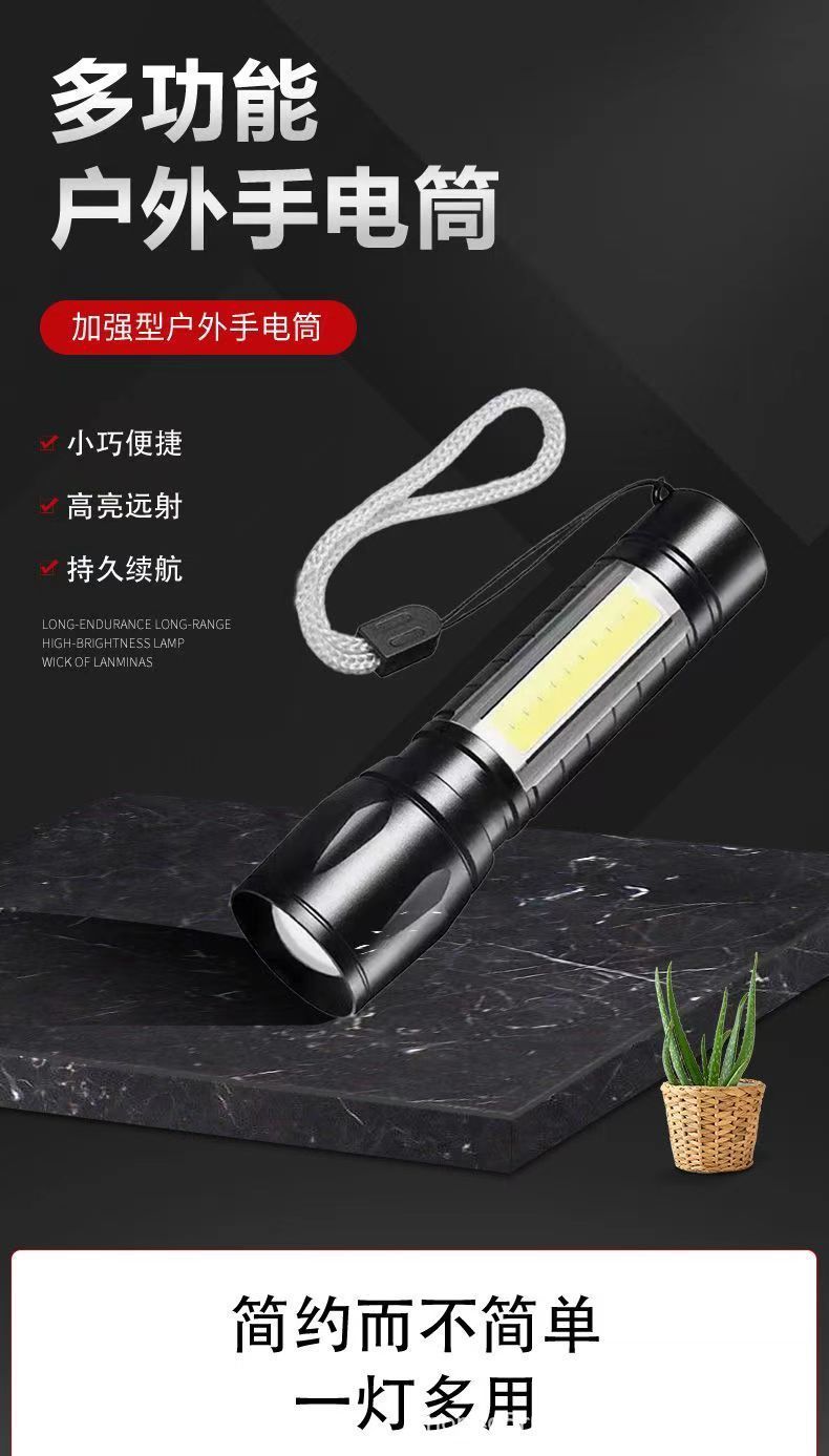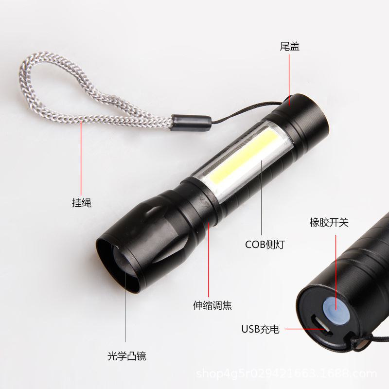 강한 빛 미니 손전등 cob 측면 조명 가정용 휴대용 텔레스코픽 줌 작은 손전등 야외 충전식 led 손전등