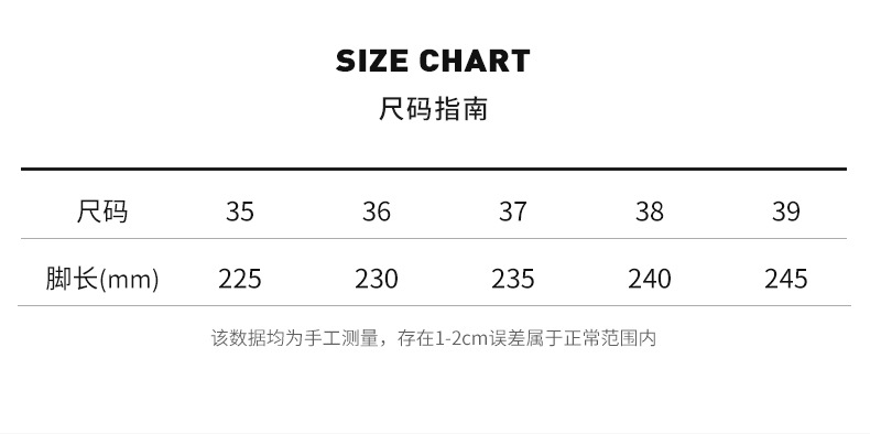 | 包装尺寸 | 34.5cmX20cmX12cm(包装) | 重 量 | 约840g/双 | |