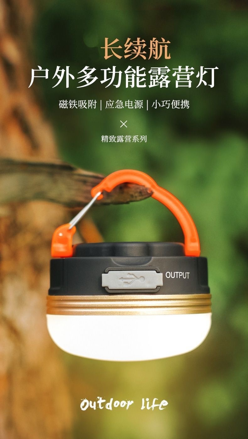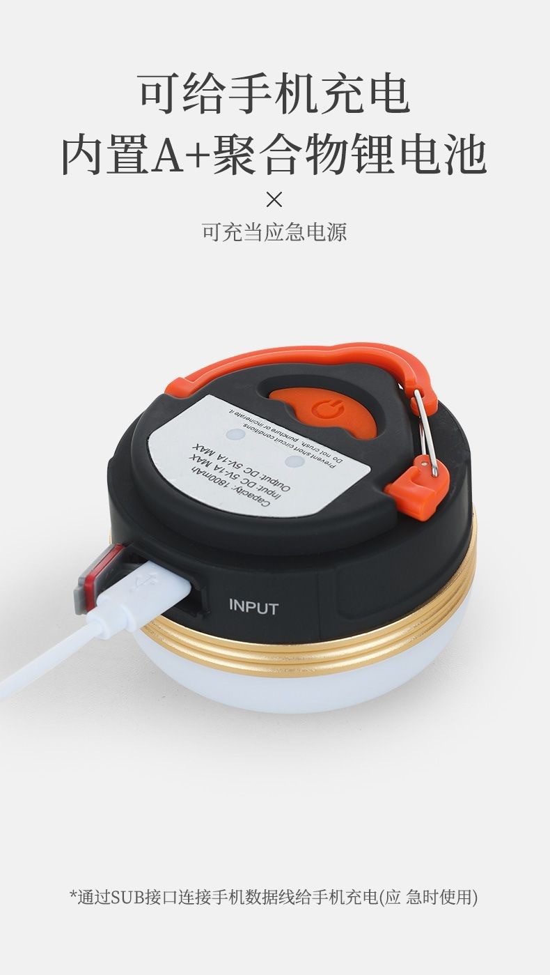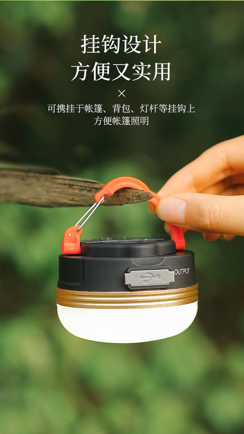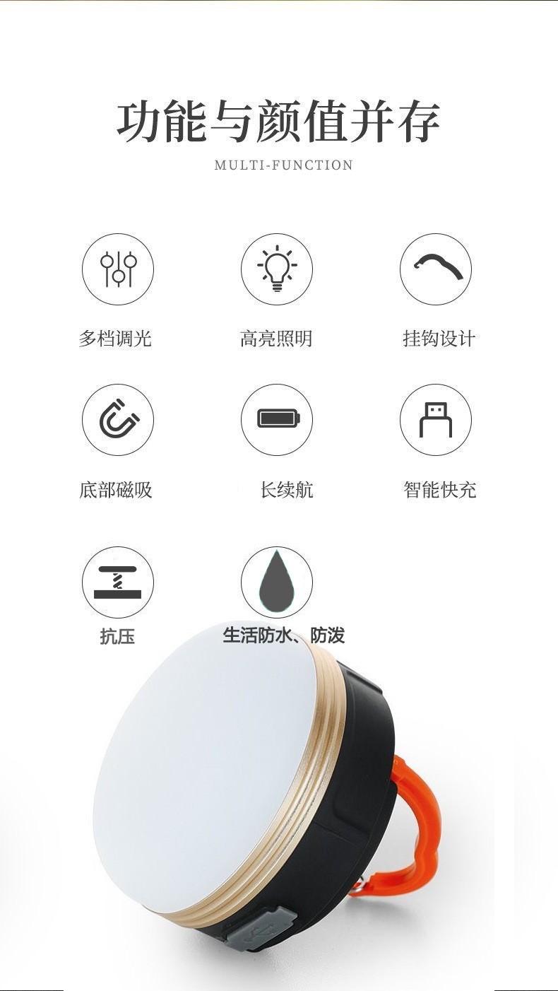 작은 LED 충전식 밝은 초고휘도 손전등 야외 다기능 전원 은행 자기 흡입 교수형 캠핑 텐트 라이트
