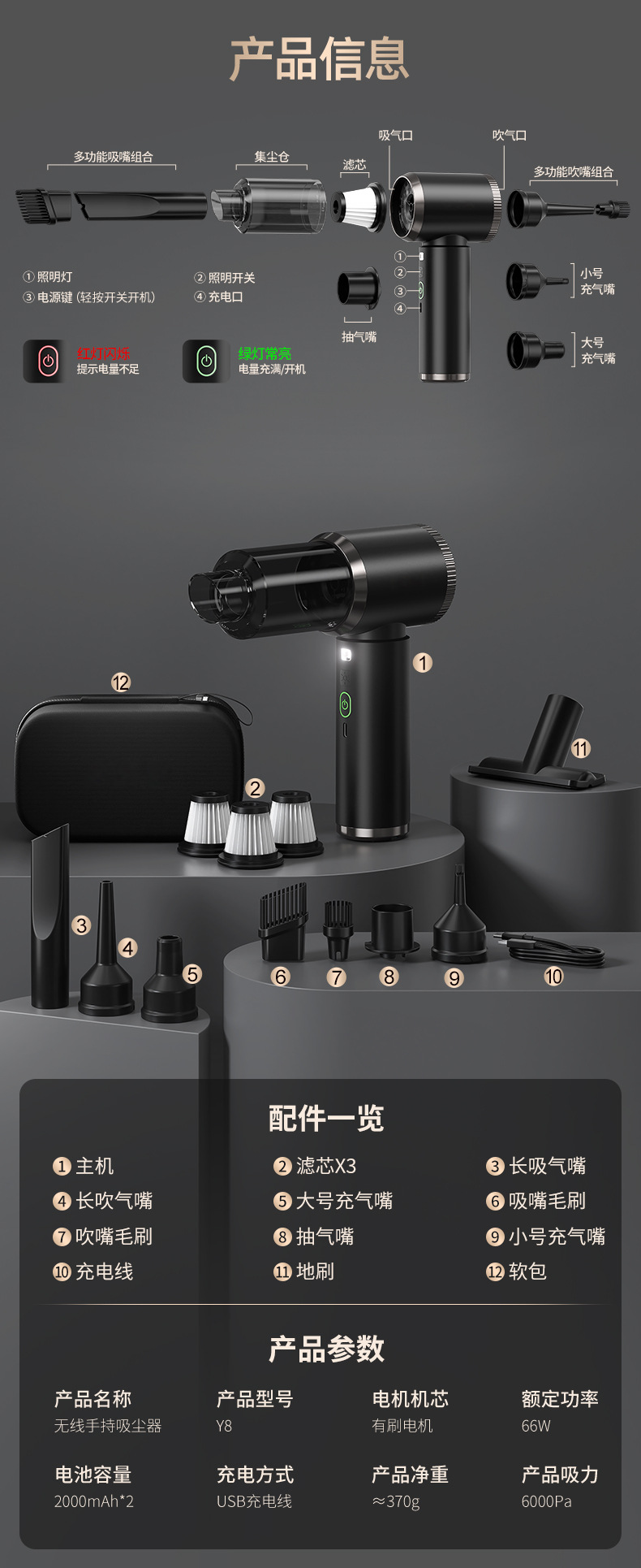 Y8 크로스보더 버전 6000Pa - 원터치 조명