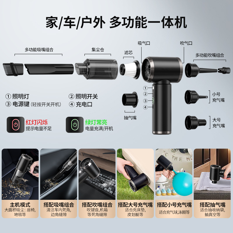 국경 간 자동차 진공 청소기 초강력 흡입 무선 휴대용 자동차 진공 청소기 고출력 송풍 및 흡입 이중 목적