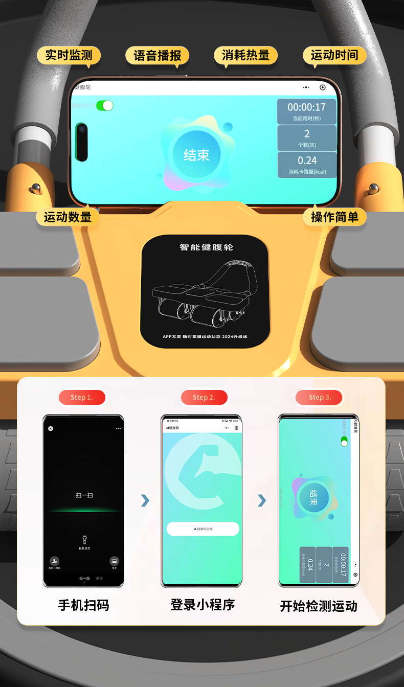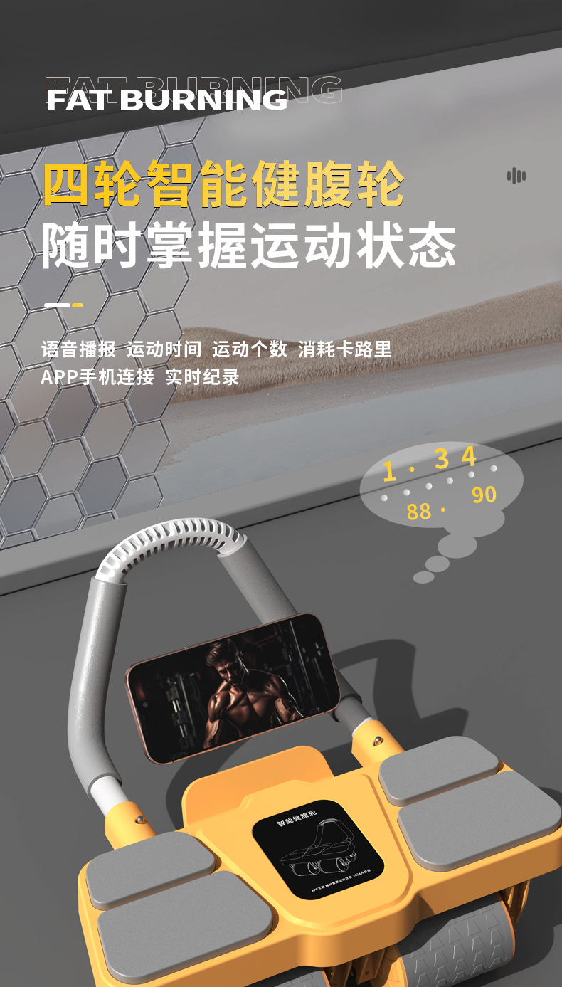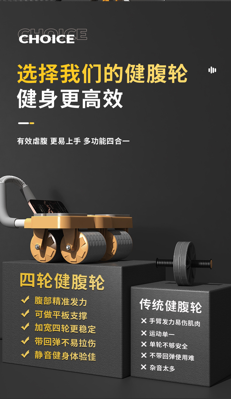 새로운 4륜 복근 훈련기, 자동 리바운드 기능이 있는 남녀공용 가정용 복근 운동기구