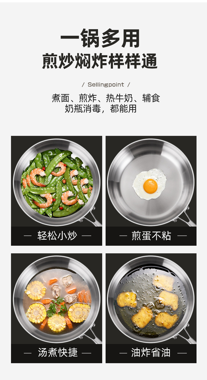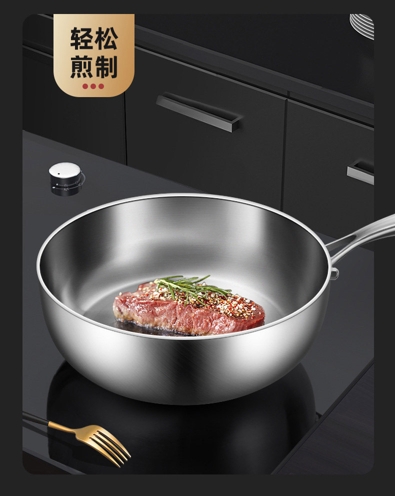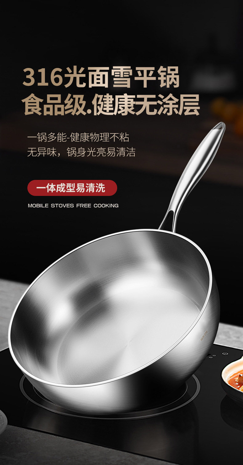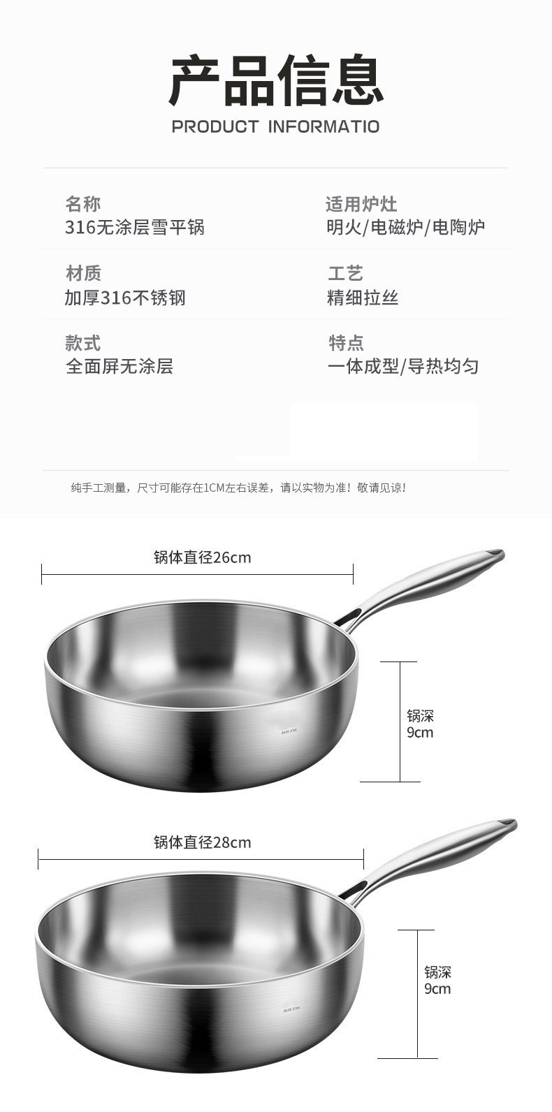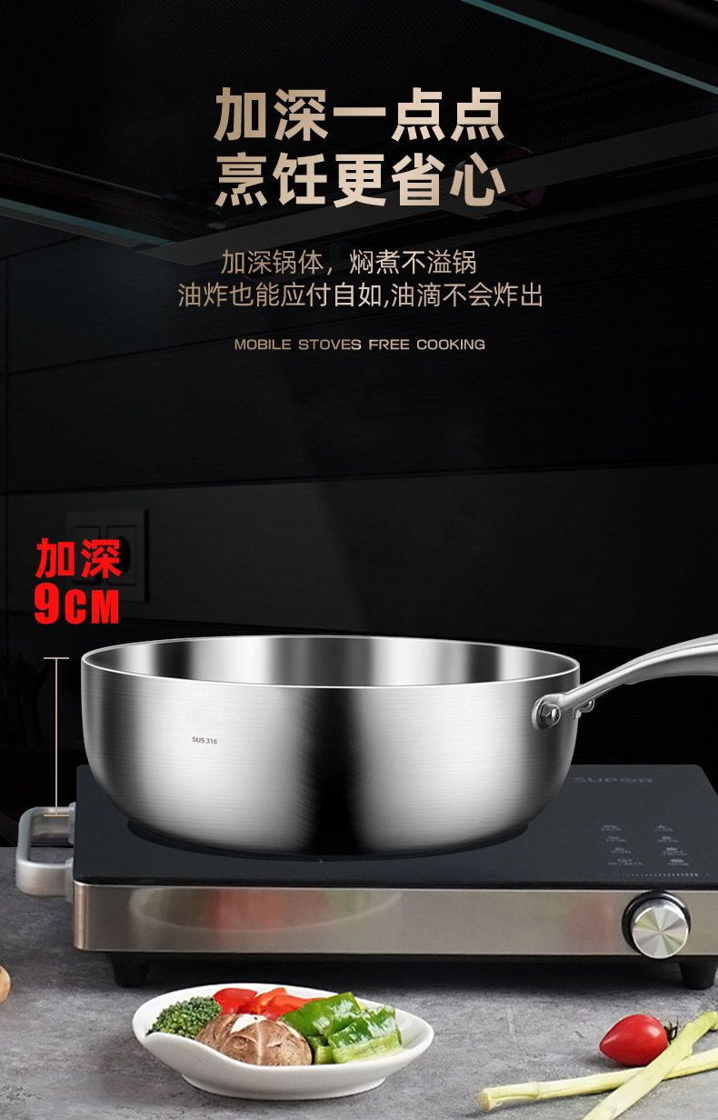 316 식품 등급 스테인리스 스틸 프라이팬, 깊은형 무코팅 소형 프라이팬, 가정용 인덕션 쿠커