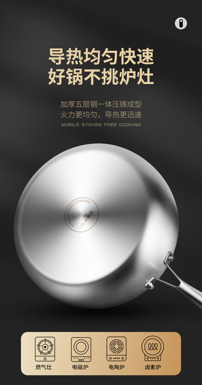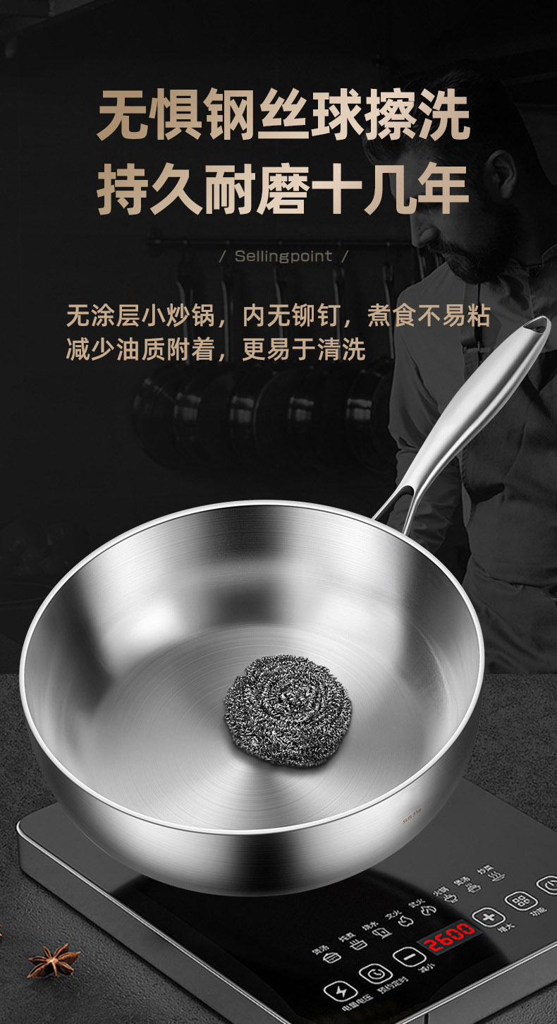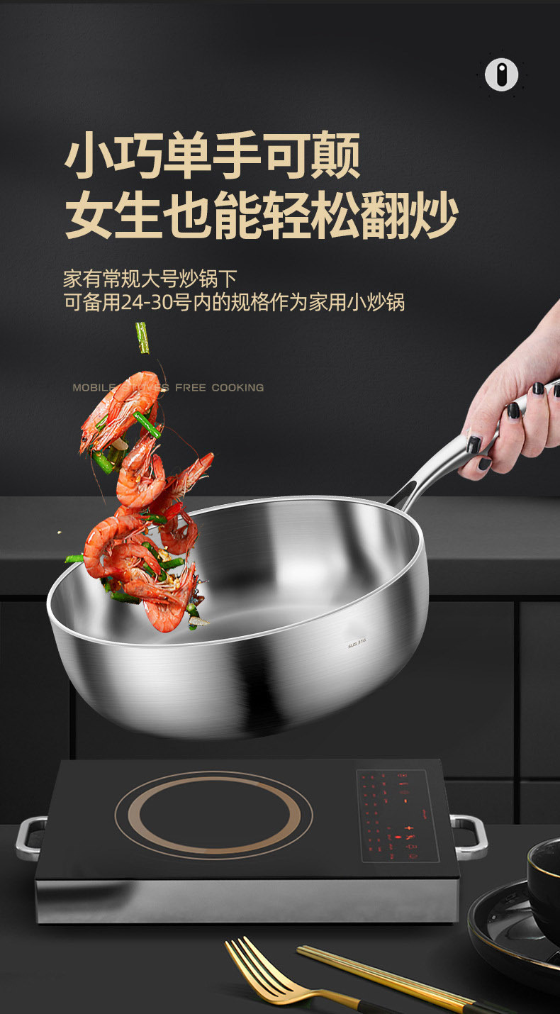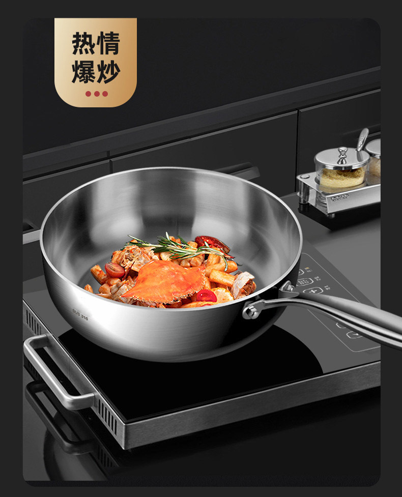316 식품 등급 스테인리스 스틸 프라이팬, 깊은형 무코팅 소형 프라이팬, 가정용 인덕션 쿠커
