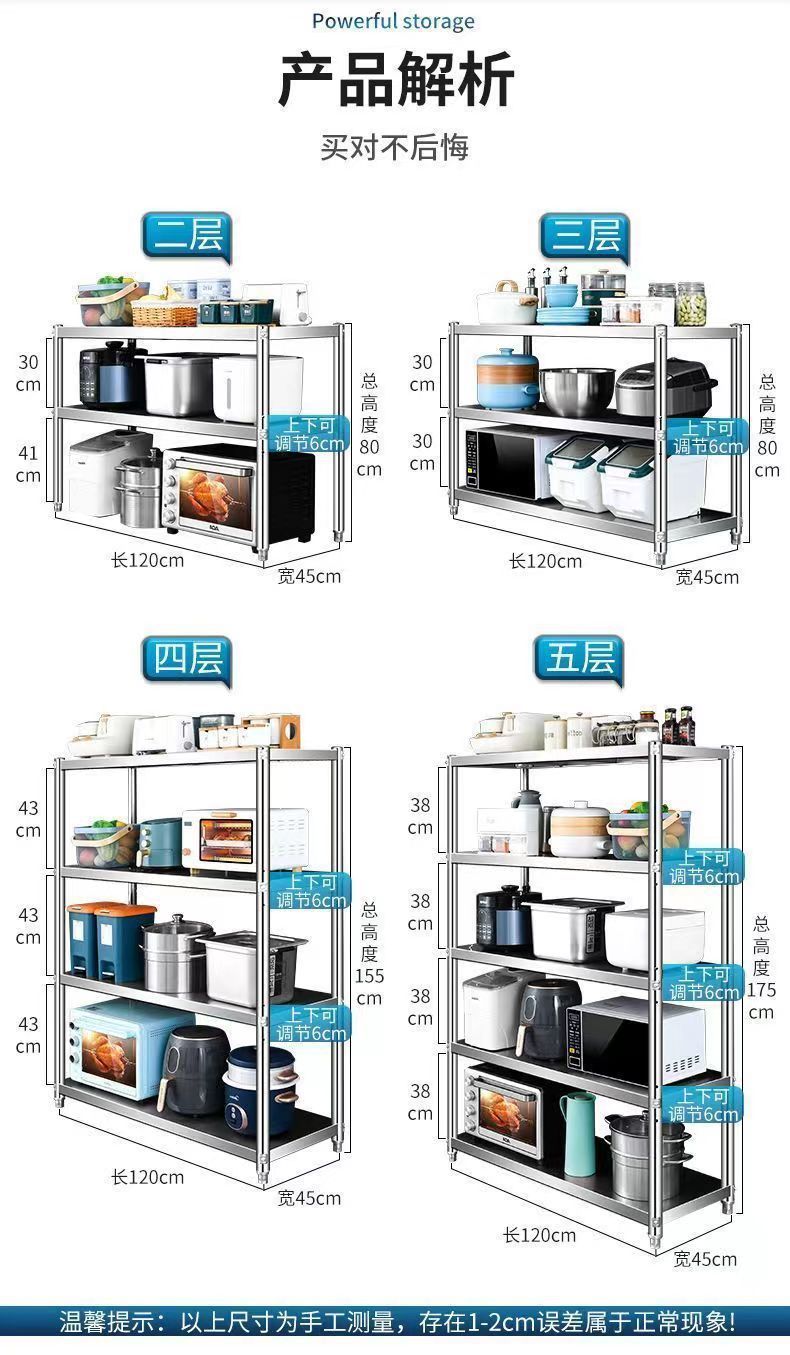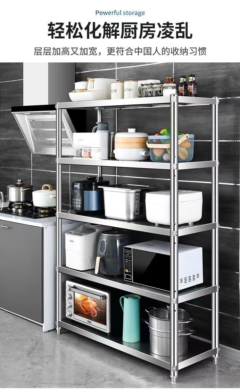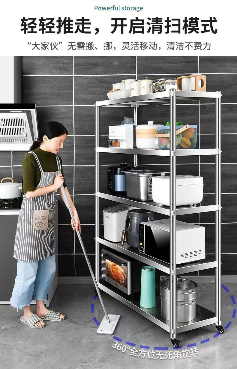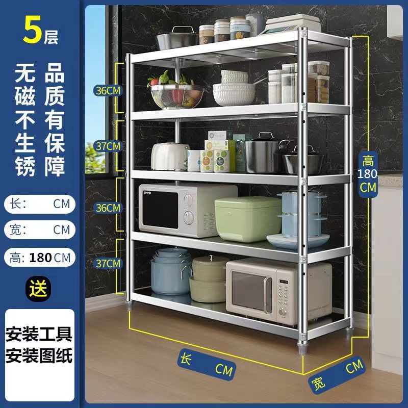 스테인레스 스틸 다층 선반 5층 수납 선반 주방 선반 전자 레인지 선반 바닥에서 천장까지 다기능 수납 선반 4층