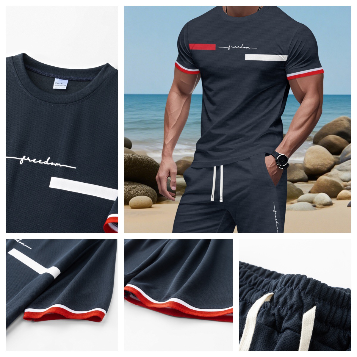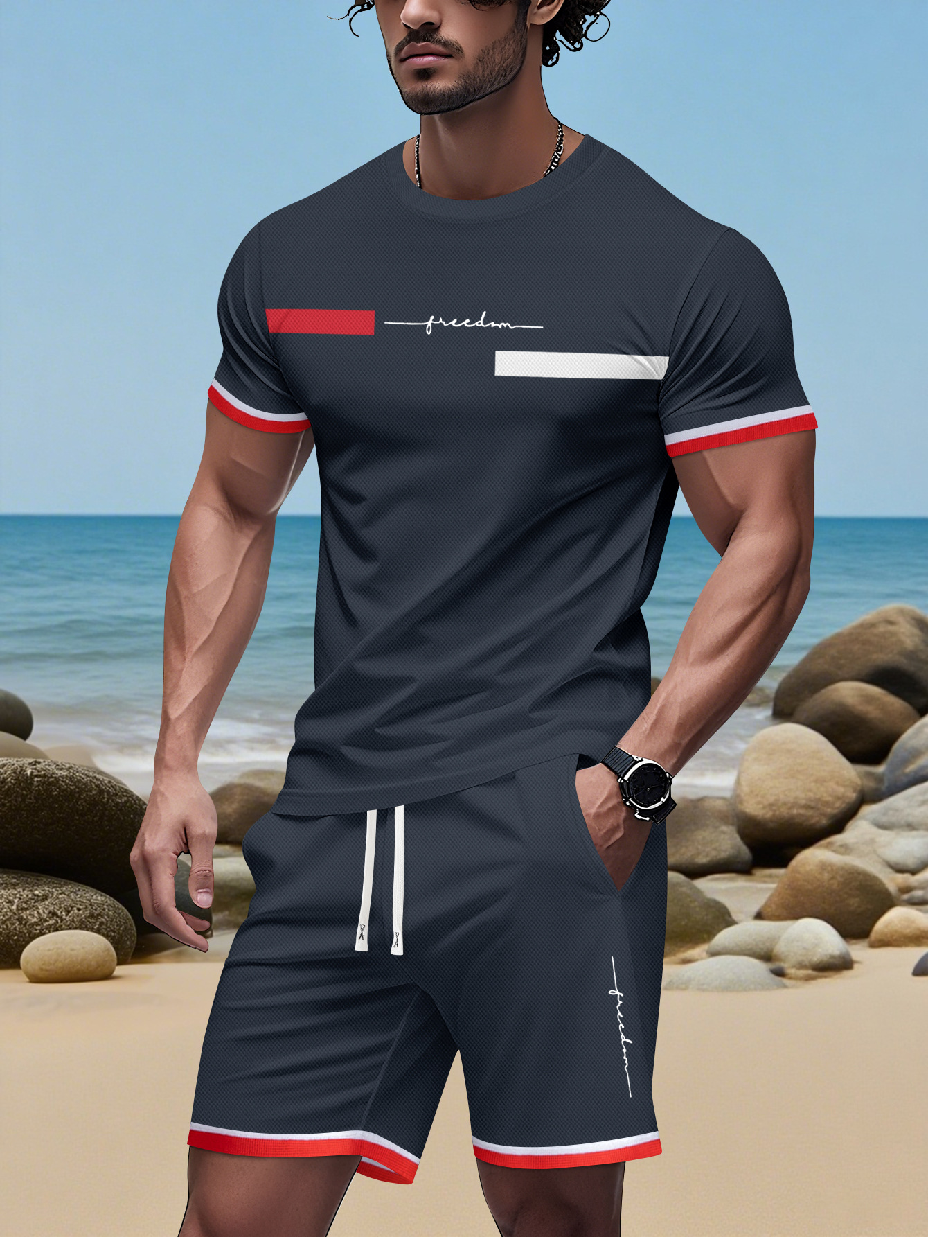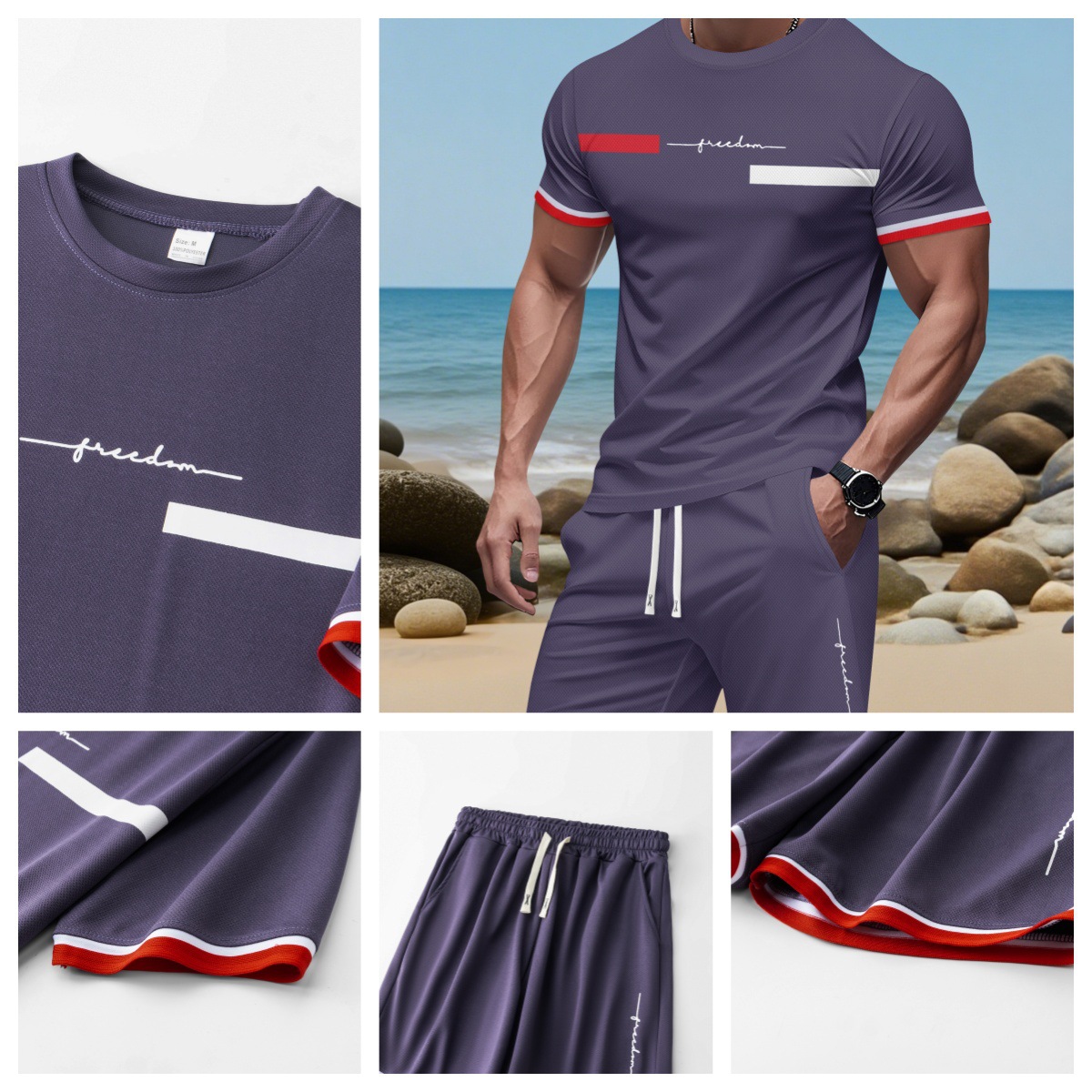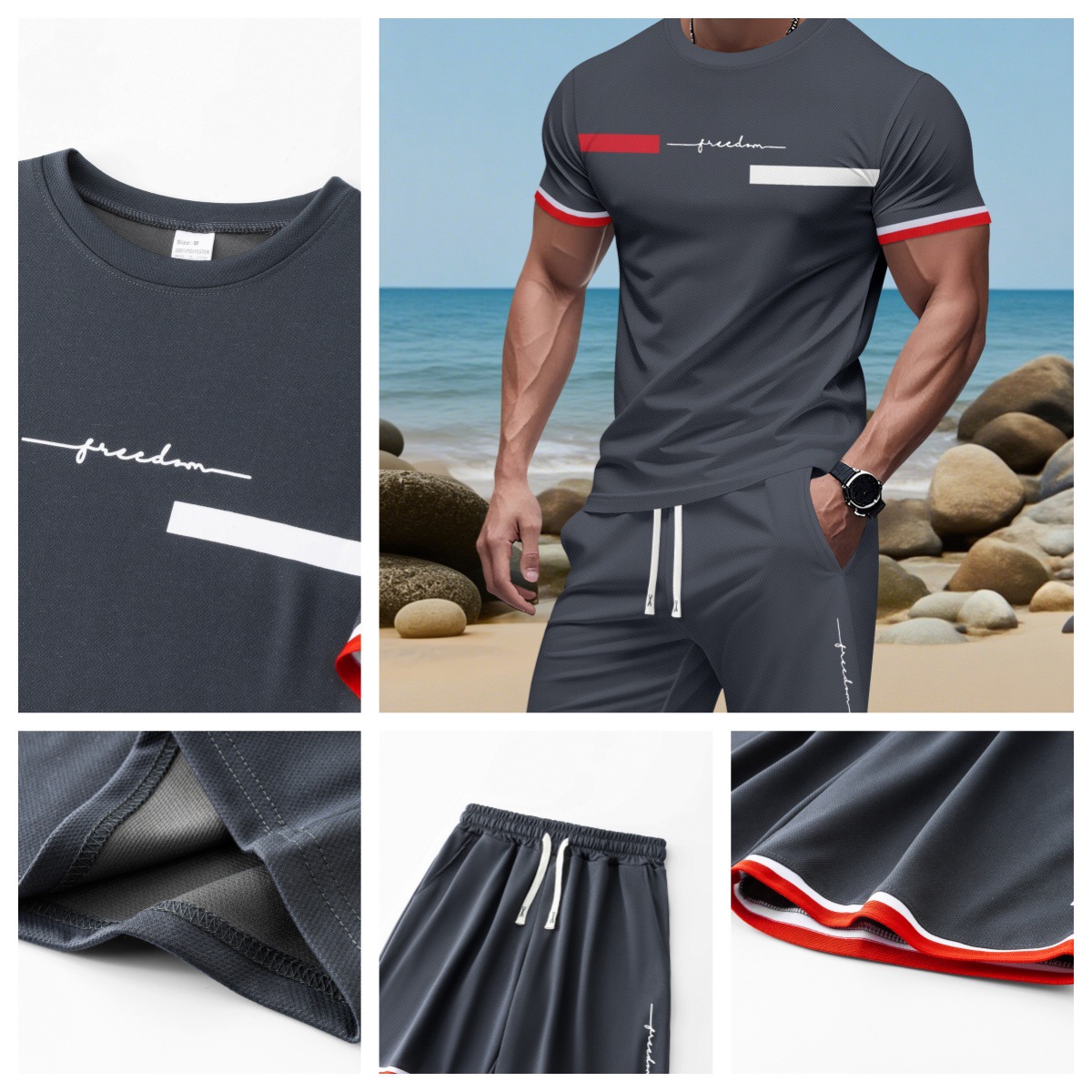 2025 국경 간 미국 인쇄 여름 인쇄 반팔 캐주얼 스포츠 티셔츠 정장 남자 3D 디지털 정장