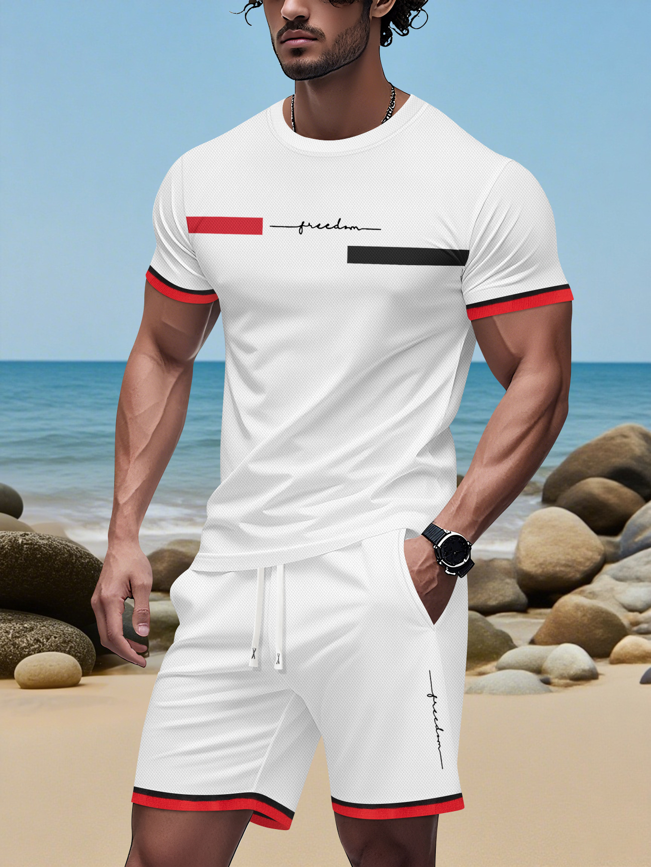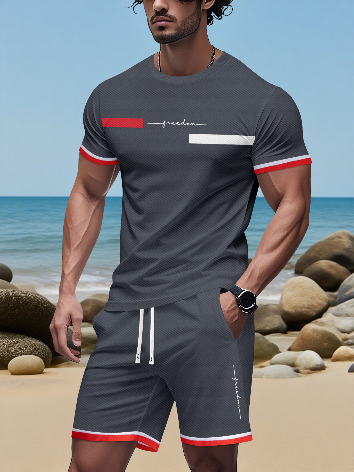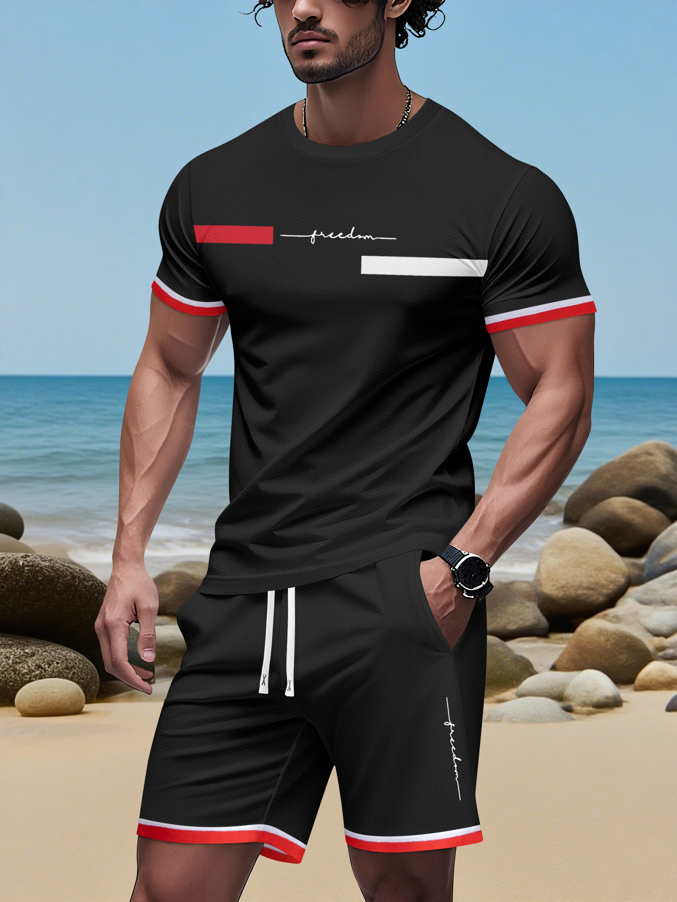 2025 국경 간 미국 인쇄 여름 인쇄 반팔 캐주얼 스포츠 티셔츠 정장 남자 3D 디지털 정장