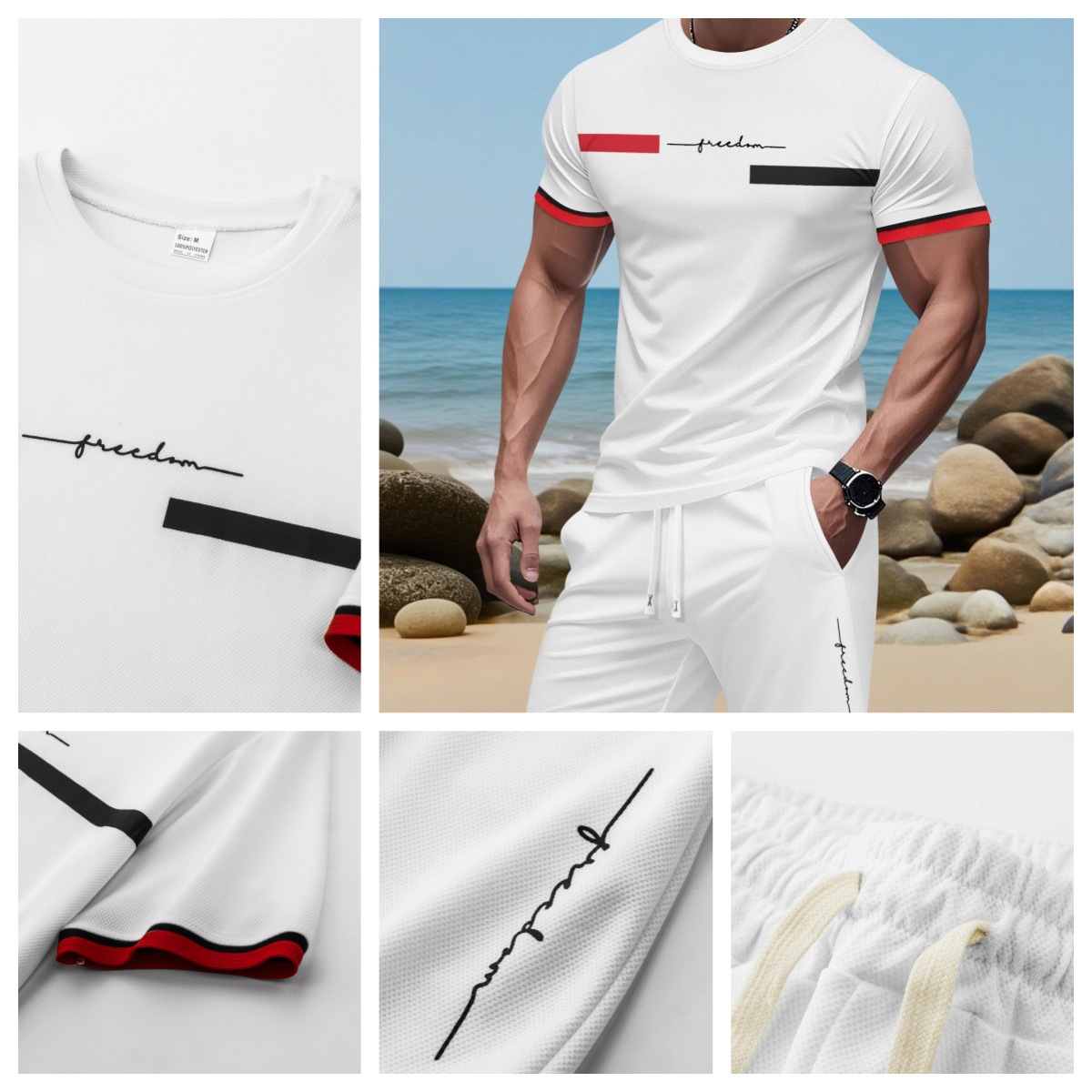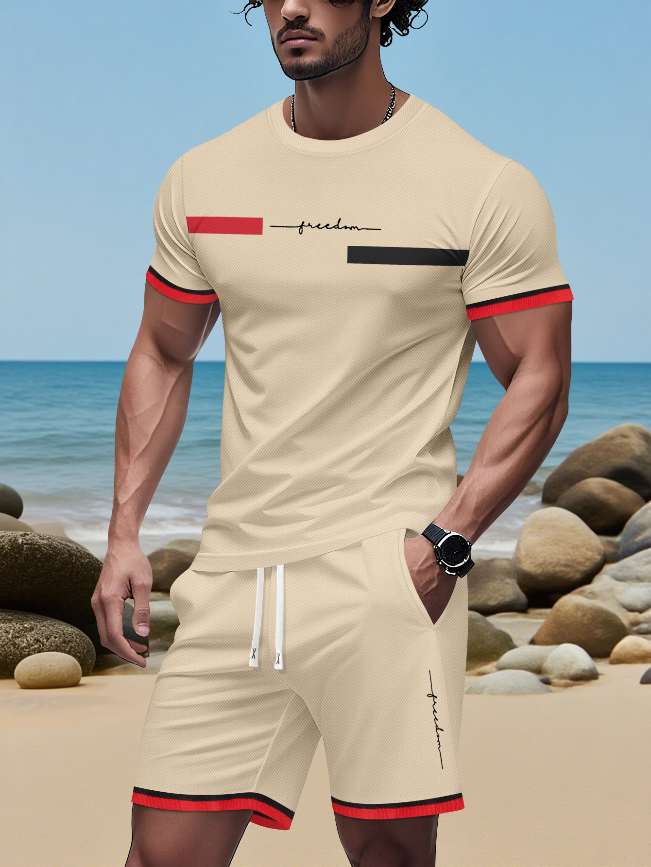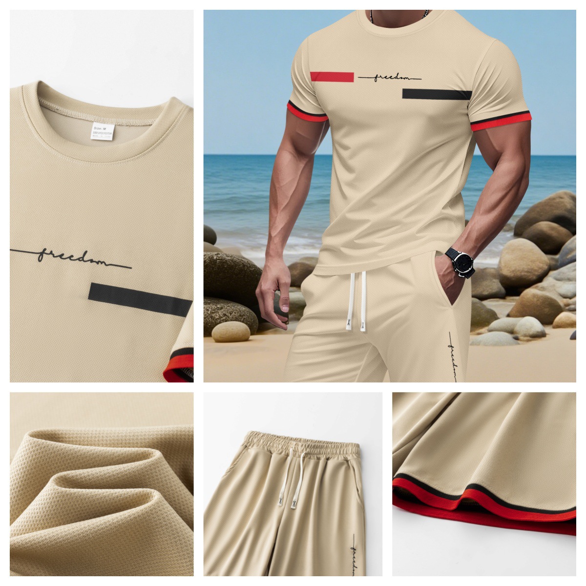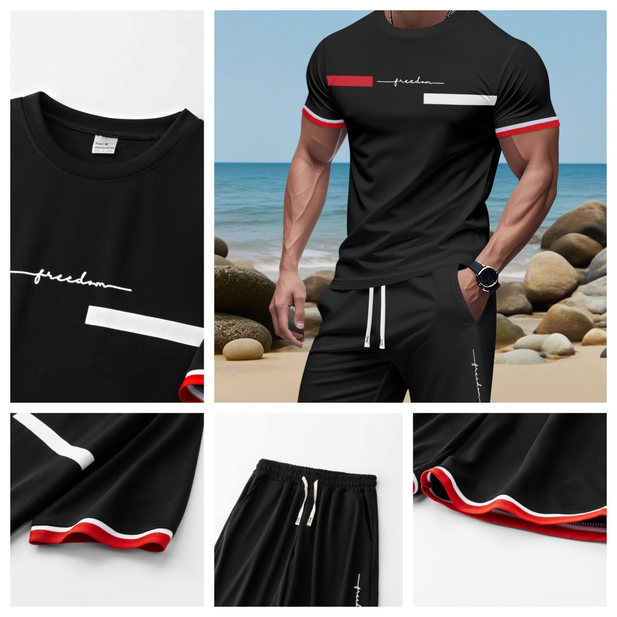2025 국경 간 미국 인쇄 여름 인쇄 반팔 캐주얼 스포츠 티셔츠 정장 남자 3D 디지털 정장