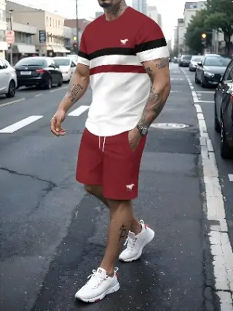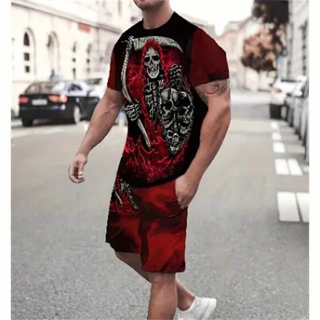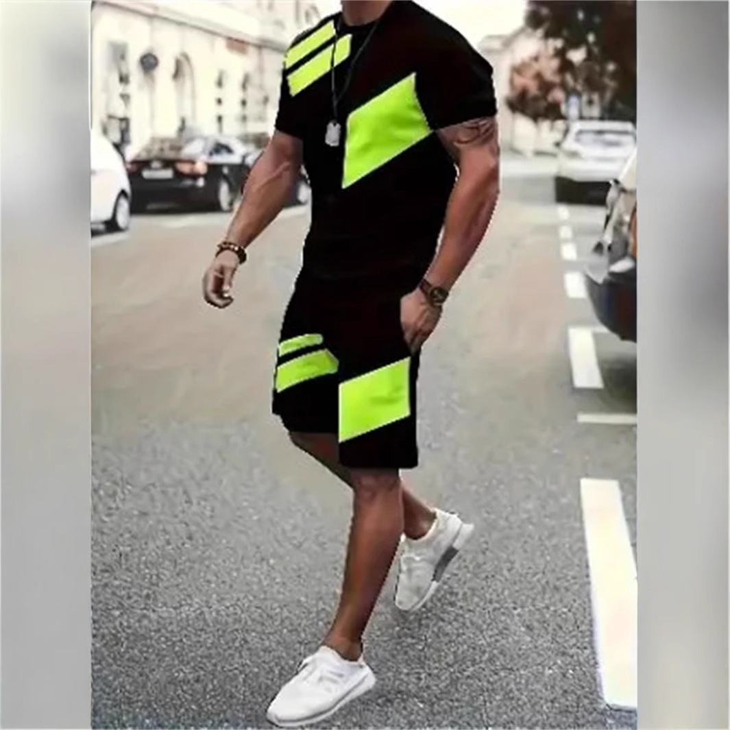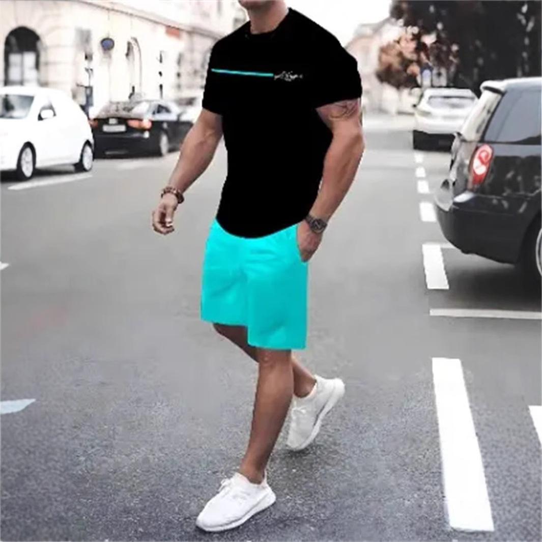 2025 여름 신상 3D 프린팅 패션 트렌드 쿨 반팔 반바지 티셔츠 캐주얼 스포츠 남성 세트