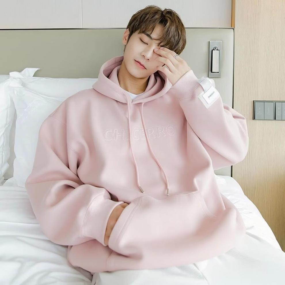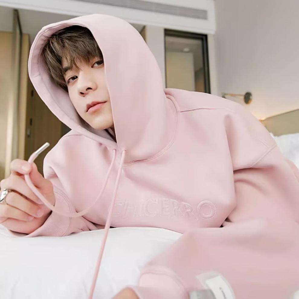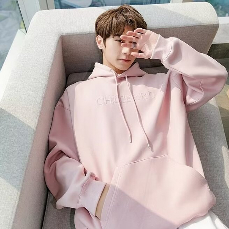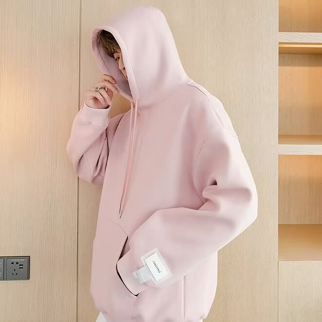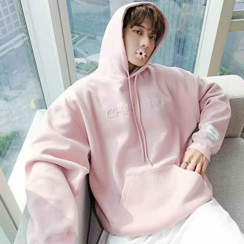 남성용 후드티 봄, 가을 커플웨어 봄 핑크 하이엔드 재킷 트렌디 브랜드 헤비급 후드 스웨트셔츠 탑