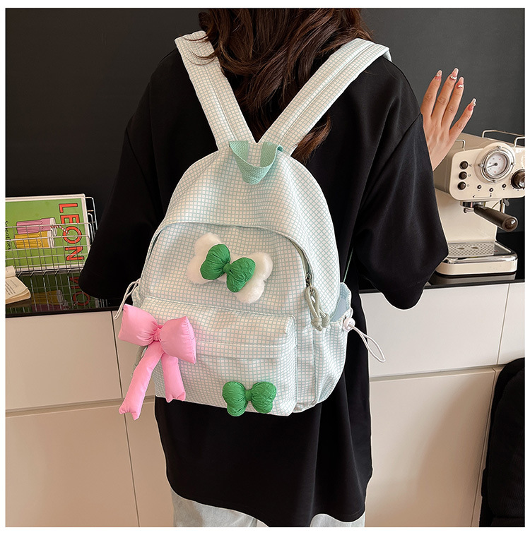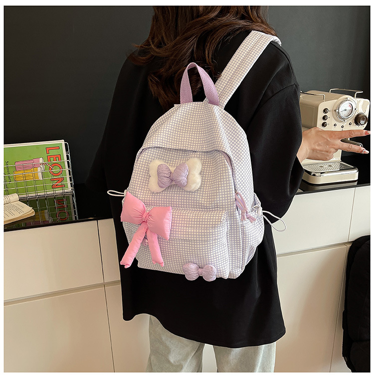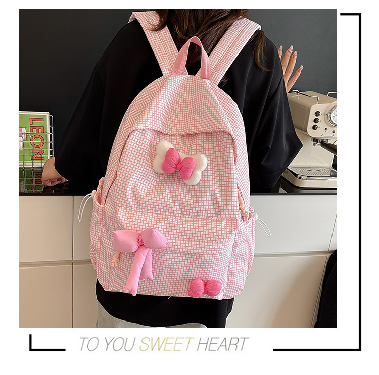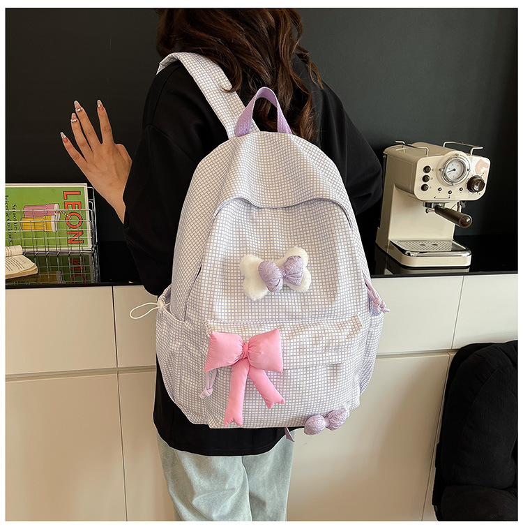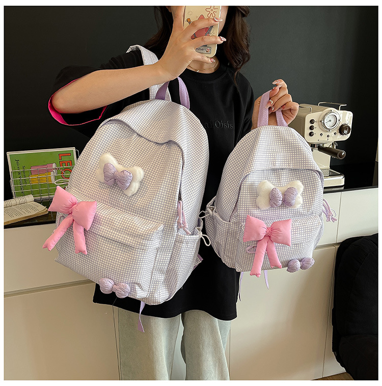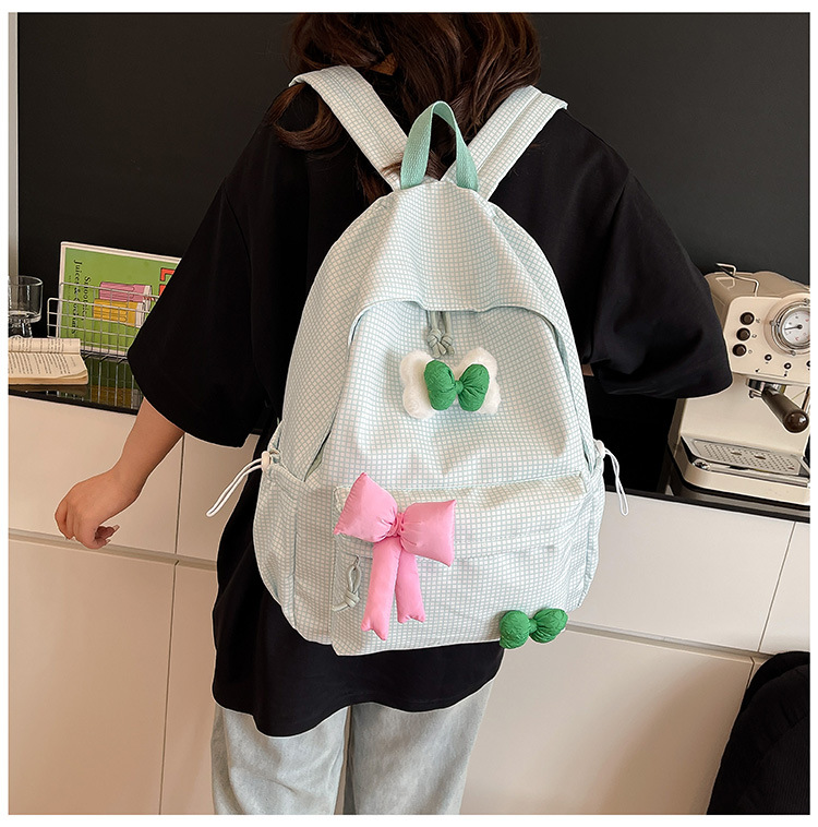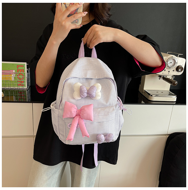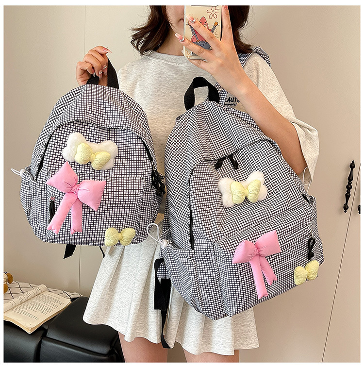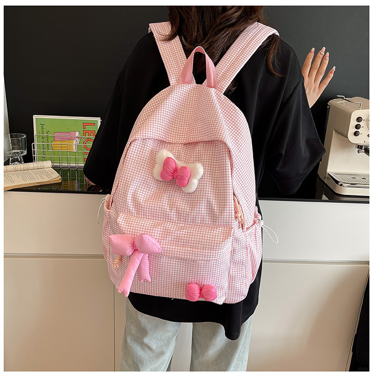 나비 소녀 배낭 귀여운 어린이 한국어 버전 대용량 학생 가방 신선한 격자 무늬 소녀 학습 가방 배치