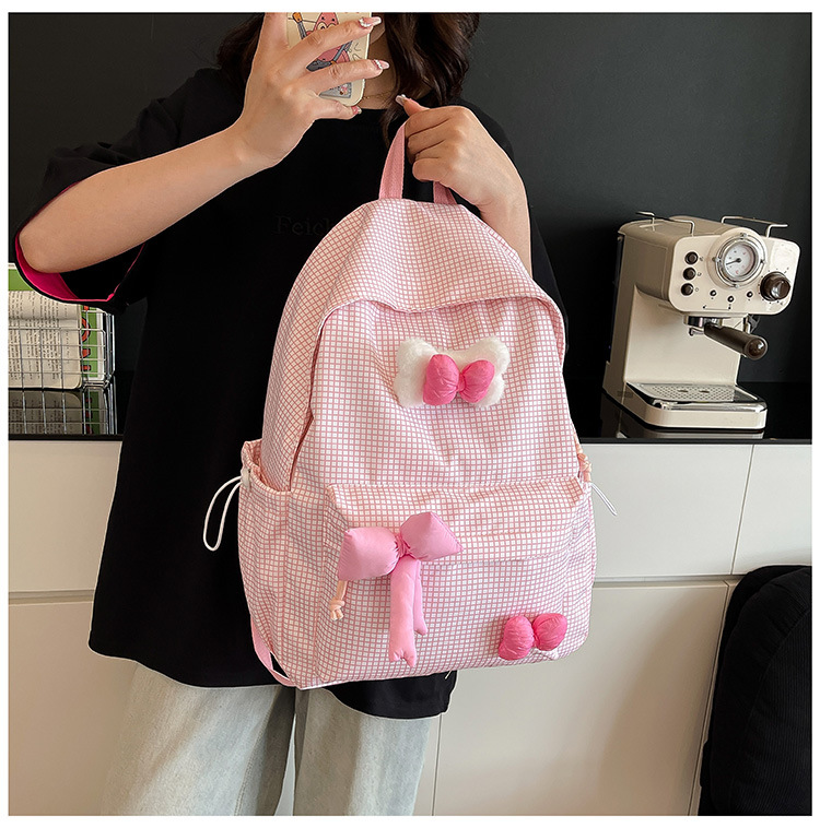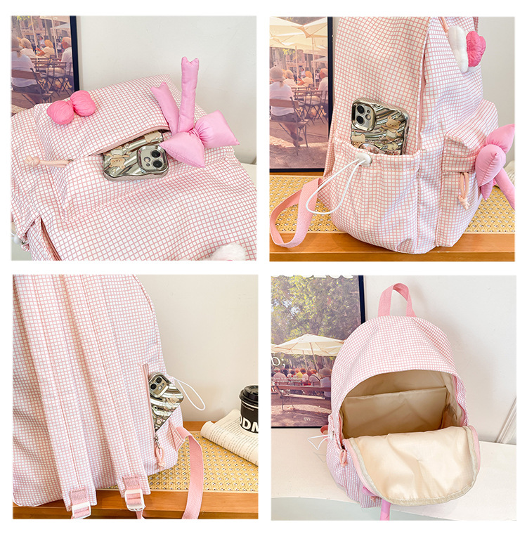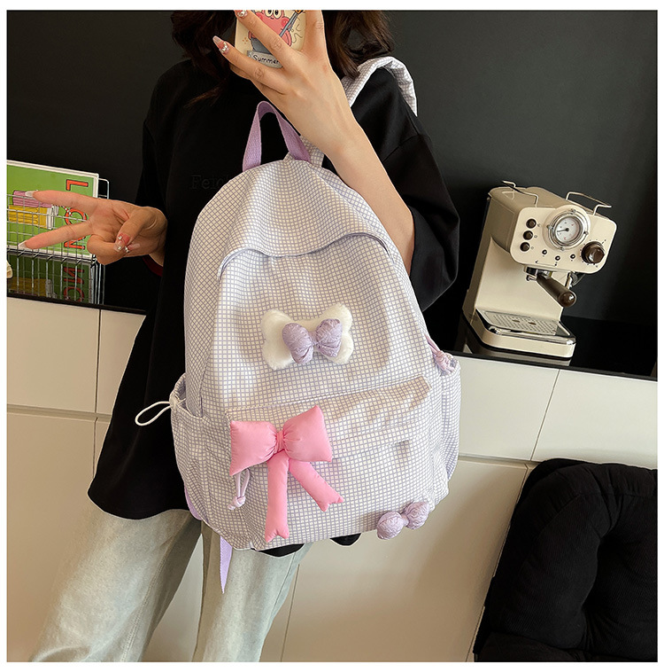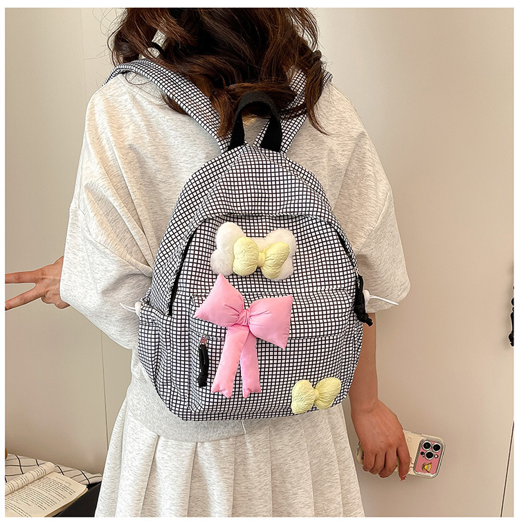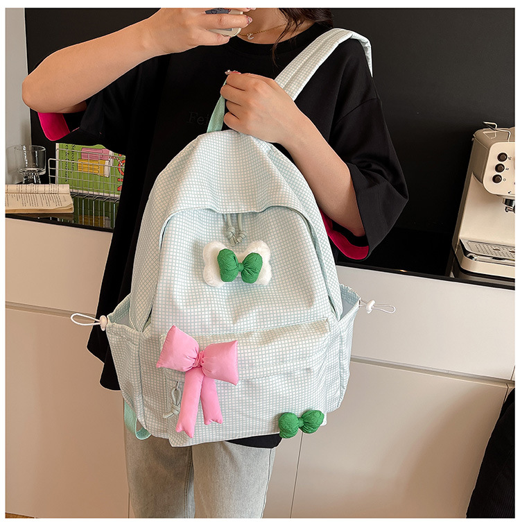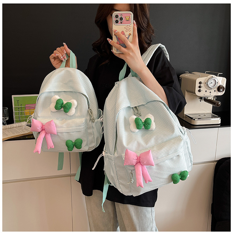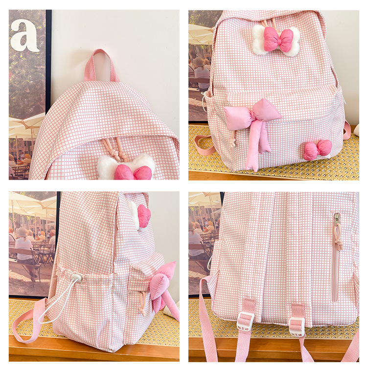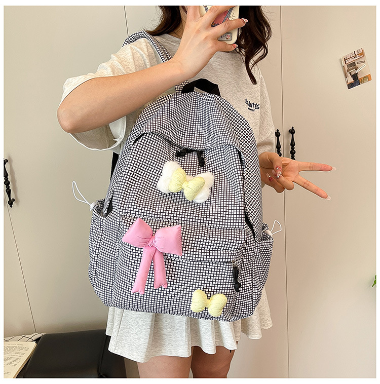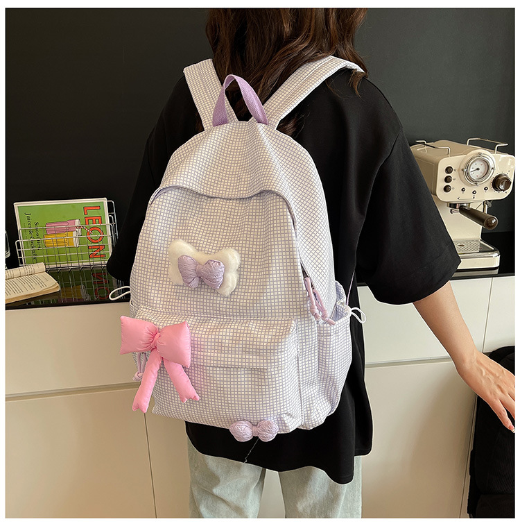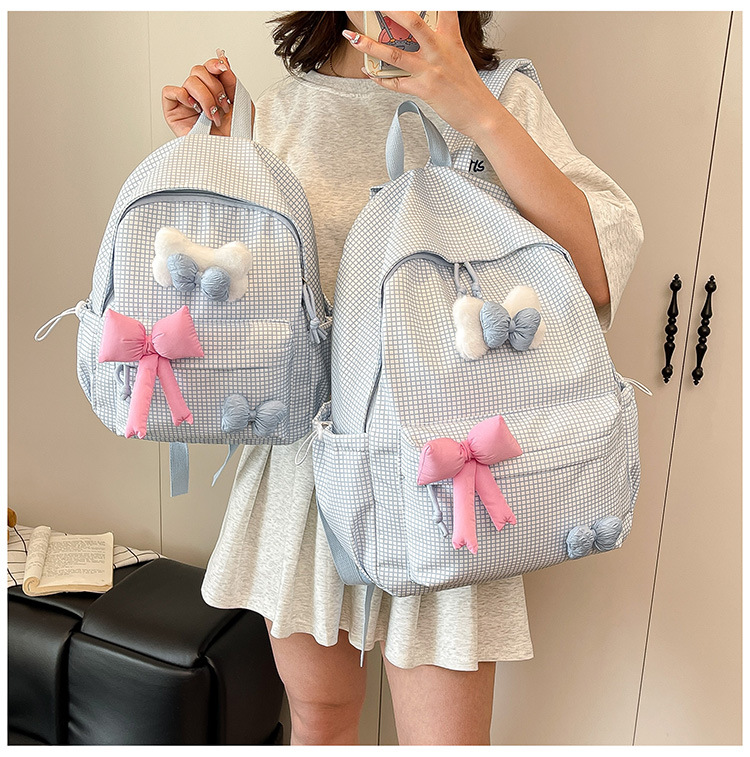 나비 소녀 배낭 귀여운 어린이 한국어 버전 대용량 학생 가방 신선한 격자 무늬 소녀 학습 가방 배치