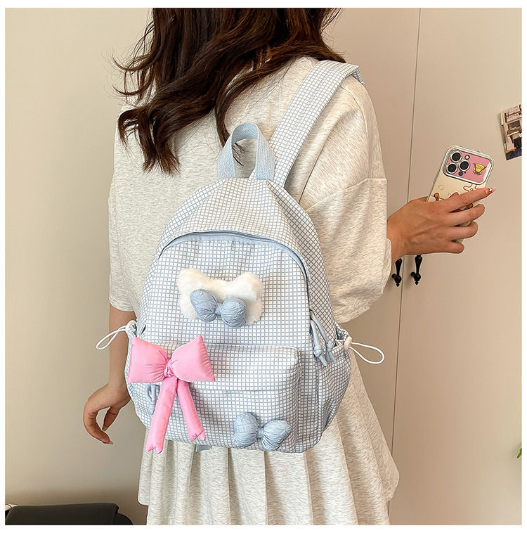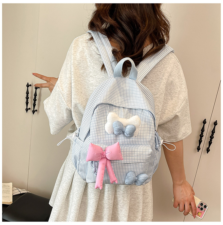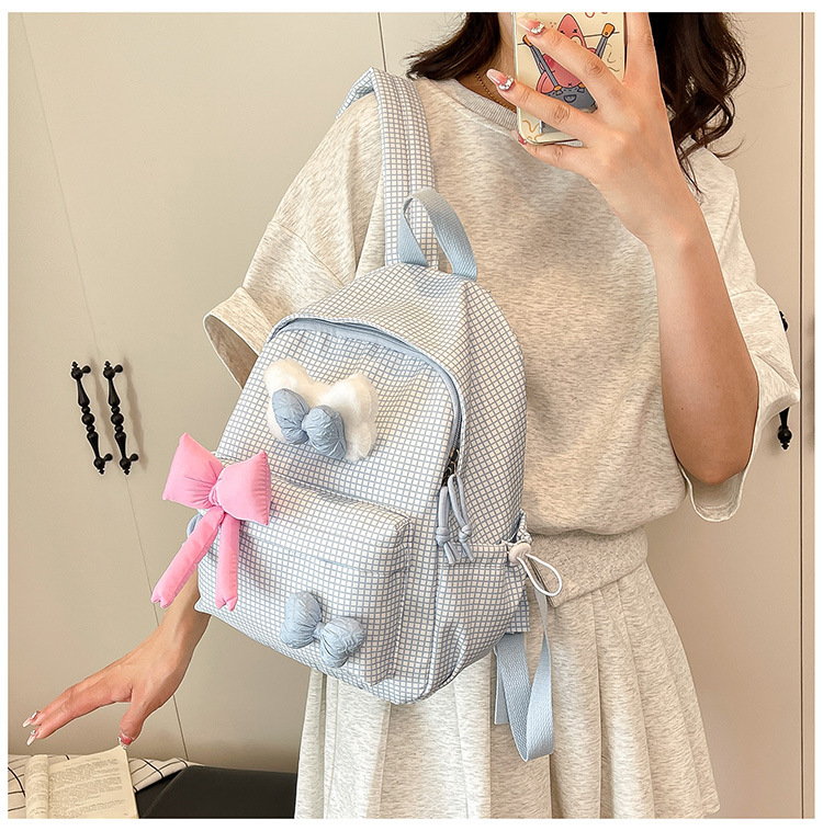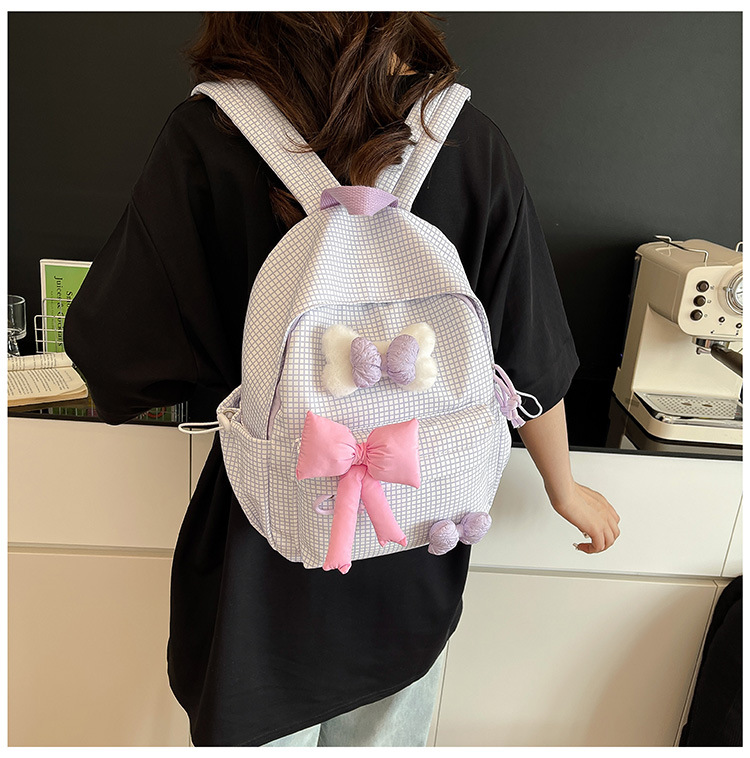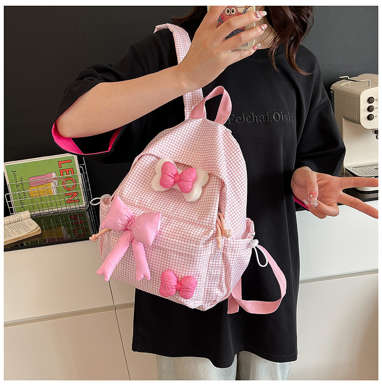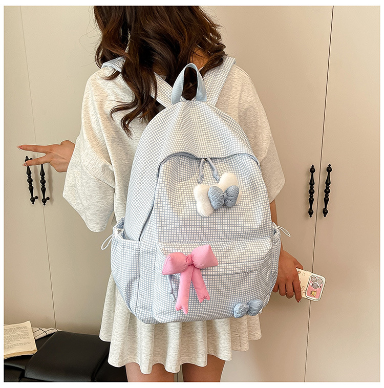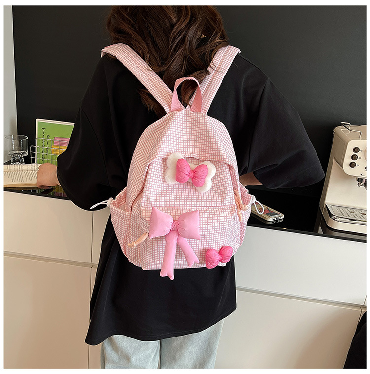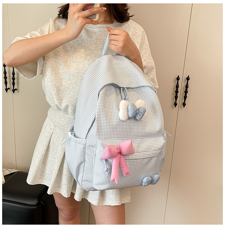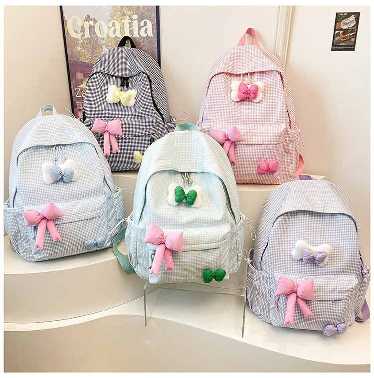 나비 소녀 배낭 귀여운 어린이 한국어 버전 대용량 학생 가방 신선한 격자 무늬 소녀 학습 가방 배치